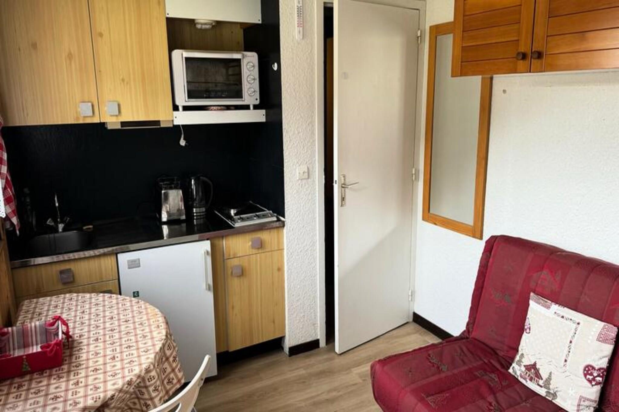 Dette charmerende studie for to tilbyder et komfortabelt og budgetvenligt ophold med en 140x190 sovesofa med dyner, puder og madrasser for ekstra komfort. Lejligheden ligger på første sal og har en østvendt udsigt over Chaberton- og Chalvet-skråningerne. Kæledyr er velkomne (kun ét lille kæledyr), og boligen er en ikke-ryger ejendom. Sengetøj og håndklæder er ikke inkluderet, men disse kan lejes på forhånd. Et skiskab er tilgængeligt for gæsternes bekvemmelighed, og der tilbydes parkering med en fjernbetjent barriere. Studiet er ideelt beliggende kun 200 meter fra Chalvet-skiløjperne, hvilket gør det perfekt til skientusiaster. ESF-skiskolen og Club Piou Piou ligger en kort 300-meters gang væk, mens en gratis vintertransport stopper bekvemt foran boligen. Gæsterne kan også nyde nem adgang til et supermarked, butikker, caféer og restauranter, alle inden for 200 meter. Durancia Nuxe Aquatic Center and Spa, 800 meter væk, tilbyder afslapning og foryngelse efter en dag på pisterne. Lejligheden er udstyret med et lille, men effektivt køkkenområde, med to elektriske kogeplader, en miniovn, kaffemaskine, elkedel og brødrister. Badeværelset indeholder brusekabine, håndvask og toilet. Opholdsområdet har også et fjernsyn og et spisebord til to, hvilket giver et behageligt sted for gæsterne at slappe af. Yderligere tjenester såsom liftkortrabatter, Wi-Fi og leje af udstyr er tilgængelige, hvilket sikrer et bekvemt og behageligt ophold.