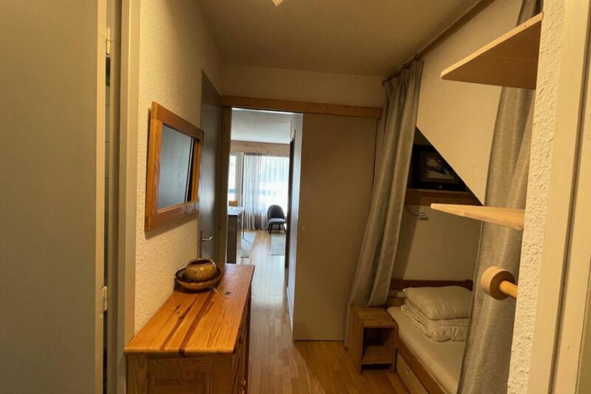This renovated and bright studio apartment (34m²) comfortably accommodates up to 5 people. It features a variety of sleeping options, including a cabin room with a double bed, a living room with a new 160 cm Rapido sofa bed, and a mountain corner with a single bed. The apartment is non-smoking and pets are allowed. Please note, bed linens and towels are not provided, and an end-of-stay cleaning service is optional. Guests are welcome to enjoy the private parking and ski locker provided with the residence. Located just 200 meters from the Chalvet slopes, this apartment offers quick access to the ski area. The ESF & Club Piou Piou is only 300 meters away, and various shops, restaurants, and a pharmacy are located within 200 meters. A free winter shuttle stop is conveniently located in front of the residence, providing easy transportation around the area. For added relaxation, the Durancia Nuxe Aquatic Center & Spa is just 800 meters away, with a free ski bus service available. The apartment is fully equipped with a kitchen area featuring a 2-burner induction hob, refrigerator, microwave, and dishwasher, along with a Nespresso coffee maker, toaster, and other kitchen utensils. The living room includes a large-screen television and dining area, while the bathroom boasts a shower cabin, sink, bidet, and washing machine. A balcony with a view of the slopes and village enhances the comfort of this cozy getaway.