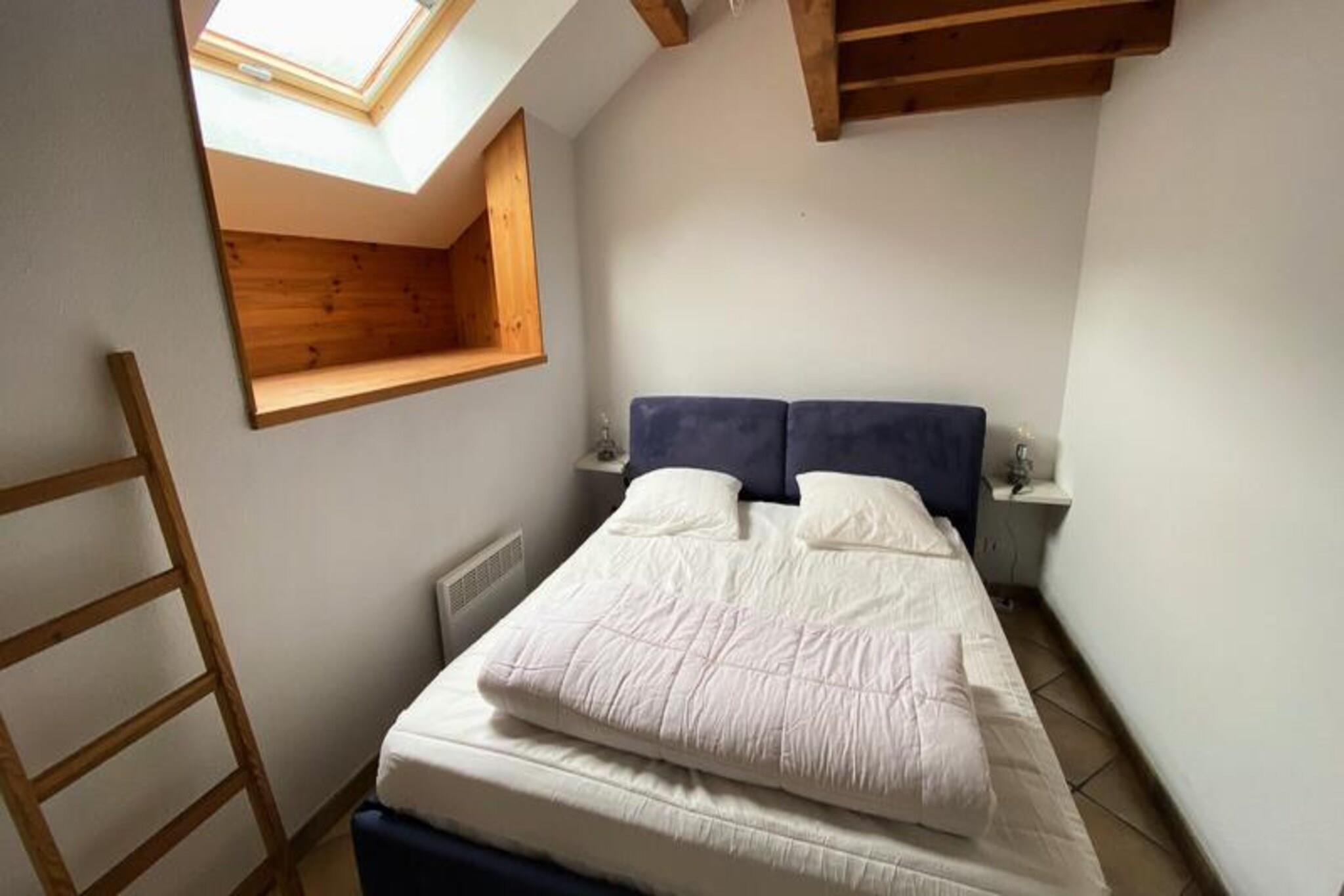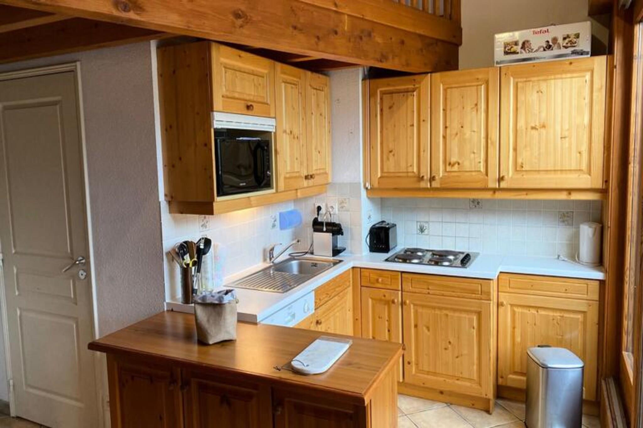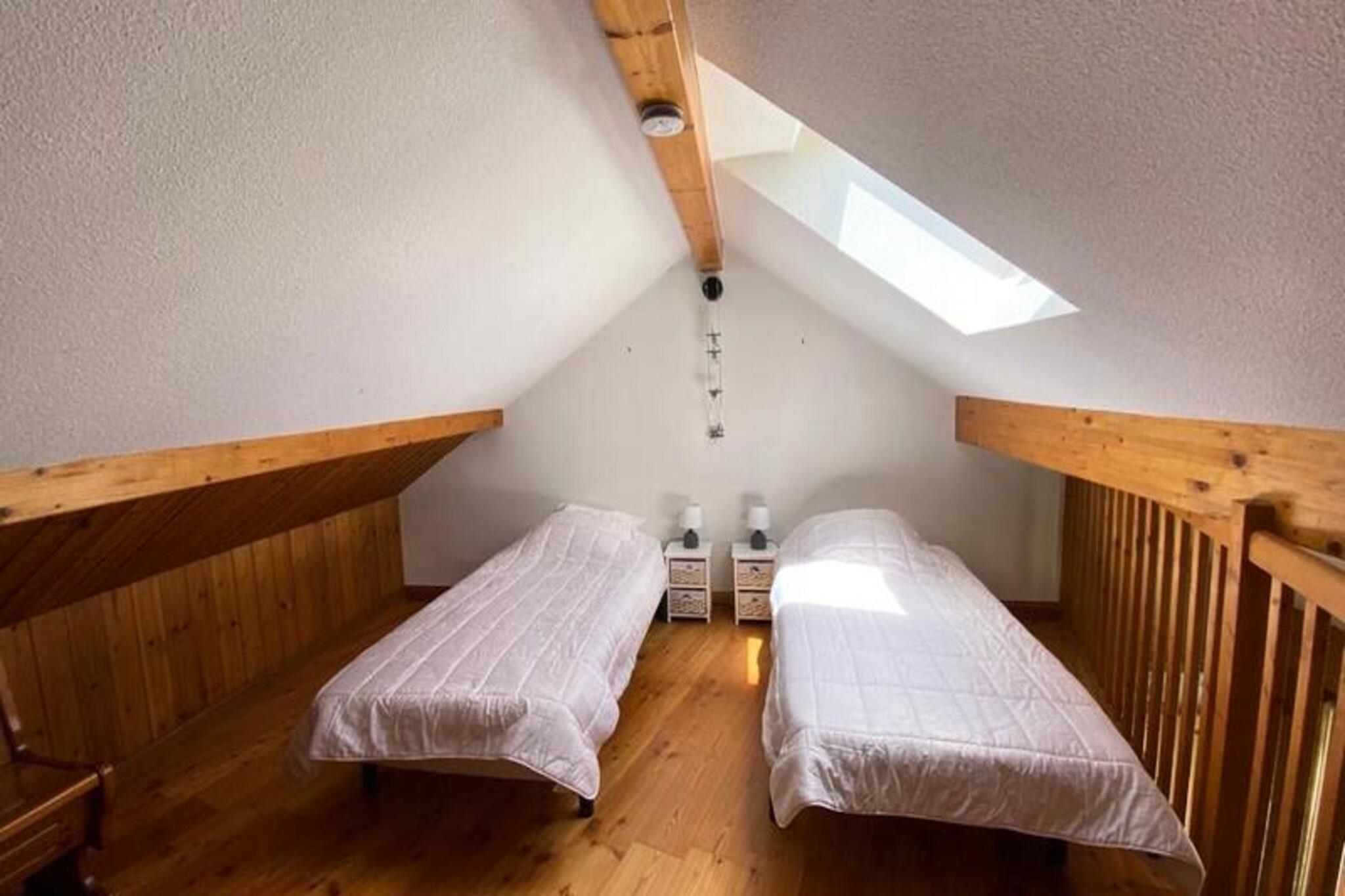 Denne komfortable lejlighed er ideel til 4 til 6 personer og tilbyder et hyggeligt opholdsrum med en dobbeltseng i soveværelset, to enkeltsenge i mezzaninen og en sovesofa i stuen. Denne bolig ligger på anden sal og har elevator og er ikke-ryger. Kæledyr er ikke tilladt. Lejligheden er udstyret med nødvendige faciliteter til et afslappende ophold, herunder et fjernsyn, spiseplads med plads til seks og et velholdt interiør. Denne lejlighed ligger kun 300 meter fra den nærmeste skilift (Chalvet Gondola) og giver nem adgang til ski- og snowboardaktiviteter. ESF & Club Piou Piou ligger også 500 meter væk, perfekt for familier og begyndere. Lokale butikker, restauranter og et supermarked kan nås inden for 300 meter, som tilbyder alt hvad du behøver til daglig bekvemmelighed. En gratis shuttleservice om vinteren, der stopper lige foran bygningen, sikrer, at du kan udforske området uden besvær. Durancia Nuxe Aquatic Center and Spa ligger 800 meter fra ejendommen til afslapning. Lejligheden har et fuldt udstyret køkken med mikroovn/grill, opvaskemaskine og kogeplader samt badeværelse med bruser, bidet og toilet. Yderligere faciliteter inkluderer et skiskab, en Tropezian-terrasse til udendørs nydelse og rigelig opbevaring i hele lejligheden. Ejendommen er velegnet til en skiferie eller en afslappende ferie med sin imødekommende atmosfære og praktiske funktioner.