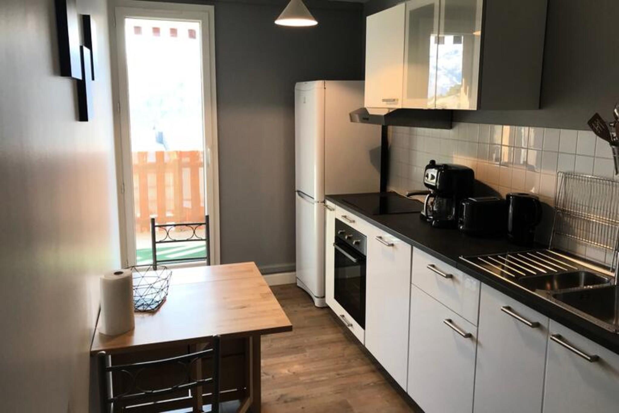 Denne rummelige lejlighed på 70 m² er perfekt til en gruppe på seks, og tilbyder komfortable og bekvemme faciliteter til et afslappende ophold. Boligen byder på stor stue med 3-personers sofa, tv og udgang til en sydøstvendt terrasse med havebord og -stole. De to soveværelser inkluderer en dobbeltseng i den ene og to enkeltsenge i den anden. Lejligheden har også en sovesofa i stuen og yderligere faciliteter såsom gratis Wi-Fi, et skiskab og privat parkering. Bemærk venligst, at kæledyr ikke er tilladt, og lejligheden er ikke-ryger. Denne lejlighed ligger kun 50 meter fra skiløjperne og i kort afstand fra ESF og Club Piou Piou og tilbyder fremragende adgang til vintersport. Den nærmeste skilift er en aftagelig 4-personers stolelift, kun 20 meter væk. Et supermarked, restauranter og butikker ligger 1,5 km derfra, mens den gratis skibus til Durancia Spa Nuxe ligger 2 km fra ejendommen. Området byder på rolige omgivelser med en fantastisk udsigt over bjergene, og en bil er påkrævet for nem adgang til landsbyens centrum og feriestedet. Lejligheden har et fuldt udstyret køkken med keramisk kogeplade, opvaskemaskine, køleskab, mikroovn og diverse køkkenredskaber, perfekt til at tilberede måltider under dit ophold. Badeværelset har badekar, elektrisk håndklædetørrer og stort spejl, mens et separat toilet tilføjer bekvemmelighed. Yderligere faciliteter omfatter et vaskerum med vaskemaskine, babyudstyr (efter anmodning) og mulighed for at leje sengetøj og håndklæder.