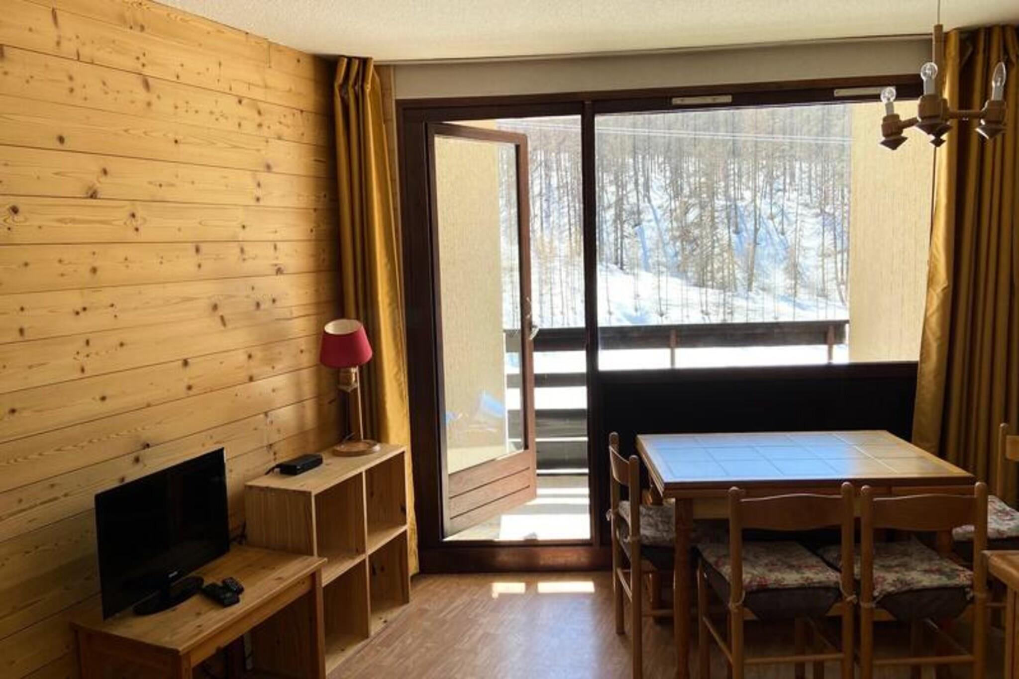Denne lejlighed på skråningen, klassificeret 1*, har plads til 4-6 gæster. Sovearrangementer inkluderer en dobbeltseng (140x190cm) i soveværelset, to køjesenge (80x190cm) i et separat bjerghjørne og en sovesofa (130x190cm) i stuen. Sengelinned, håndklæder og slutrengøring er ikke inkluderet, men kan lejes. Politikker for kæledyr er ikke specificeret og bør bekræftes. Denne lejlighed ligger direkte på pisterne og tilbyder øjeblikkelig adgang til ski. ESF-skiskolen og Club Piou Piou ligger 100 m derfra, og skilifterne er inden for 50 m. Supermarkeder (Sherpa 200m, Spar 350m) og andre butikker/restauranter ligger 150m væk. Busstationen er 800 m væk, et apotek er 900 m væk, og en læge er 50 m væk. Durancia Nuxe Aquatic Center and Spa ligger 150 m væk. Denne lejlighed på første sal (ingen elevator) har en stue med et tv, et køkkenområde (2 elektriske kogeplader, miniovn, mikroovn, opvaskemaskine, køleskab, kaffemaskine, brødrister, kedel), et badeværelse med bruser og håndvask , og et separat toilet. En balkon med tre foldbare stole tilbyder udsigt over bjergene. Der er et skiskab, og boligen har to parkeringspladser (afhængig af tilgængelighed). Andre udlejningstjenester (Wi-Fi, Nespresso, raclette/fonduesæt, hårtørrer) og babyudstyr er tilgængelige efter anmodning. Skipas og sparabatter er også tilgængelige. Der kræves et depositum.