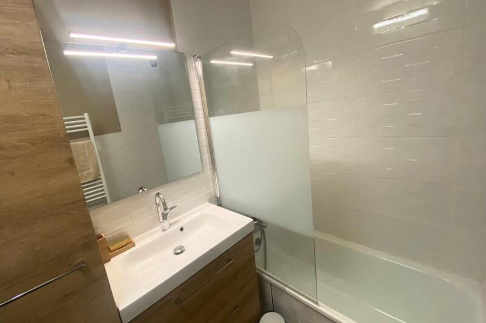 Denne hyggelige lejlighed, beliggende i en rolig bolig kun f? skridt fra pisterne og butikkerne, tilbyder en mezzaninseng, en sovesofa og en BZ-sofa, der kan rumme op til seks g?ster. Det er en ikke-ryger, k?ledyrsfri ejendom, der sikrer en fredelig atmosf?re. Lejligheden indeholder et stort kl?deskab, opbevaringsplads, elektriske h?ndkl?det?rrere og en h?rt?rrer. Sengelinned og h?ndkl?der medf?lger ikke, men kan lejes efter anmodning. Boligen er perfekt beliggende, kun 150 meter fra skil?jperne, skiskole og b?rnepasning. Durancia Nuxe Aquatic Centre and Spa ligger 800 meter derfra, og der er gratis adgang til skibus. N?rliggende butikker, caf?er og restauranter ligger inden for g?afstand, og et supermarked ligger kun 150 meter v?k. For nem rejse, ligger en busstation 500 meter fra lejligheden. Skipas kan reserveres med rabat p? op til 40%. Lejligheden har et fuldt udstyret k?kken med k?leskab, opvaskemaskine, mikroovn, ovn og raclettegrill. Badev?relset har badekar med bruseafsk?rmning og h?ndkl?det?rrer. Fra stuen er der udgang til en terrasse med udsigt over pisterne og Janusbjerget. Yderligere faciliteter omfatter en skiboks og gratis parkering, afh?ngigt af tilg?ngelighed. Sengelinned og babyudstyr skal reserveres p? forh?nd.