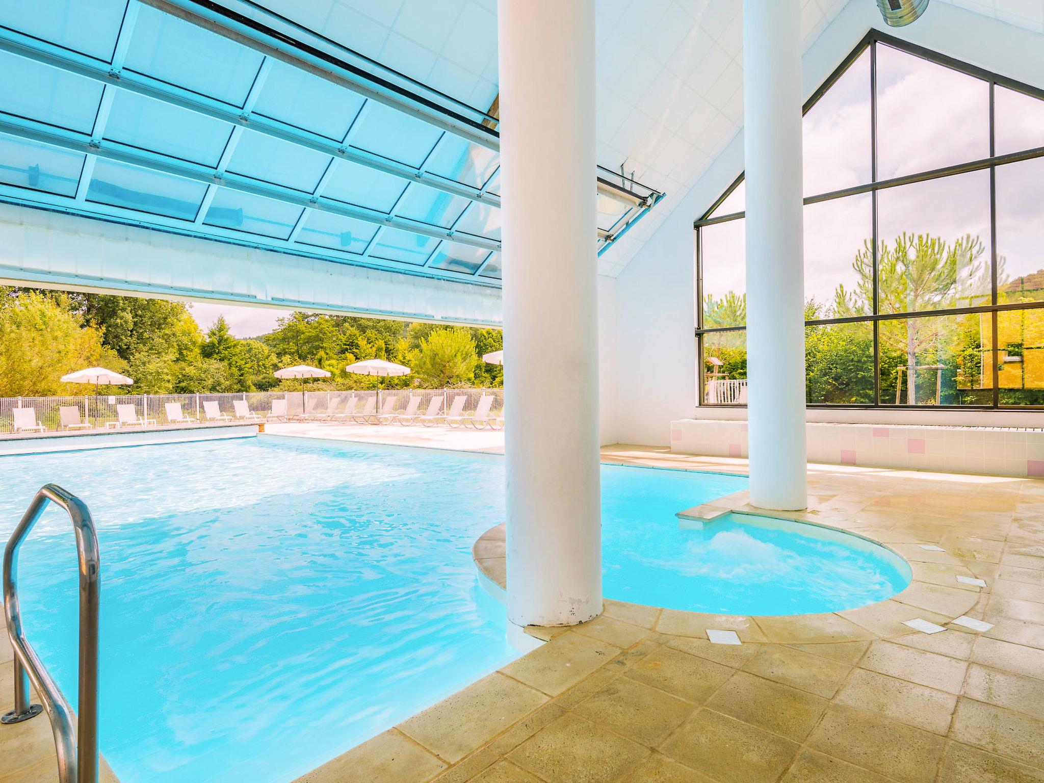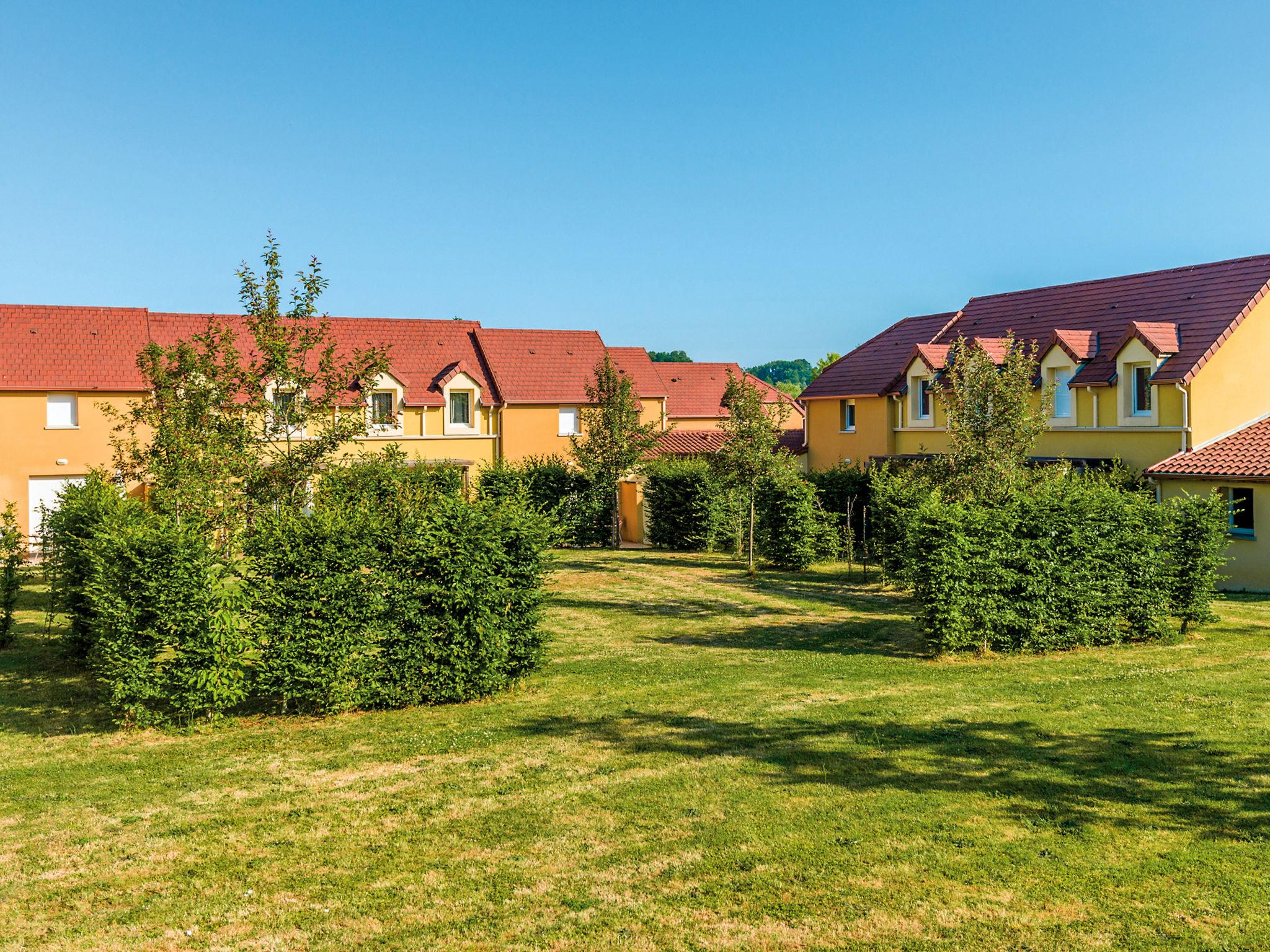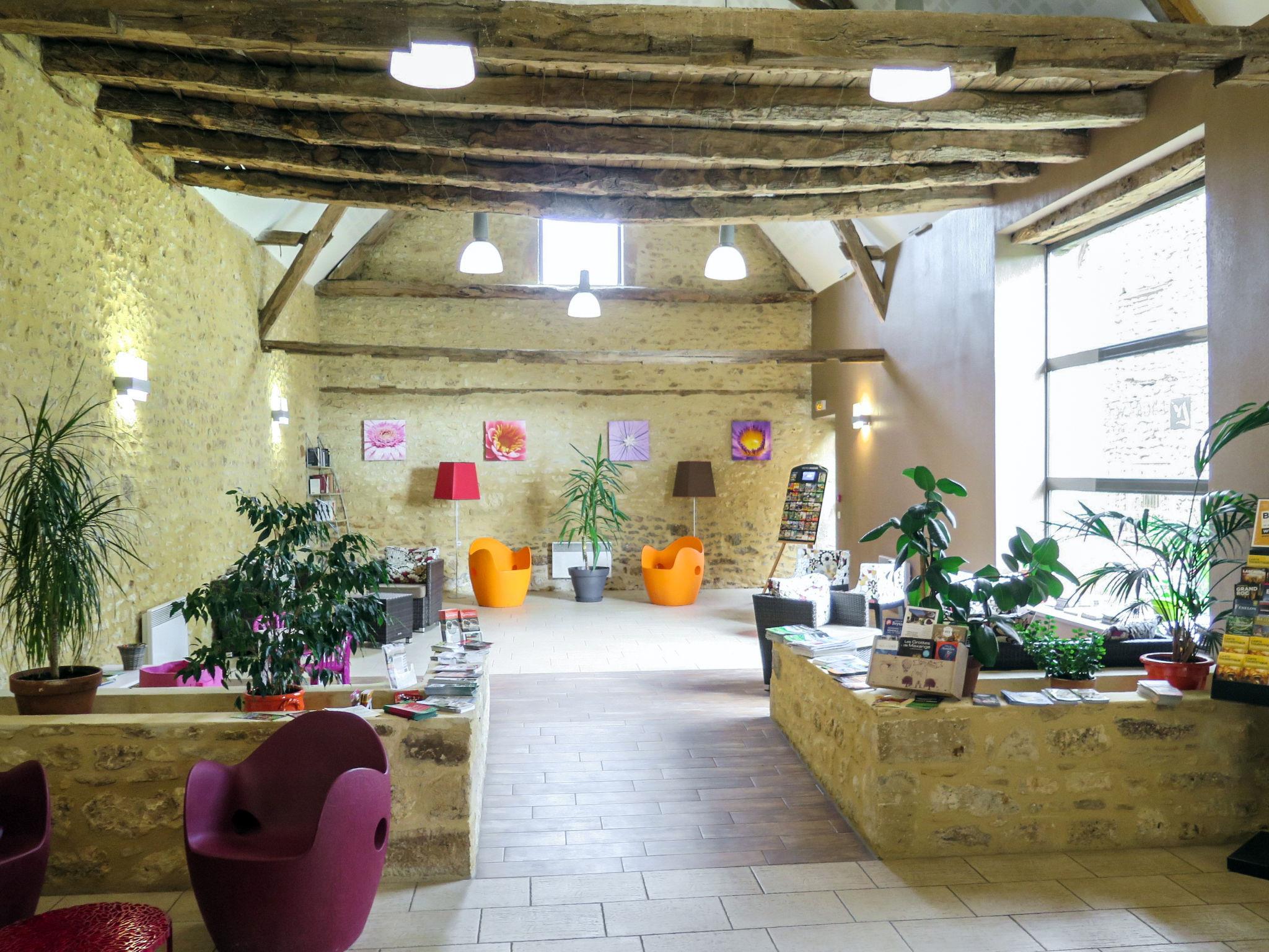 Resort "Les Bastides de Lascaux", 2 storeys. 119 houses in the residence. 7 houses in the resort. 1.5 km from the centre of Montignac, 25 km from the centre of Sarlat-la-Canéda. For shared use: property 5 ha (fenced) with trees, swimming pool heated (15 x 7 m, depth 150 cm, seasonal availability: 01.Jan. - 31.Dec.). Shower/WC in the pool area, table tennis, boccia, badminton, children's playground. In the complex: reception, sauna (extra). Fitness room, steam room (extra). Washing machine, tumble dryer (for shared use, extra). Parking (limited number of spaces) at the house. Supermarket 1.5 km, bus stop "Montignac-Lascaux" 750 m. Nearby attractions: Grotte Lascaux IV 600 m. Please note: the photograph shows a typical example. The holiday properties may differ in living space, floorplan, equipment and furnishing.