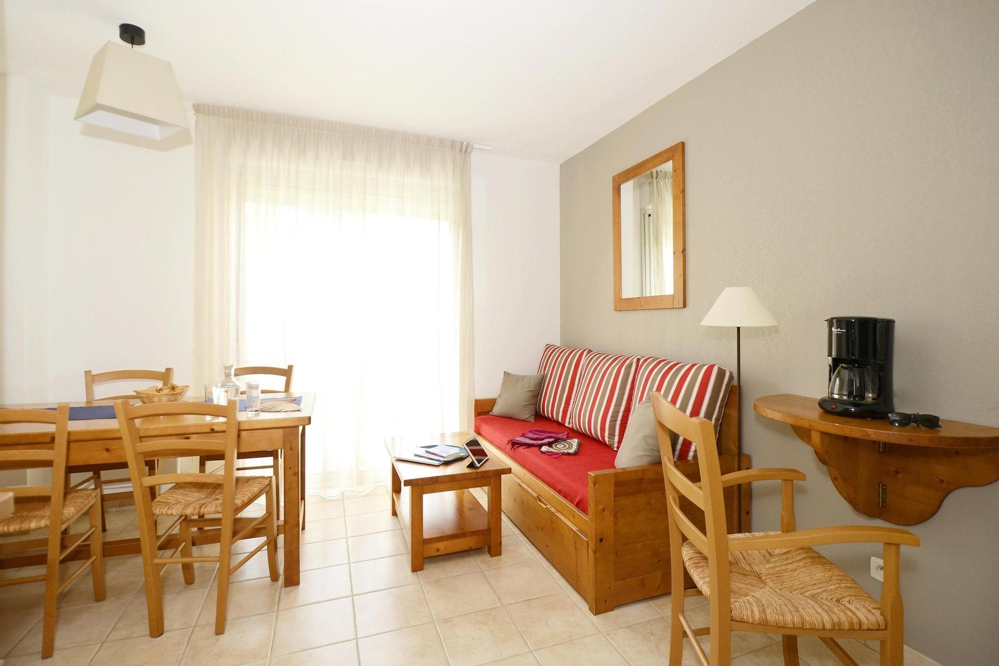 Stue(dobbeltsovesofa), tekøkken(komfur(elektrisk), mikrobølgeovn, opvaskemaskine , køleskab), soveværelse(dobbeltseng), soveværelse(2x enkeltseng), sovekabine(køjeseng), badeværelse(badekar), badeværelse(bruser), toilet, varme(central), swimmingpool(deles med andre gæster, opened from Apr upto and including Sep)