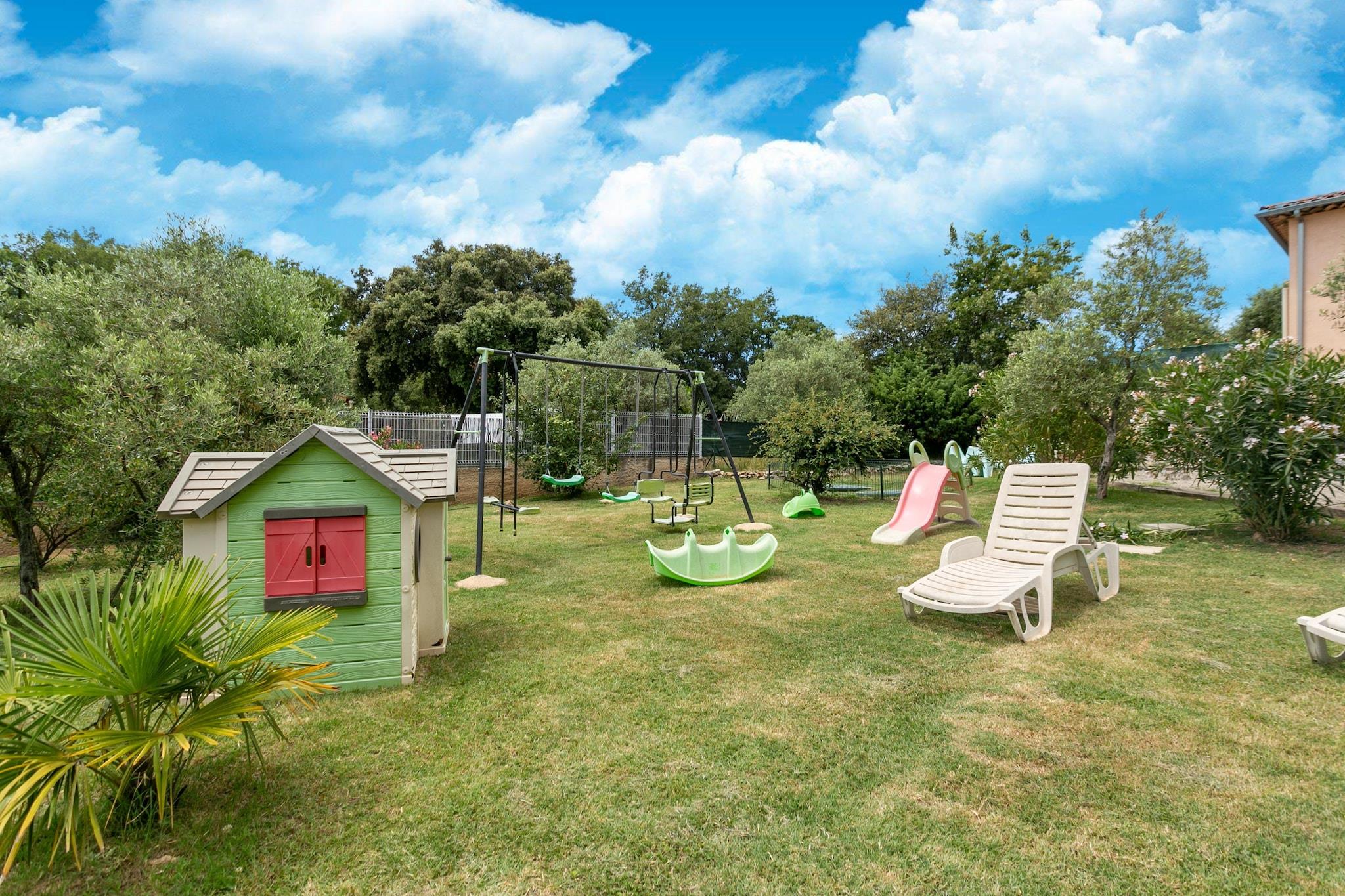 Stueetage: (åbent køkken(elkedel, brødrister, komfur(Komfur med fire kogeplader, glaskeramisk), emhætte, kaffemaskine(kopper, kaffetragt), ovn, mikrobølgeovn, opvaskemaskine , køle-fryseskab), stue / spisestue(dobbeltsovesofa(140 x 190 cm), Fjernsyn, spisebord, DVD-afspiller, klimaanlæg), soveværelse(dobbeltseng(160 x 200 cm)), soveværelse(dobbeltseng(140 x 200 cm)), Soveværelse med badeværelse(dobbeltseng(160 x 200 cm), køjeseng, bruser, håndvask, toilet), badeværelse(badekar, bruser, 2x håndvask), toilet, vaskerum (vaskemaskine, legeredskaber, strygebræt, strygejern, hyggespil), havedøre) terrasse, terrasse(overdækket), have(privat, indhegnet, 900 m2), havemøbler, solstole, grill(gas), swimmingpool(privat, 4 x 4 m., opened from May upto and including Sep), petanquebane, legeredskaber, hyggespil