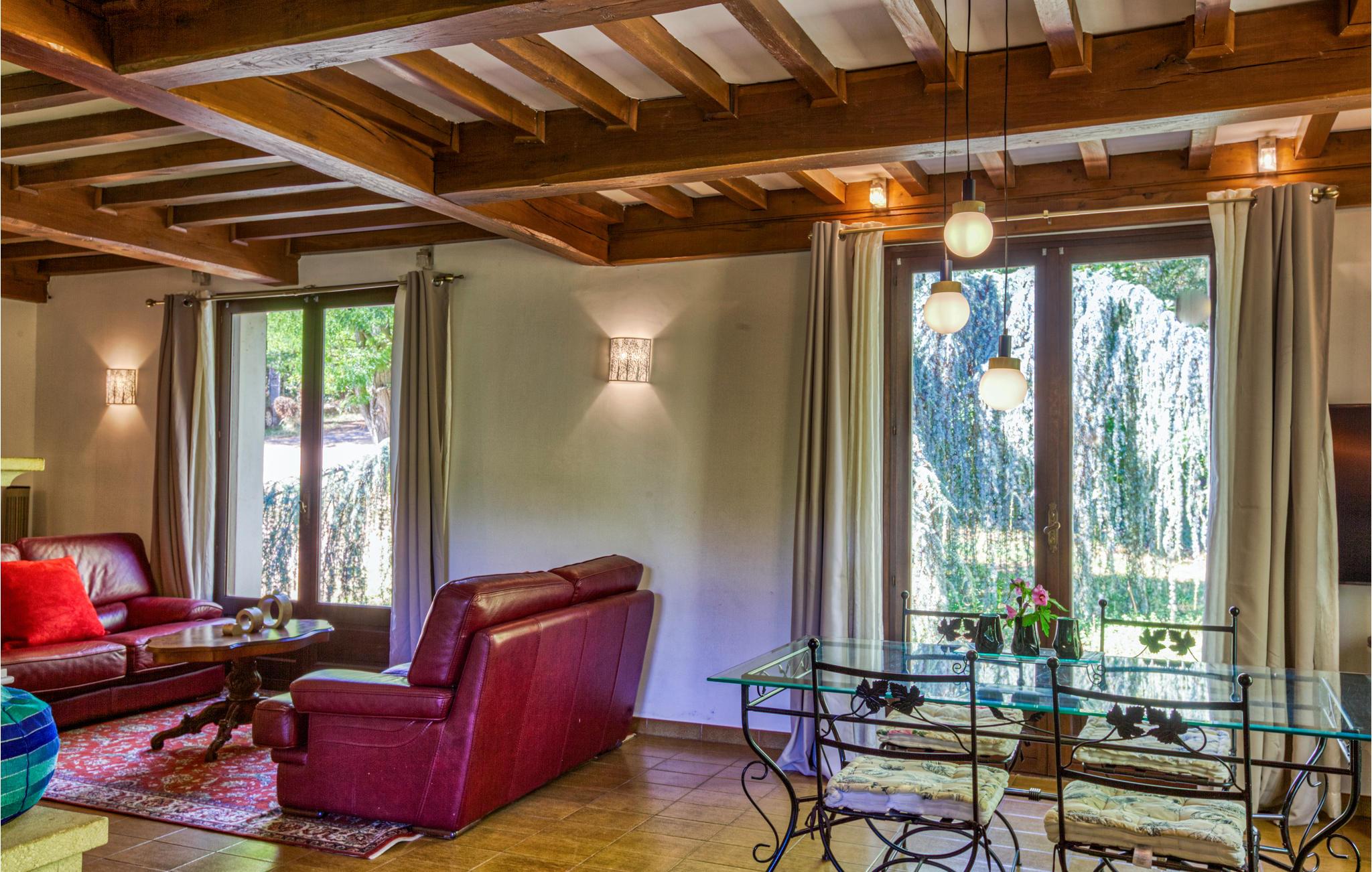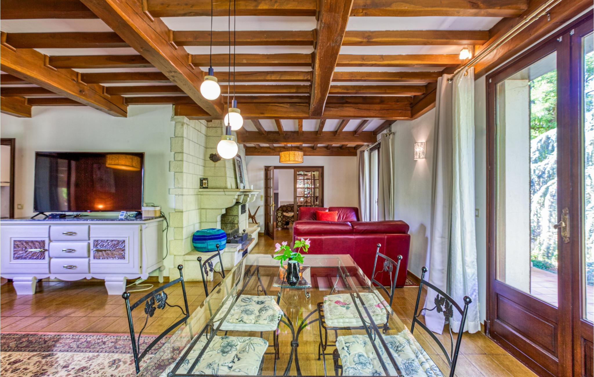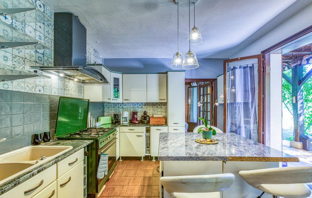 Denne flotte villa er i rustik stil og har en smuk, ugeneret beliggenhed. Indretningen er indbydende, og der er en behagelig atmosfære. Tilbring hyggelige stunder i den lyse opholdsstue og tilbered lækre måltider i det fine, moderne køkken.