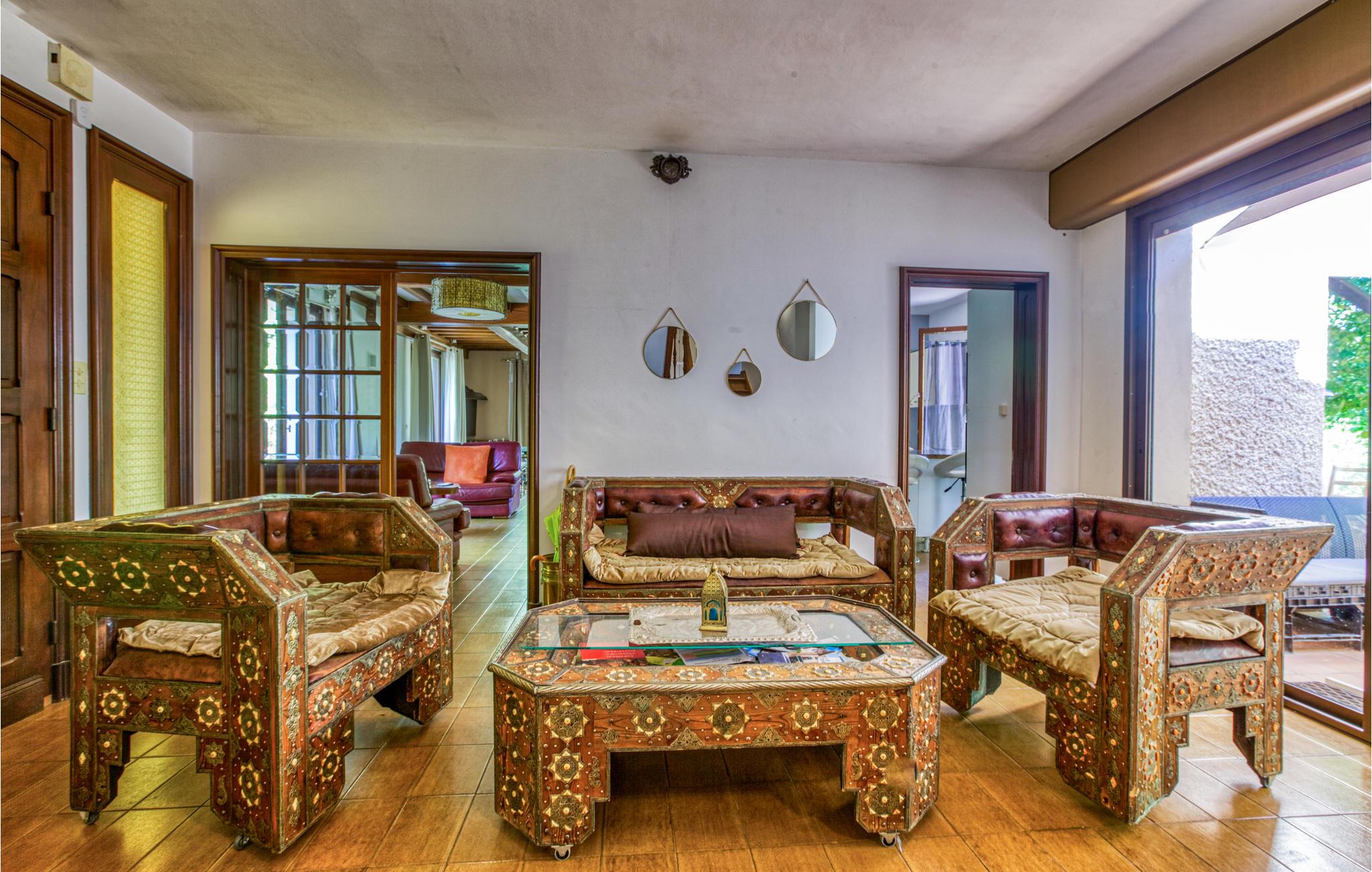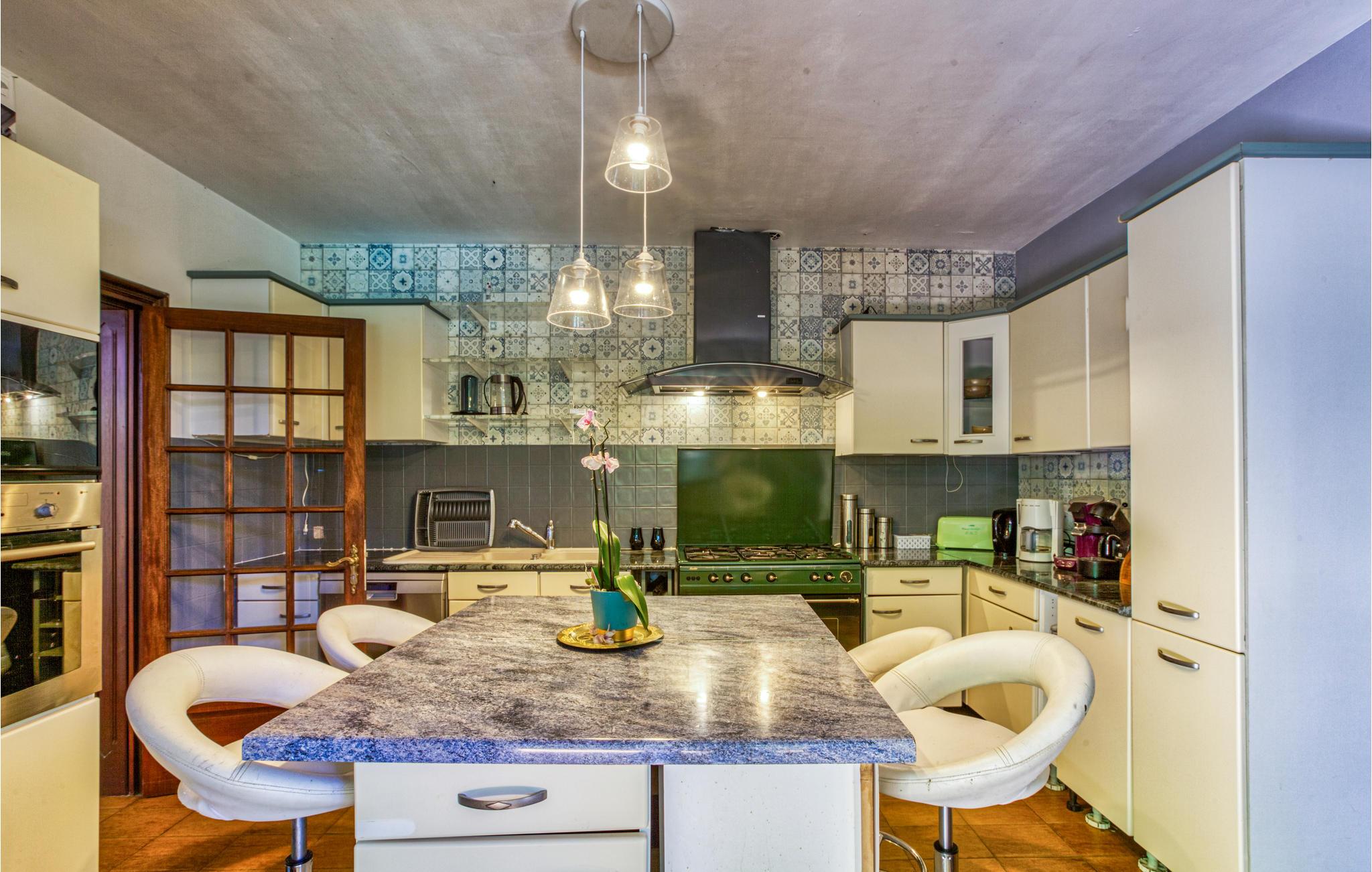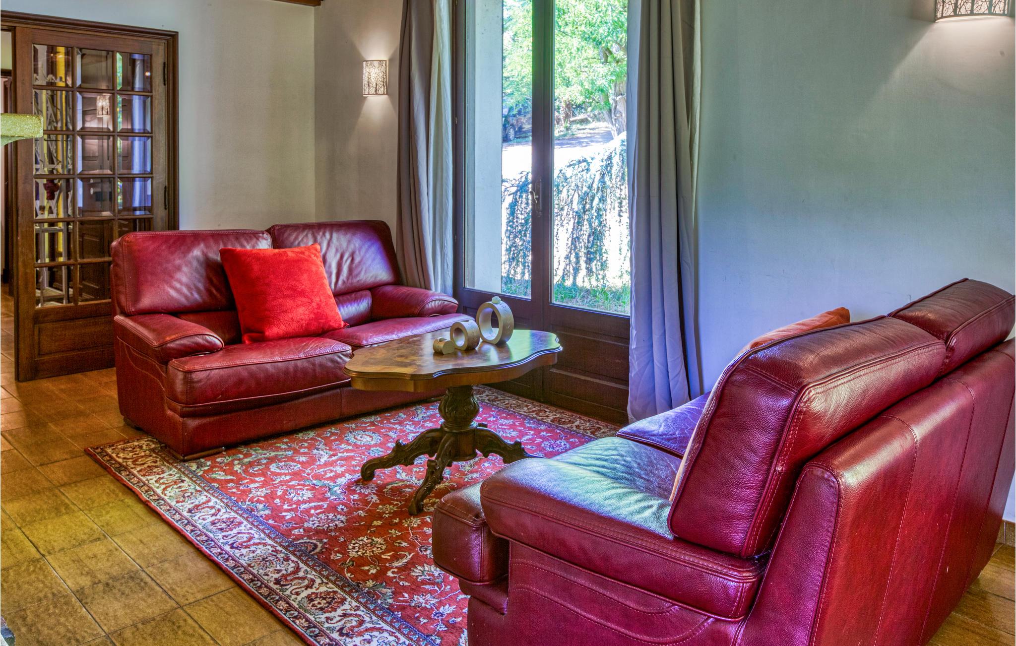 Denne flotte villa er i rustik stil og har en smuk, ugeneret beliggenhed. Indretningen er indbydende, og der er en behagelig atmosfære. Tilbring hyggelige stunder i den lyse opholdsstue og tilbered lækre måltider i det fine, moderne køkken.