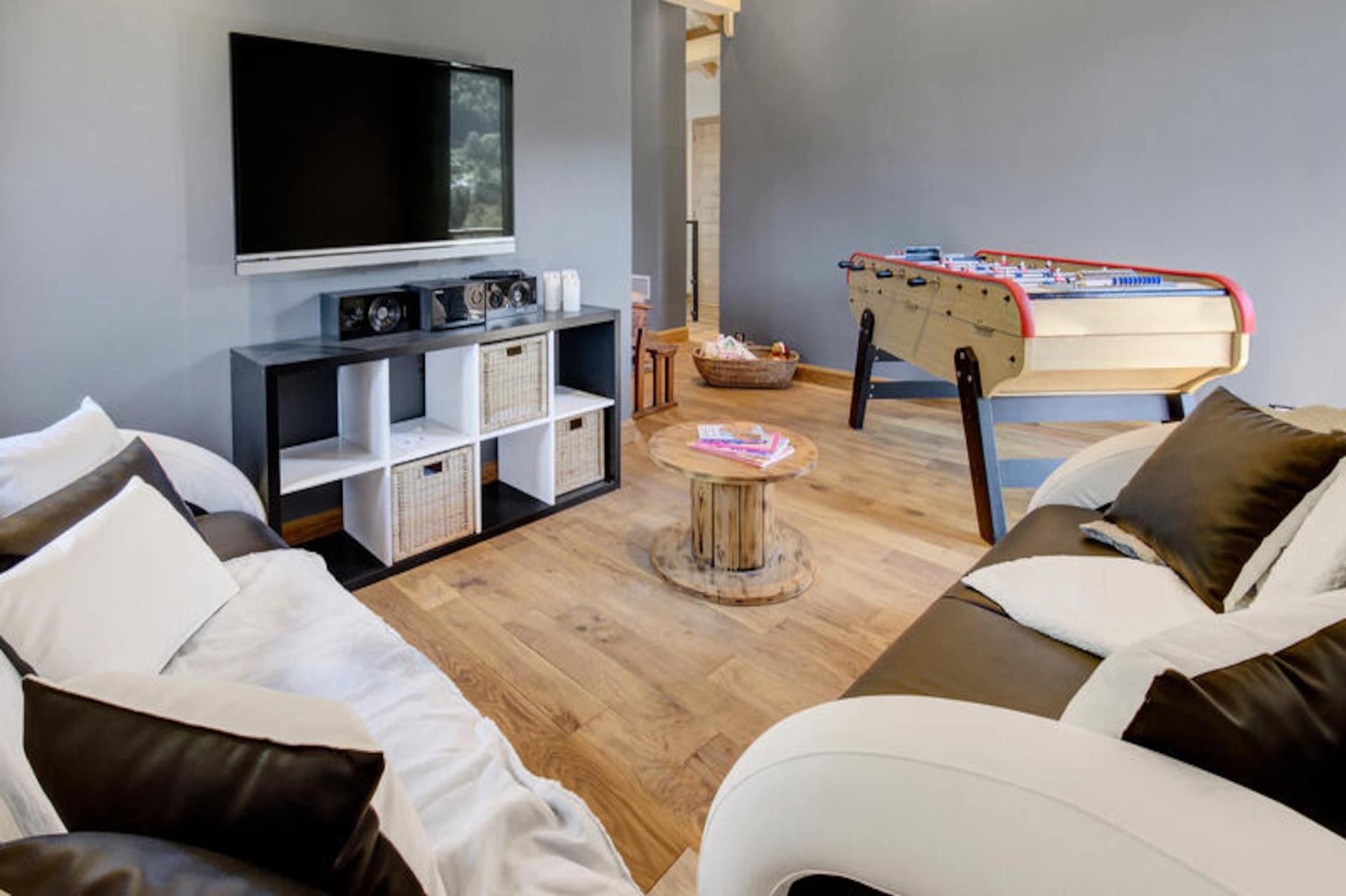 Denne rummelige 4-stjernede chalet kan rumme op til 10 voksne og 4 b?rn og tilbyder i alt 6 sovev?relser. Hvert sovev?relse er udstyret med dobbeltsenge (160x200 cm) eller to enkeltsenge (80x190 cm) og eget badev?relse med bruser. Hytten er designet til komfort, med en hyggelig stue, en br?ndeovn og en spiseplads, der ?bner ud til en terrasse. Der er ogs? et fitnesscenter, spa-rum med sauna, jacuzzi og et sovev?relse med dobbeltseng p? nederste etage. Ejendommen er fri for k?ledyr, og den inkluderer slutreng?ring og linned. Der kr?ves et refunderbart depositum p? ?2000. Beliggende i hjertet af Portes du Soleil tilbyder Morzine aktiviteter ?ret rundt for alle aldre. Om vinteren kan du nyde at st? p? ski p? 286 pister p? tv?rs af 12 fransk-schweiziske feriesteder, mens du om sommeren kan udforske vandreture, mountainbike og vandsport ved den n?rliggende Lake Montriond. Omr?det byder ogs? p? eventyrparker, klatring, rafting og canyoning. Hytten ligger kun 15 minutter til fods fra Morzine og er t?t p? shuttle-ruter. G?ster kan ogs? drage fordel af Multipass for rabat p? adgang til attraktioner og aktiviteter. Hytten har et fuldt udstyret ?bent k?kken, en rummelig opholdsstue og flere badev?relser, hvilket sikrer bekvemmelighed for alle g?ster. Yderligere faciliteter inkluderer et vaskerum, skirum med st?vlet?rrere, garage og to parkeringspladser. To opladningsstik til elbiler er tilg?ngelige. En concierge-service tilbydes til at arrangere lufthavnstransport, leje af skiudstyr, hjemmemassage og andre personlige tjenester.