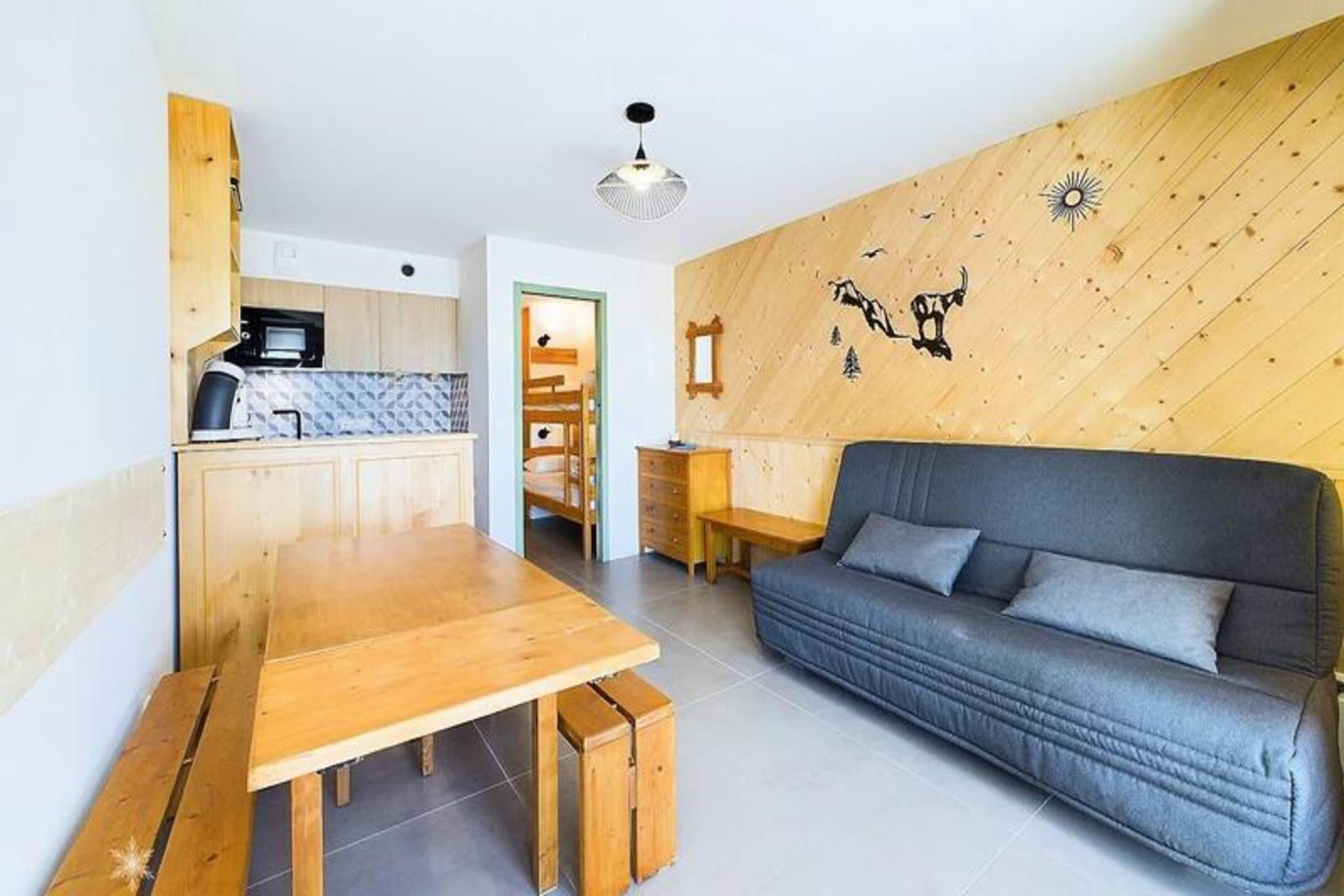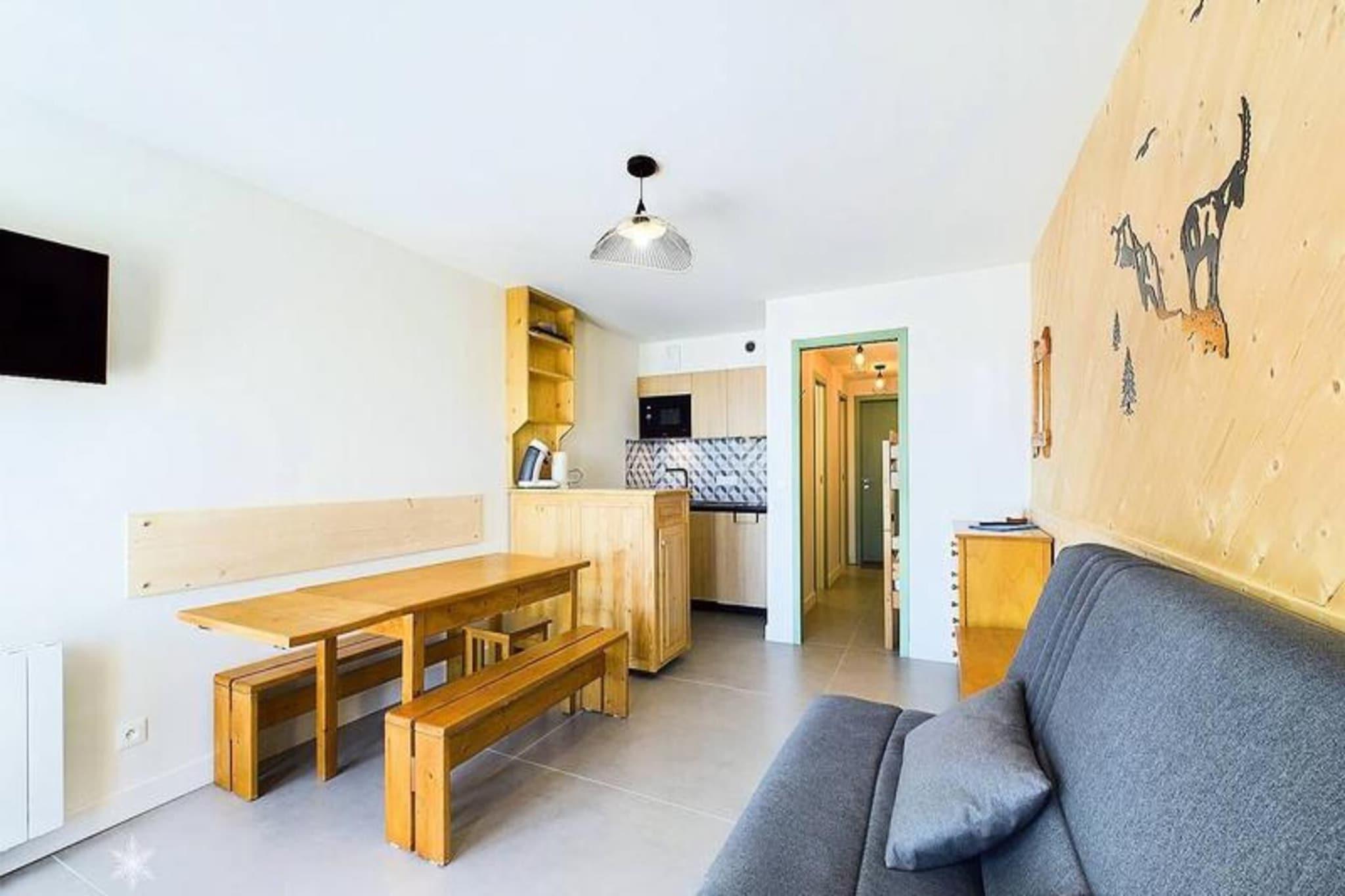 This charming studio apartment is located just 50 meters from the slopes and the Manessier ski lift, offering a prime location for winter sports enthusiasts. Accommodating up to 4 guests, the 26m² studio is completely renovated and boasts a south-facing terrace with stunning views of the valley. The apartment features a cozy entrance with 2 bunk beds and a living room with a convertible sofa bed for 2. Amenities include LED TV and a ski locker for your convenience. The apartment is not pet-friendly, and smoking is not allowed. The property’s location offers easy access to nearby attractions, with a free shuttle stop right at the foot of the residence. You’ll find shops 500 meters away, making it easy to pick up anything you may need. For nature lovers and outdoor enthusiasts, the surrounding area offers breathtaking views and access to skiing, hiking, and more. The nearby cafes and restaurants offer delicious local cuisine, while the nearby markets provide fresh, regional products for a true taste of the area. The studio comes equipped with a well-appointed kitchenette, featuring a ceramic hob, combined microwave oven, refrigerator, and dishwasher, making meal preparation a breeze. The bathroom includes a modern shower room with a towel dryer and a separate WC. End-of-stay cleaning, as well as the rental of sheets and towels, are available for an additional charge. Stay comfortable year-round with efficient heating, ensuring a cozy retreat after your outdoor adventures.