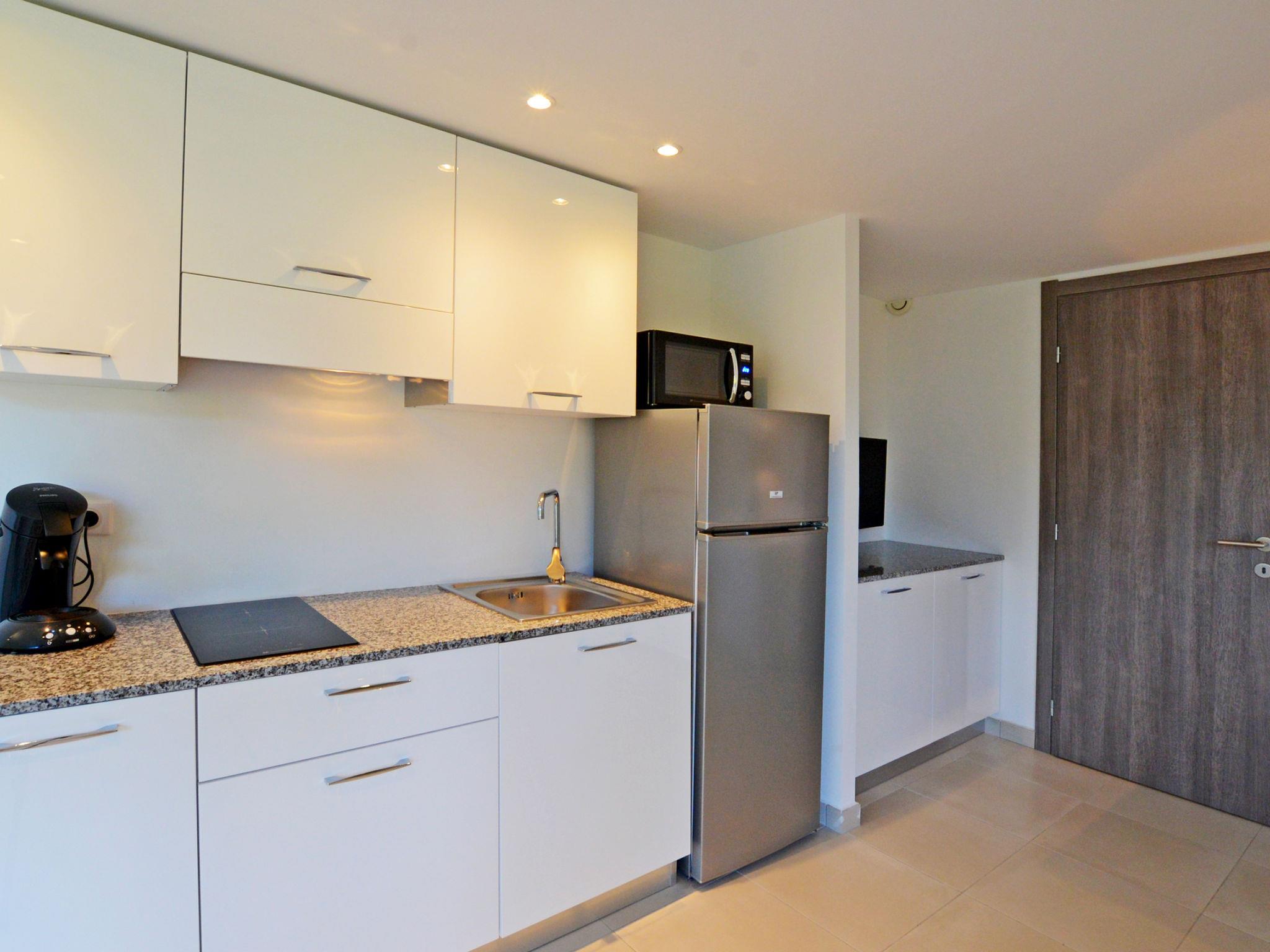 "MB6 vue mer", 3-room apartment 40 m2. Bright, renovated in 2017, practical furnishings: living/sleeping room with 1 double sofabed, dining table and satellite TV. 1 room with 1 french bed. 1 room with 2 beds. Kitchenette (2 ceramic glass hob hotplates, microwave, freezer, electric coffee machine). Shower, sep. WC. Heating, air-conditioning. View of the sea. Please note: suitable for families. Non-smokers only. Maximum 1 pet/ dog allowed. Smoke alarm. Offer by a commercial proprietor according to Art. 155, IV, CGI