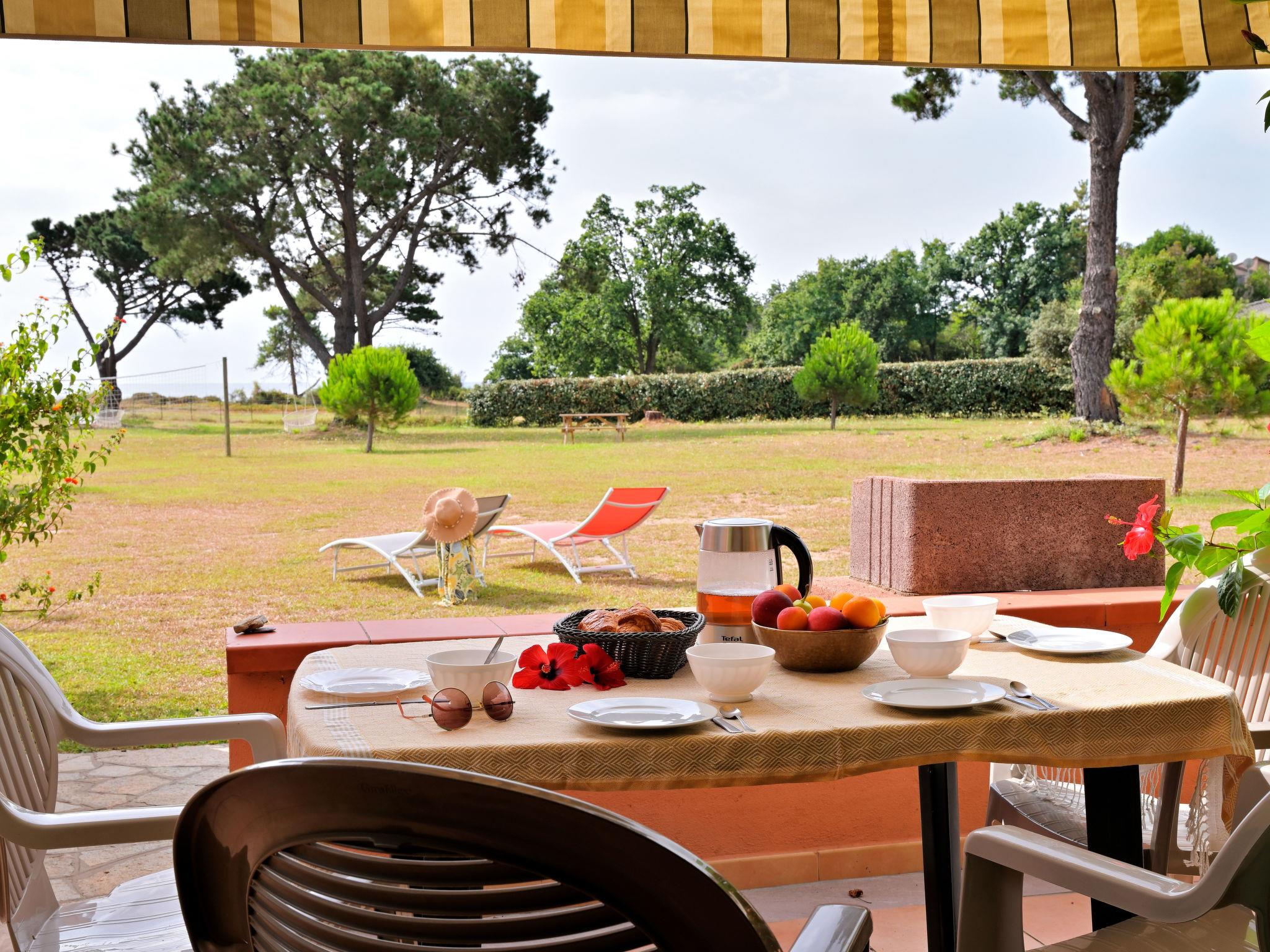 4 km from Moriani-Plage: Residence "Pinea Mare". 43 houses in the residence. In a quiet, sunny position, 200 m from the sea, 200 m from the beach, direct access to the beach. For shared use: property 3 ha (fenced), beautiful garden to relax. Outdoor shower, tennis (extra), table tennis, volleyball, children's playground. In the house: reception, WiFi, laundry (extra). Bread roll service. Parking at the house. Shop 3.8 km, grocery 2.9 km, supermarket 3.8 km, restaurant 2 km, bar 3.8 km, bakery 2.9 km, café 3.8 km, bus stop 3.8 km, sandy beach 200 m. Sports harbour 8 km, marina 8 km. Nearby attractions: Parc Galea 3.7 km, castagniccia, Casinca. Please note: car recommended. The photograph shows a typical example. The holiday properties may differ in living space, floorplan, equipment and furnishing.