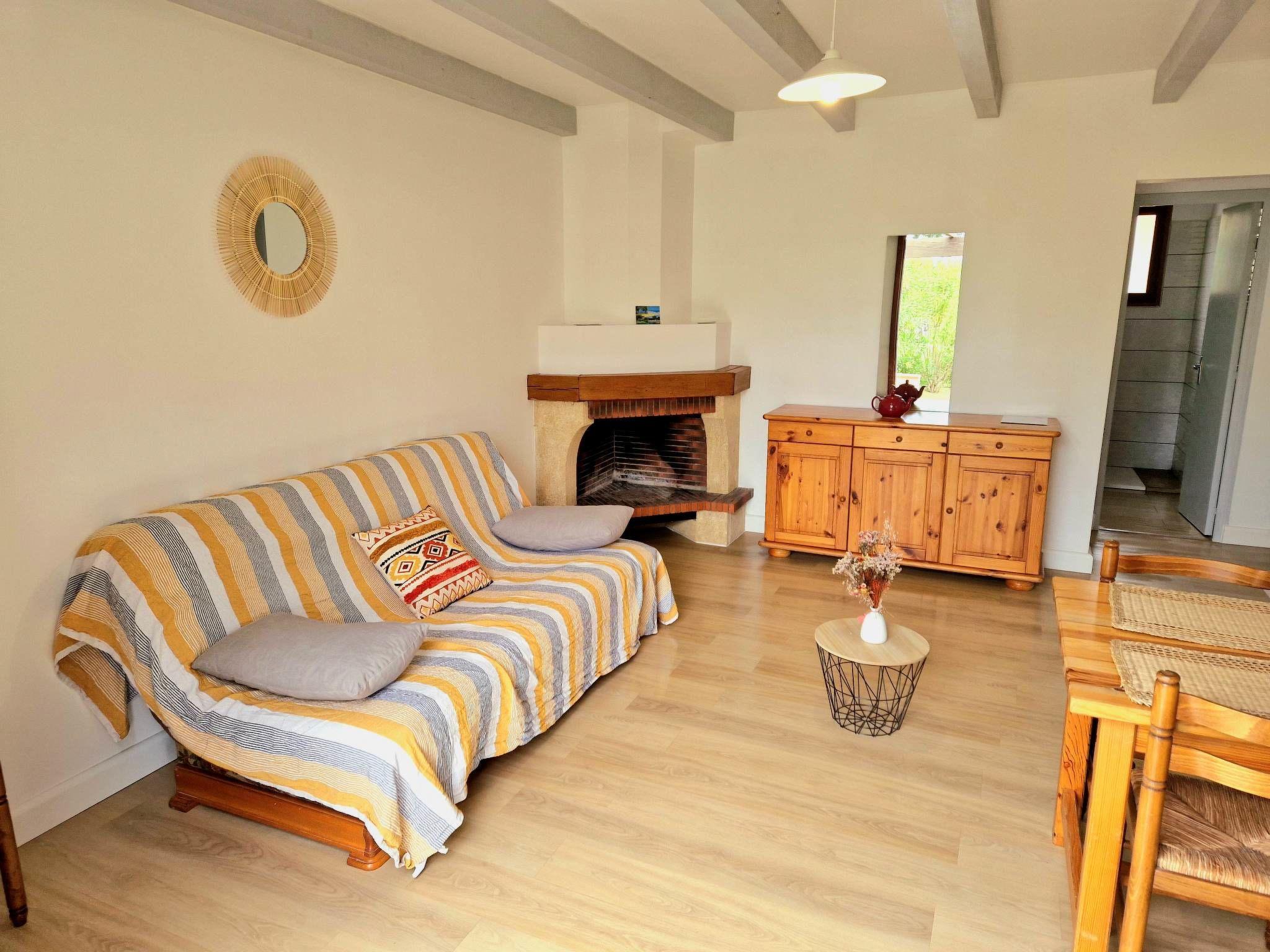 "Mini Villa 6/8 personnes", 4-room house 70 m2. Practical and comfortable furnishings: living/dining room with 1 double sofabed (140 cm, length 190 cm), open-hearth fireplace, dining table and air conditioning. Exit to the terrace. 2 rooms, each room with 2 beds (90 cm, length 190 cm). 1 room with 1 french bed (160 cm, length 190 cm). Kitchenette (oven, 4 gas rings, toaster, kettle, microwave, electric coffee machine). Shower, sep. WC. Electric heating. Terrace. Terrace furniture, barbecue. View of the sea and the countryside. Facilities: mosquito net. Internet (WiFi). Parking. Please note: suitable for families. Maximum 1 pet/ dog allowed. Smoke alarm. Offer by a commercial proprietor according to Art. 155, IV, CGI