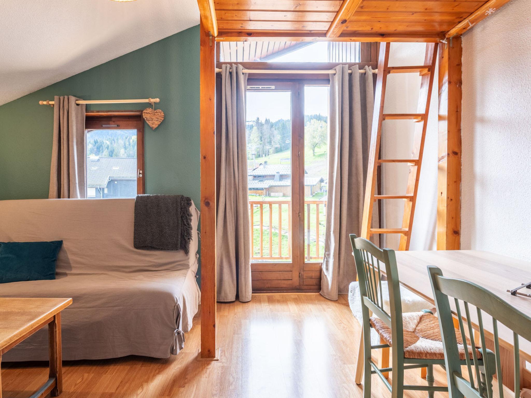 "Les Arcades", 2-room apartment 27 m2 on 3rd floor. Object suitable for 6 adults. 1 room with 2 sofabeds and TV. Living room with 1 sofabed, 1 double bed and 1 pull-out bed. Kitchen (oven, kettle, microwave, freezer, electric coffee machine). Shower/WC. Balcony. View of the mountains and the ski run. Facilities: Internet (WiFi, free). Please note: non-smokers only. Offer by a commercial proprietor according to Art. 155, IV, CGI 74190000650B3
