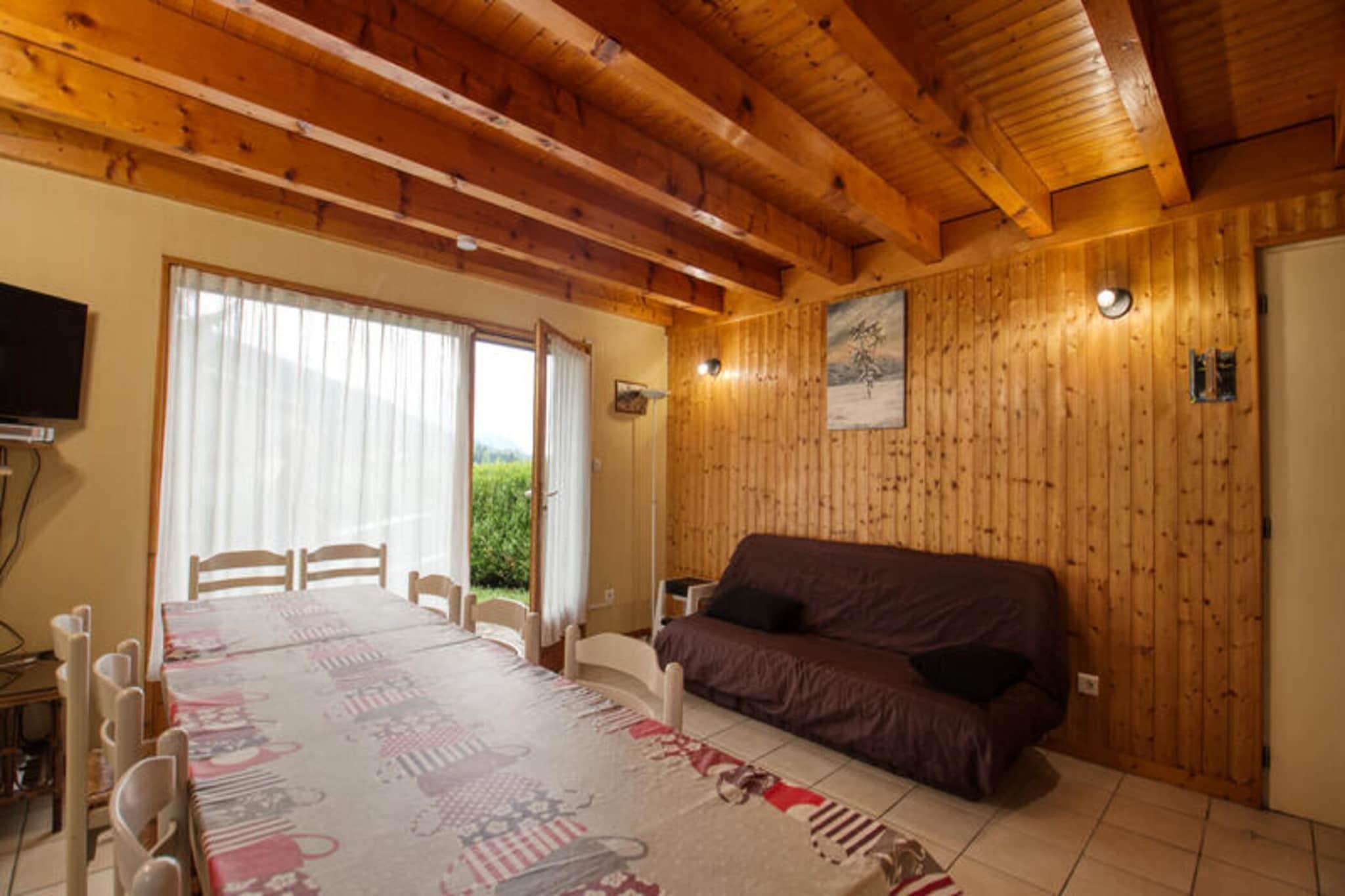 Denne 50m² dobbelthushytte i Morillon Village tilbyder et varmt og hyggeligt rum for op til 5 personer, med mulighed for at rumme 7. Stueetagen har en komfortabel stue med en sovesofa, et brusebadeværelse og en vestvendt terrasse, der giver en fantastisk panoramaudsigt over bjergene. Ovenpå finder du to soveværelser - det ene med en 140 cm seng og det andet med tre 90 cm senge - hvilket sikrer et afslappende ophold. Hytten er kæledyrsfri, røgfri og inkluderer en parkeringsplads for din bekvemmelighed. Hytten er ideelt beliggende kun 5 minutters gang (400 meter) fra butikkerne og svævebanen, og tilbyder nem adgang til både landsbyen og de omkringliggende aktiviteter. Fritidscentret, herunder den blå sø (50 meter væk) og langrendsfaciliteter, er inden for rækkevidde. Uanset om du er til vintersport, vandreture eller blot nyder den naturlige skønhed, byder regionen på et væld af udendørs muligheder for enhver type rejsende. Hytten er fuldt udstyret til et behageligt ophold, herunder køkken med 4-brænder komfur, ovn, mikroovn, opvaskemaskine og kaffemaskine. De to bruserum (et på hver etage) giver ekstra bekvemmelighed og privatliv. Andre faciliteter inkluderer en støvsuger, madrasser, tæpper og puder, hvilket sikrer en afslappende og behagelig ferie i dette charmerende bjergmiljø.