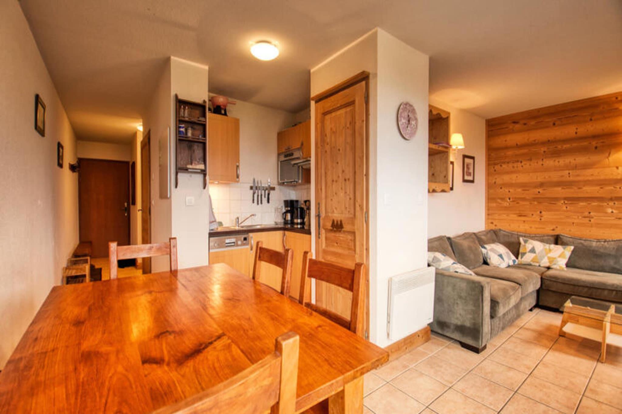 Denne charmerende lejlighed i Morillon 1100, beliggende ved foden af ??pisterne, kan komfortabelt rumme 6-7 gæster. Den har to soveværelser, hver med to enkeltsenge (80x200 cm), der kan sættes sammen, plus en mezzanin i et soveværelse med en ekstra enkeltseng (80x190 cm - ikke egnet til børn under 6). I stuen er der en sovesofa (140x200cm). Dette er en strengt ikke-ryger ejendom, og kæledyr er ikke tilladt. Der er en udpeget parkeringsplads, men tilgængelighed kan ikke garanteres. Ideelt beliggende midt i centrum af Morillon 1100, denne lejlighed tilbyder ski-in/ski-out adgang og er tæt på butikker og andre faciliteter. Beliggenheden giver nem adgang til pisterne og andre vinteraktiviteter. Denne lejlighed ligger på anden sal med elevator og har en nordvendt balkon med betagende udsigt over bjergene. Den lyse og venlige stue omfatter et fjernsyn og et veludstyret køkkenområde med køleskab, keramiske kogeplader med fire brændere, en opvaskemaskine, en kombineret ovn/mikrobølgeovn, en elektrisk kaffemaskine, en elkedel, en brødrister, en fonduemaskine, en raclettegrill, og komplet service og køkkengrej. Til lejligheden hører desuden badeværelse med badekar og toilet. Sengetøj (madraspuder, dyner og puder) er til rådighed, og en støvsuger er tilgængelig for gæsternes brug. Bemærk venligst, at der ikke er internetadgang i lejligheden. Opvarmning er til rådighed.