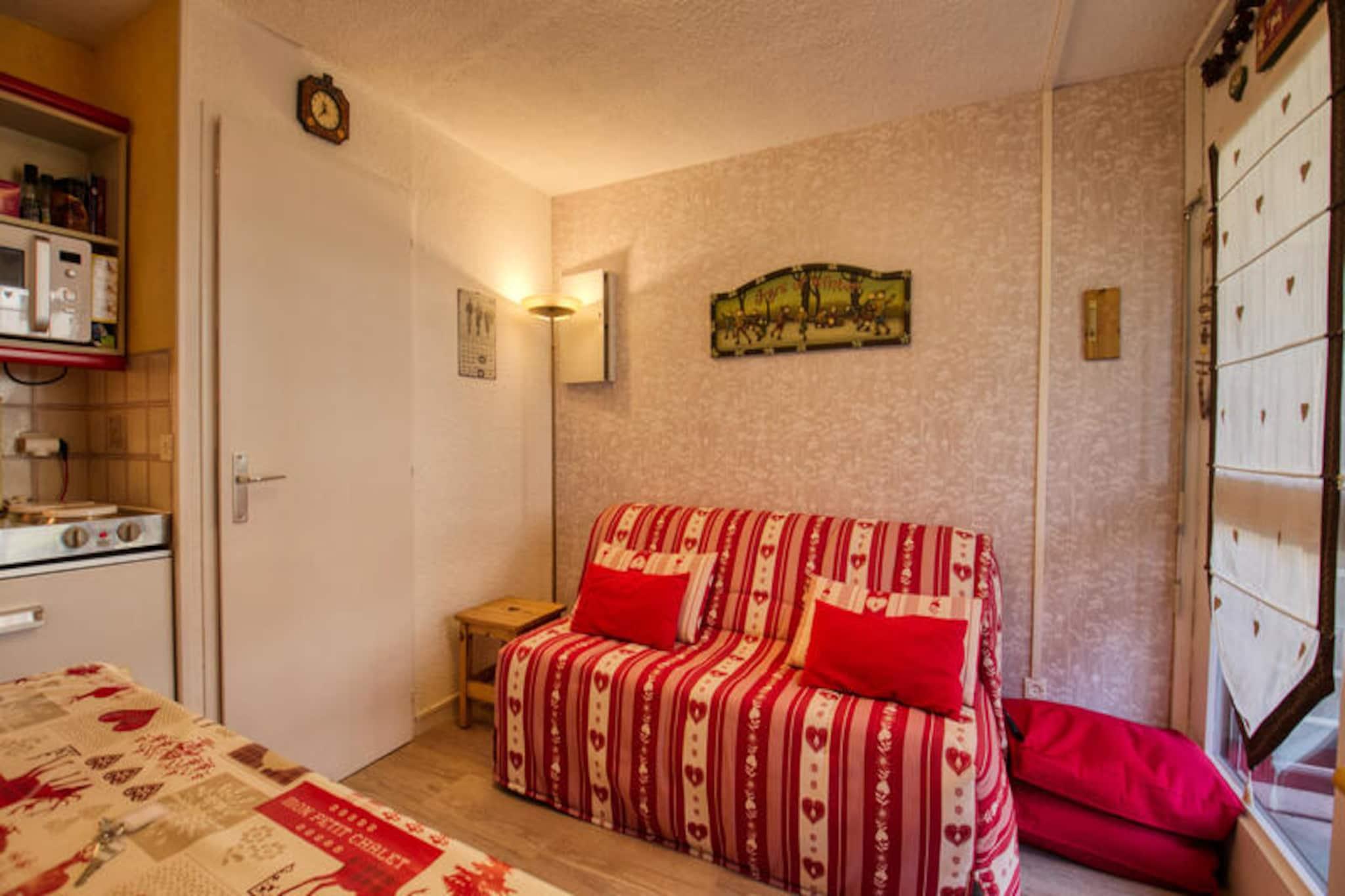 I hjertet af det maleriske Morillon 1100-resort tilbyder Praz des Esserts Residence et dejligt tilflugtssted for bjergentusiaster, der søger både eventyr og ro. Forestil dig at vågne op til den friske alpeluft, træde ud på din vestvendte balkon og nyde den fredfyldte udsigt over de omkringliggende tinder. Dette hyggelige studio, der ligger i stueetagen, er perfekt til par eller små familier, der ønsker at fordybe sig i charmen ved de franske alper. Uanset om du er her for vintersport eller sommervandreture, placerer denne bolig dig i centrum af det hele. \n\nStudioet er omhyggeligt designet til at maksimere komforten inden for dets 18 m² store rum. Det har en sovealkove med køjesenge, en stue med en dobbelt sovesofa og et fuldt udstyret tekøkken komplet med moderne apparater som køleskab, komfur og kombineret ovn/mikrobølgeovn. Brusebadet er kompakt, men funktionelt, hvilket sikrer, at alt hvad du behøver er inden for rækkevidde. Sengelinned er inkluderet, inklusive dyner og puder, og yderligere faciliteter som støvsuger og tørretumbler forbedrer dit ophold. Bemærk venligst, at kæledyr ikke er tilladt, og studioet har en strengt røgfri politik. \n\nBeliggende ved foden af ??pisterne har residensen direkte adgang til skiområdet Grand Massif, et paradis for skiløbere på alle niveauer. Om sommeren forvandles regionen til et paradis for vandrere og mountainbikere med stier, der snor sig gennem betagende landskaber. Det nærliggende fritidscenter tilbyder muligheder for afslapning og familievenlige aktiviteter, mens feriestedets butikker og restauranter kun ligger en kort gåtur væk og giver en smagsprøve på det lokale liv. \n\nUanset om du søger spændende nedkørsler, naturskønne stier eller blot en fredelig flugt, inviterer Praz des Esserts Residence dig til at skabe uforglemmelige minder midt i de franske alpers skønhed.