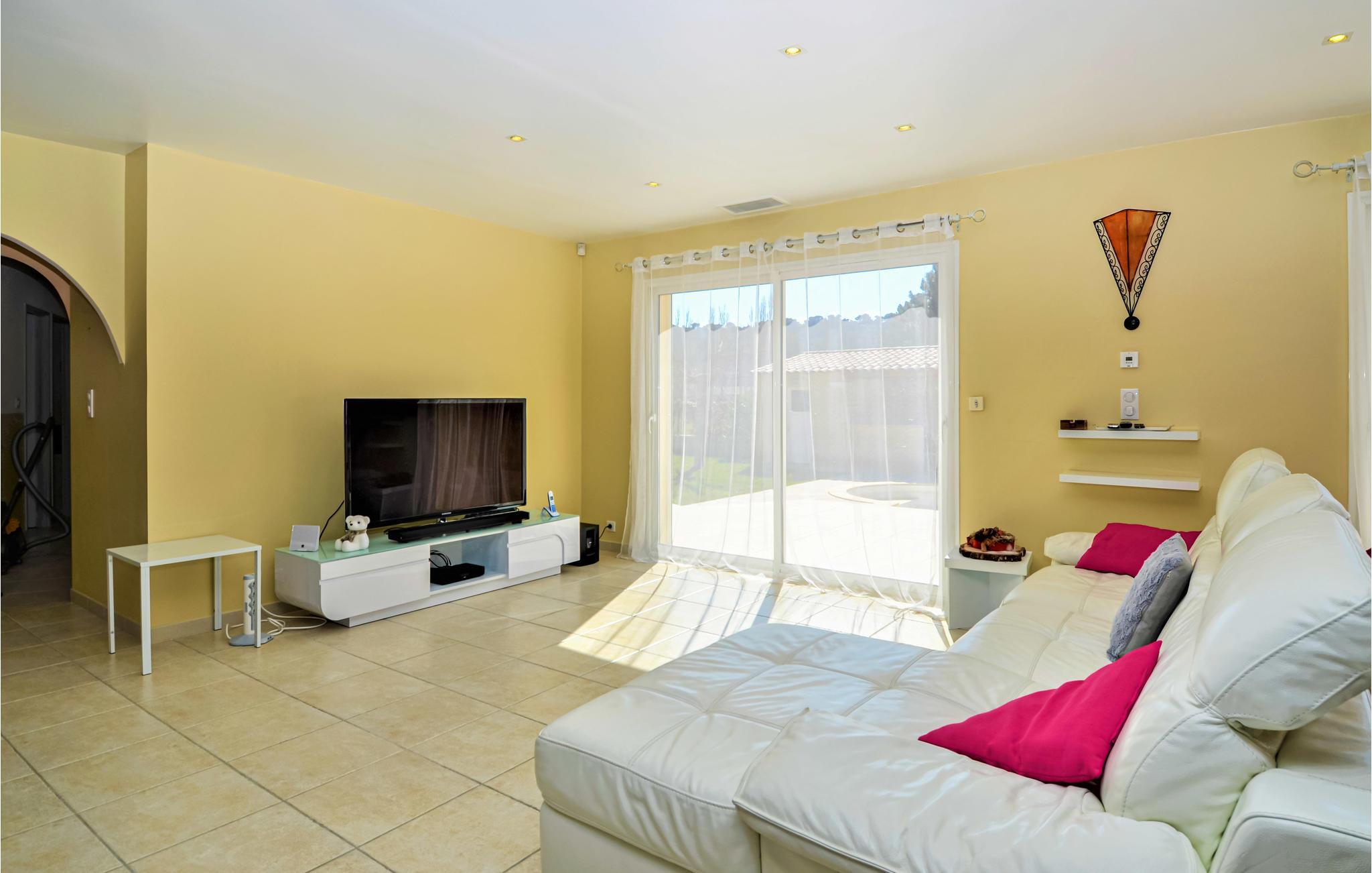 Dette indbydende feriehus er indrettet med fine materialer og tilbyder en masse komfort, især om sommeren, hvor den private pool lover nedkøling på de varmeste dage. Interiøret vil glæde jer med de 4 smukke soveværelser (+ sovesofa i stuen), de to badeværelser, det store køkken og den rummelige stue. For ekstra komfort er der et vaskerum med vaskemaskine, tørretumbler, stort påklædningsværelse, udenlandske og franske tv-kanaler, aircondition i alle værelser og Bose TV og højttalere.