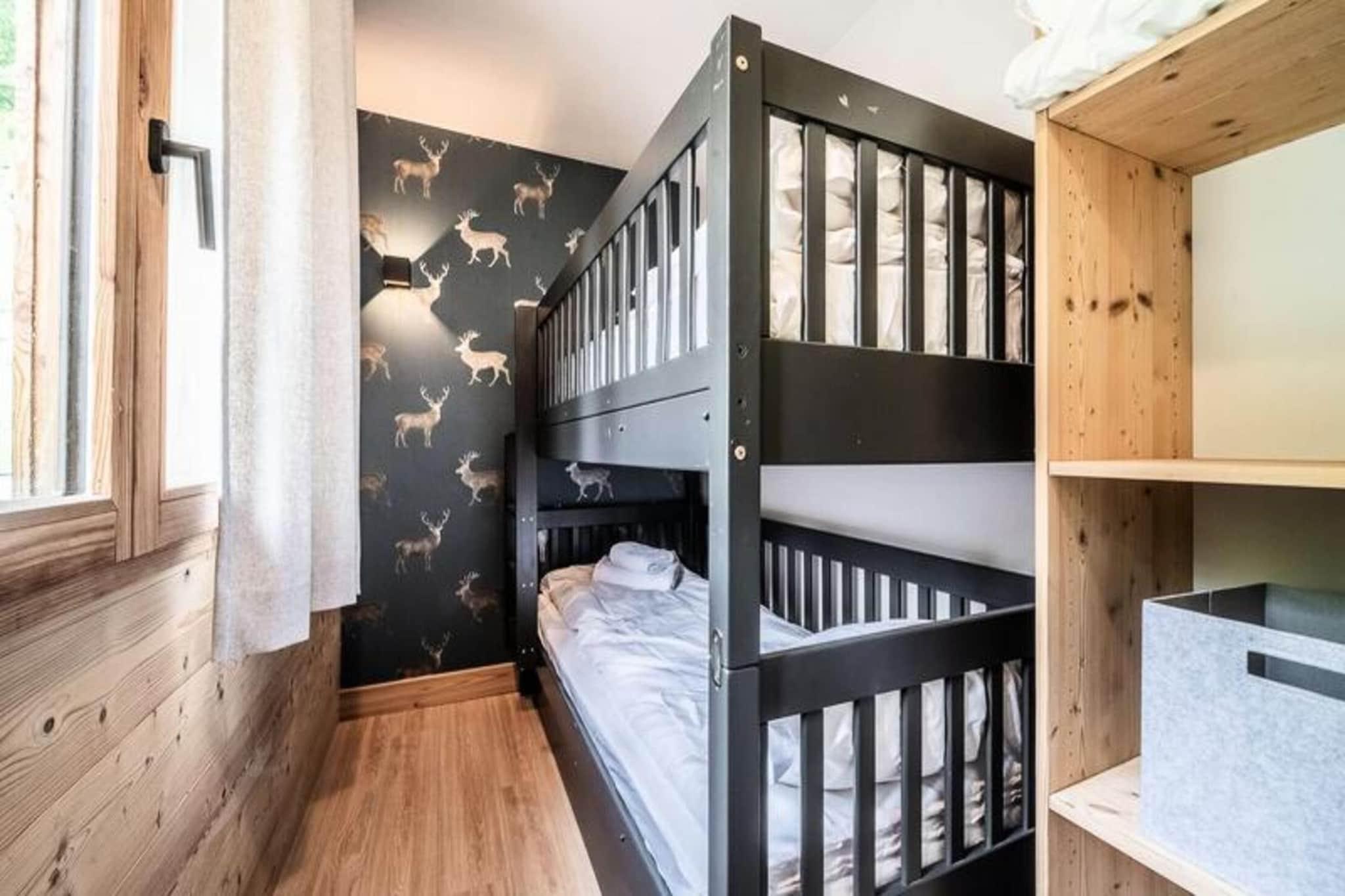 Dette er en smukt designet 88m² lejlighed beliggende på første sal i en ny, high-end bygning, der tilbyder et perfekt tilflugtssted for familier eller grupper på op til 8 personer. Ejendommen ligger 1,5 km fra centrum af Morzine og er ideelt forbundet med pisterne med et gratis shuttlestop kun 50 meter væk, hvilket giver nem adgang til Avoriaz-området via Prodains-gondolen og Morzine-Les Gets-området via Pleney-gondolen. Om sommeren kan du nyde resortets Multipass, der tilbyder adgang til en bred vifte af aktiviteter, herunder skiløb, vandreture og udendørs eventyr. Husdyr er ikke tilladt, og cykler og ski er forbudt i lejligheden. Nærliggende attraktioner omfatter den pulserende by Morzine, der er kendt for sin charmerende alpine landsbyatmosfære, shopping, spisesteder og adgang til det ekspansive skiområde Portes du Soleil. Lejligheden har tre velindrettede soveværelser, en hytte med køjesenge og to moderne bruserum. Opholdsstuen i åbent plan omfatter et fuldt udstyret køkken, en spiseplads og et komfortabelt opholdsområde med et fjernsyn, der alt sammen fører til en privat balkon. Yderligere faciliteter inkluderer en vaskemaskine, tørretumbler, opvaskemaskine, Wi-Fi og privat skiskab. For nemheds skyld er der to private parkeringspladser.