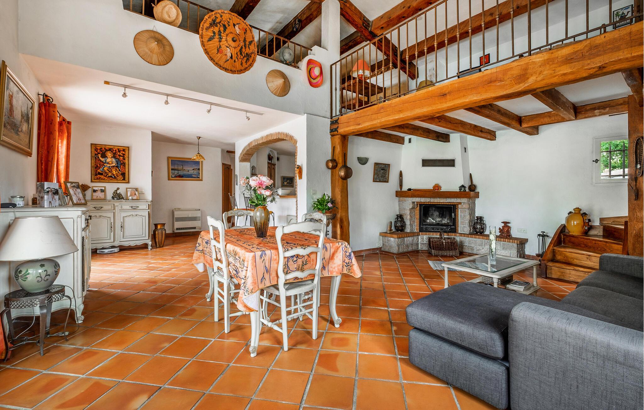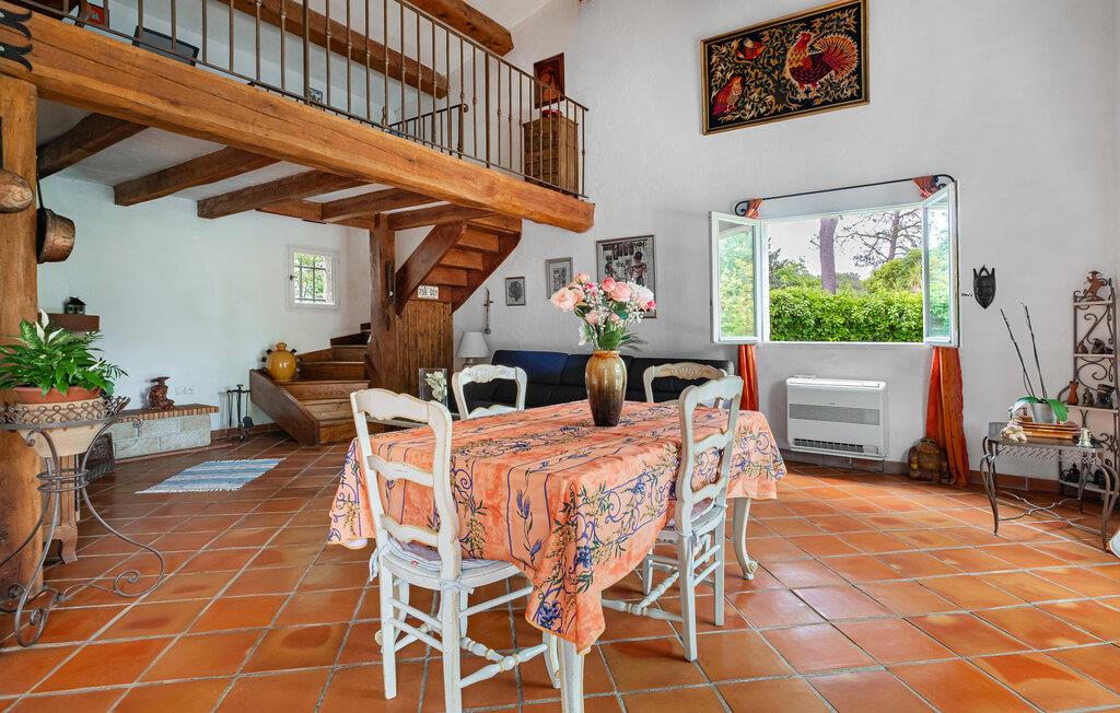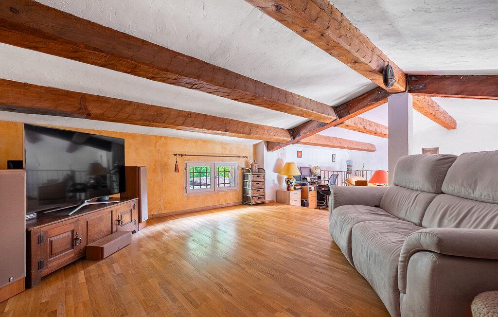 Velkommen til denne rummelige feriebolig, hvor massive træbjælker og en smuk indretning skaber en hyggelig og venlig atmosfære. Eksperimentér i det store køkken med krydderurter fra Provence, og nyd den fælles tid med familien ved muntre måltider i det åbne opholdsrum.