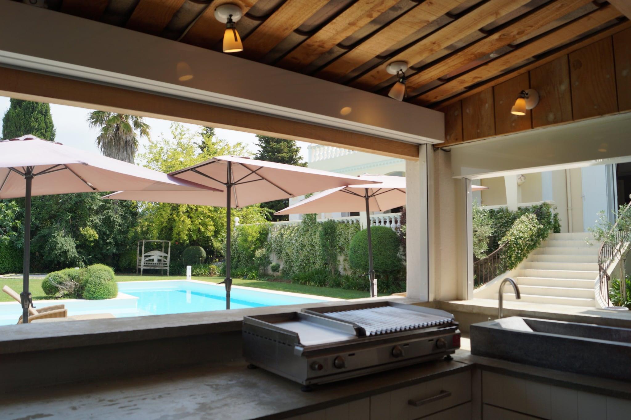Elegant Escape i Mougins Velkommen til en stilfuld 6-værelses villa i Mougins - din private oase i den franske riviera. Huset er designet til familier og grupper og har en funklende 12 m privat pool, trampolin, udendørs bruser og frodige indhegnede haver. Med aircondition overalt og rummeligt interiør tilbyder det moderne bekvemmeligheder i smarte, fredfyldte omgivelser (kæledyr er ikke tilladt). Prime Riviera Location Kun 3 km fra den maleriske landsby Mougins og en kort køretur til Cannes og Grasse, er villaen perfekt placeret til at udforske det bedste i regionen. Tilbring dagen med at solbade på strandene i Cannes, tee ud på nærliggende golfbaner eller opdage charmen ved Valbonne og Antibes. Supermarkeder, restauranter og tennisbaner er alle inden for rækkevidde. Spis og slap af med stil Villaens åbent køkken er ideelt til gruppemåltider, mens de overdækkede terrasser tilbyder det perfekte sted til udendørs spisning. Nyd vin ved solnedgang, grill på gasgrillen, eller nyd en bog i skyggen, mens børnene hopper på trampolinen. Fra høje stole til køjesenge, der er tænkt på alle detaljer - hvilket gør dit ophold i Riviera lige så afslappende som luksuriøst.