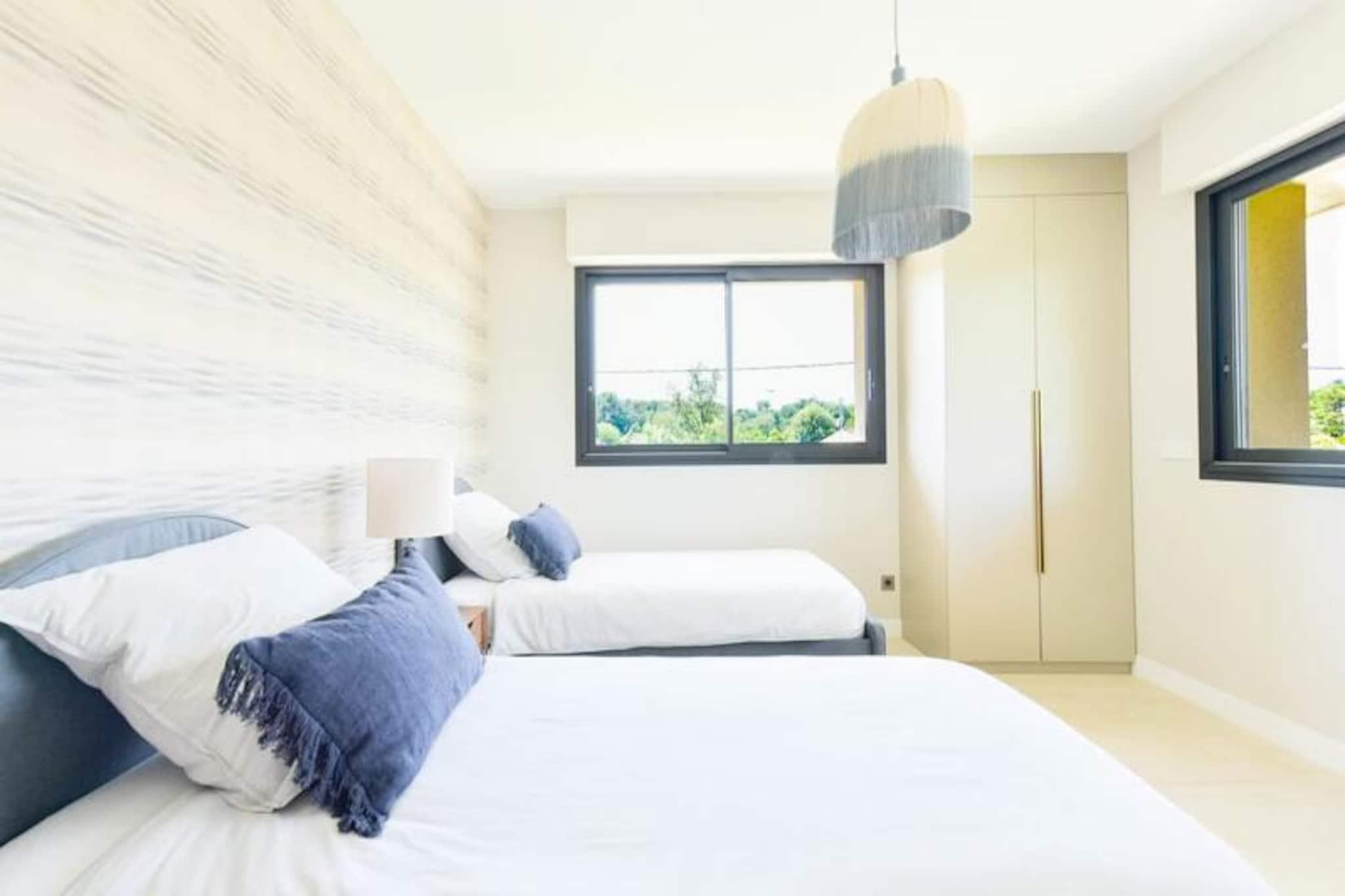 Denne fantastiske villa med seks soveværelser ligger gemt væk i en fredelig blind vej i hjertet af den franske riviera og tilbyder et luksuriøst tilflugtssted for familier og grupper, der søger afslapning og eventyr. Omgivet af frodigt grønt og badet i middelhavssolskin skaber ejendommens store grund og gennemtænkte design en atmosfære af ro og forkælelse. Uanset om du slapper af ved den glitrende 10 x 4 m pool eller nyder en grillfest i den udendørs spiseplads, føles hvert øjeblik her som en fejring af Côte d'Azurs charme. Børnene vil nyde det fortryllende trælegehus, der ligger omgivet af træerne, og tilføjer et strejf af magi til deres ferieoplevelse. \n\nIndenfor kan villaen prale af materialer af høj kvalitet og moderne faciliteter, der opfylder alle dine behov. Øverste niveau har fem smukt indrettede soveværelser, herunder tre værelser med eget badeværelse og private terrasser med udsigt over haven. Master-suiten i stueetagen tilbyder et rummeligt fristed komplet med et luksuriøst badeværelse og påklædningsværelse. Det åbne køkken, spisepladsen og stuen giver det perfekte sted at samles med stilfulde møbler og et smart-tv til underholdning. Villaen er fuldt airconditioneret og udstyret med Wi-Fi, hvilket sikrer komfort og bekvemmelighed under hele dit ophold. \n\nVillaen ligger kun få minutter fra Cannes og Nice og er perfekt placeret til at udforske regionens højdepunkter. Naturentusiaster vil sætte pris på den nærliggende Valmasque Park og Fontmerle-dammen, mens golfelskere kan nyde en runde på Cannes/Mougins golfbane, der kun ligger en kort køretur væk. Vigtige butikker og offentlig transport ligger inden for gåafstand, hvilket gør det nemt at få adgang til alt, hvad du behøver. \n\nMed sin blanding af elegance, komfort og nærhed til det bedste af den franske riviera lover denne villa en uforglemmelig ferie, hvor værdsatte minder skabes.
