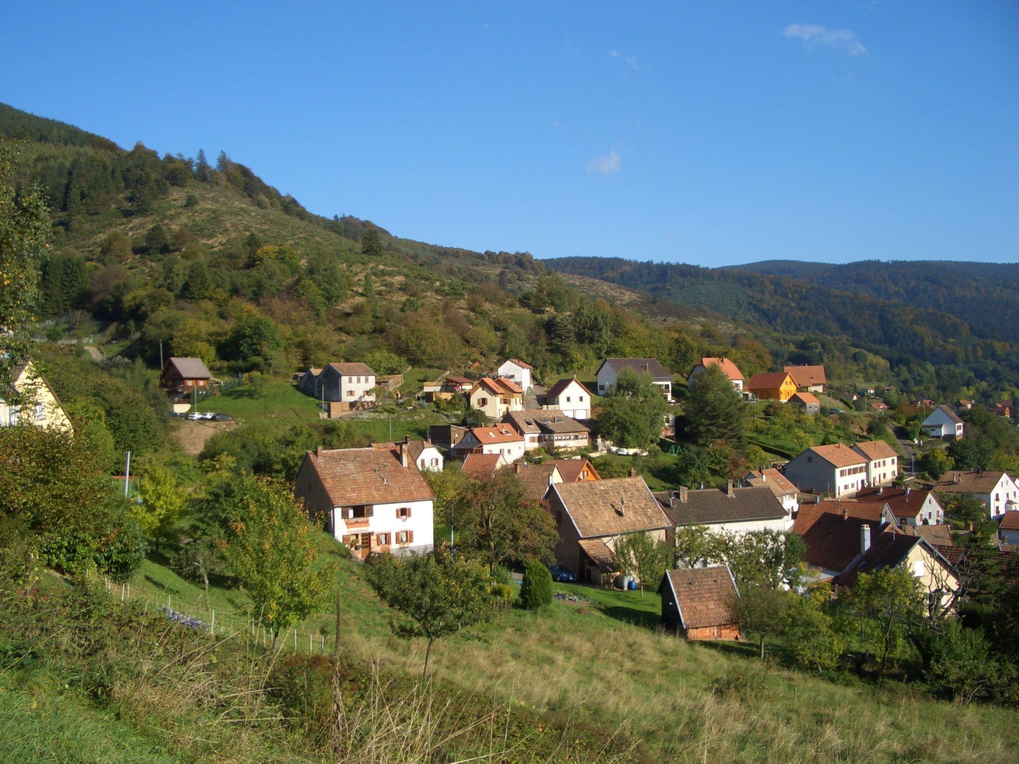 The holiday house is at the heart of a quiet village at an altitude of about 570 metres with a wonderful view of the surrounding valley, in an area known for its Alsace cuisine. Holiday house right in the village centre in a quiet location, with a balcony, a garden and a view of the surrounding green valley