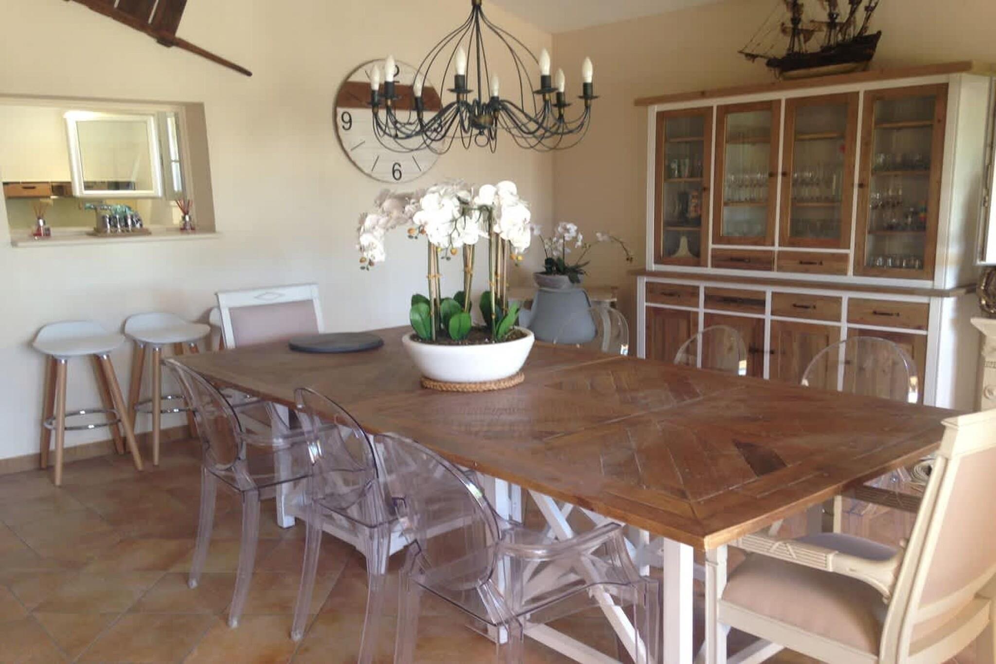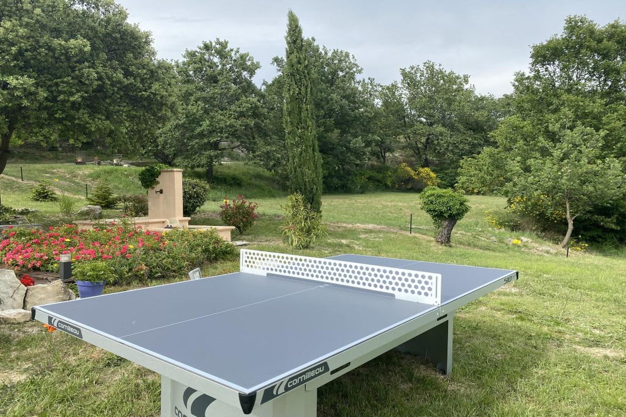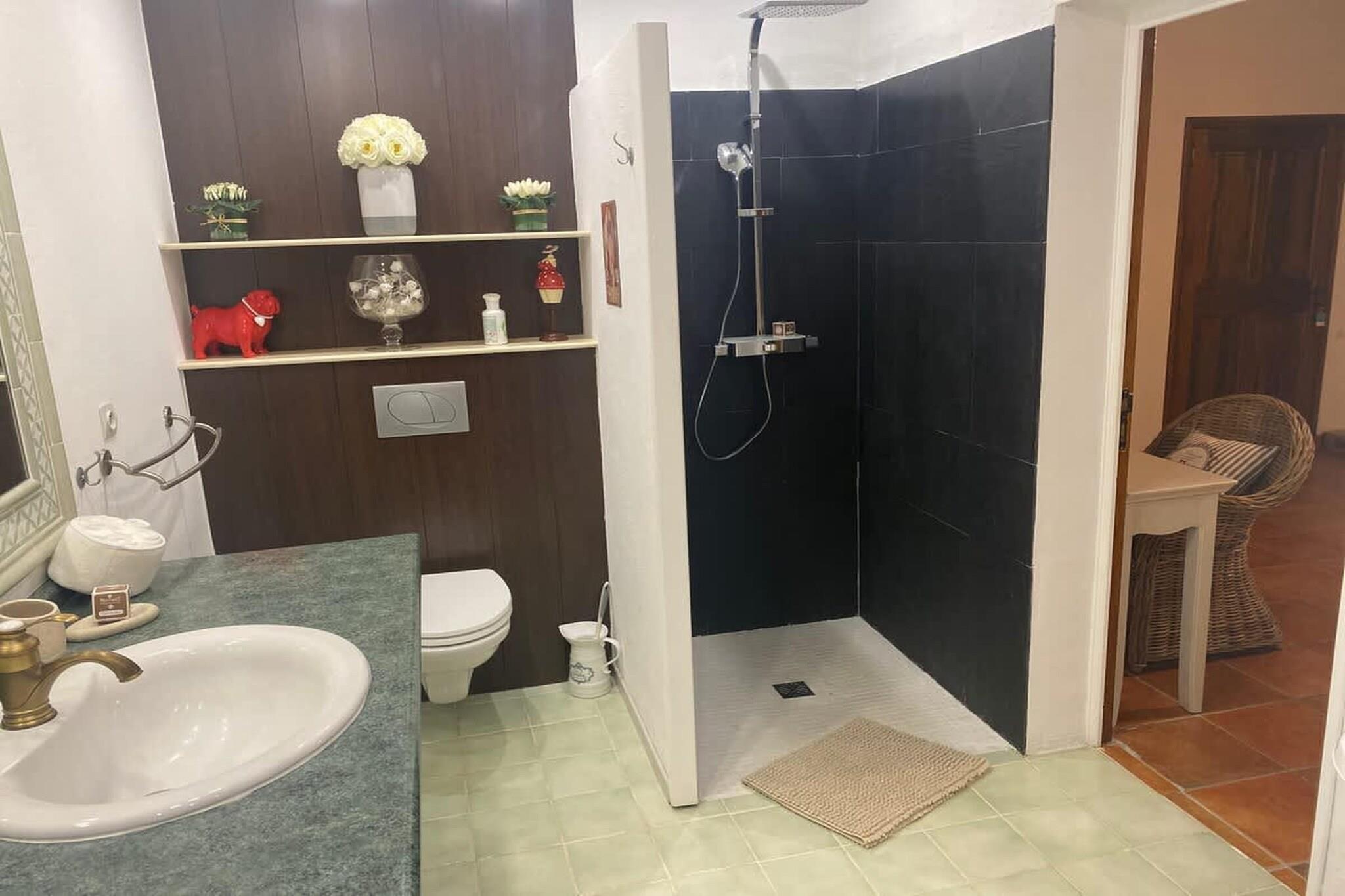 Denne elegante provencalske bastide, beliggende i Murs, ligger på en privat, stor ejendom på syv hektar og tilbyder et autentisk og raffineret fristed, kun seks kilometer fra Gordes, en af Frankrigs smukkeste landsbyer. Ejendommen er designet til absolut komfort og ro og blander ubesværet traditionel arkitektonisk charme med moderne bekvemmeligheder af høj kvalitet. Det rummelige interiør er indrettet for at sikre privatliv og luksus for alle gæster, med fem rummelige soveværelser, der hver har eget badeværelse, tv og rigelig opbevaringsplads. De fælles opholdsrum er lyse og indbydende og åbner generøst ud mod naturen. Indretningen er enkel og elegant med fremhævelse af kvalitetsmaterialer og autentisk provencalsk charme. Villaen er fuldt udstyret med fiberoptisk Wi-Fi overalt og inkluderer et lille fitnesscenter til gæsterne. Køkkenet er fuldt forberedt til dit ophold og er udstyret med opvaskemaskine, mikrobølgeovn, stort køleskab, komfur og alt nødvendigt køkkenudstyr, herunder kaffemaskine og vinglas. Der er også vaskemaskine og tørretumbler. Udenfor er ejendommen en sand oase af fred og aktivitet. Den sikrede, opvarmede swimmingpool er det perfekte sted at slappe af, omgivet af store naturområder og liggestole. Et petanque-terrain fuldender den autentiske provencalske oplevelse. De syv hektar store grunde sikrer total ro og intimitet og tilbyder åben udsigt over Luberons landskab. Blandt de velovervejede faciliteter er en privat ladestation til elbiler og tilpasninger til gæster med nedsat mobilitet, såsom et soveværelse i stueetagen, brede døre og nem adgang til poolen.