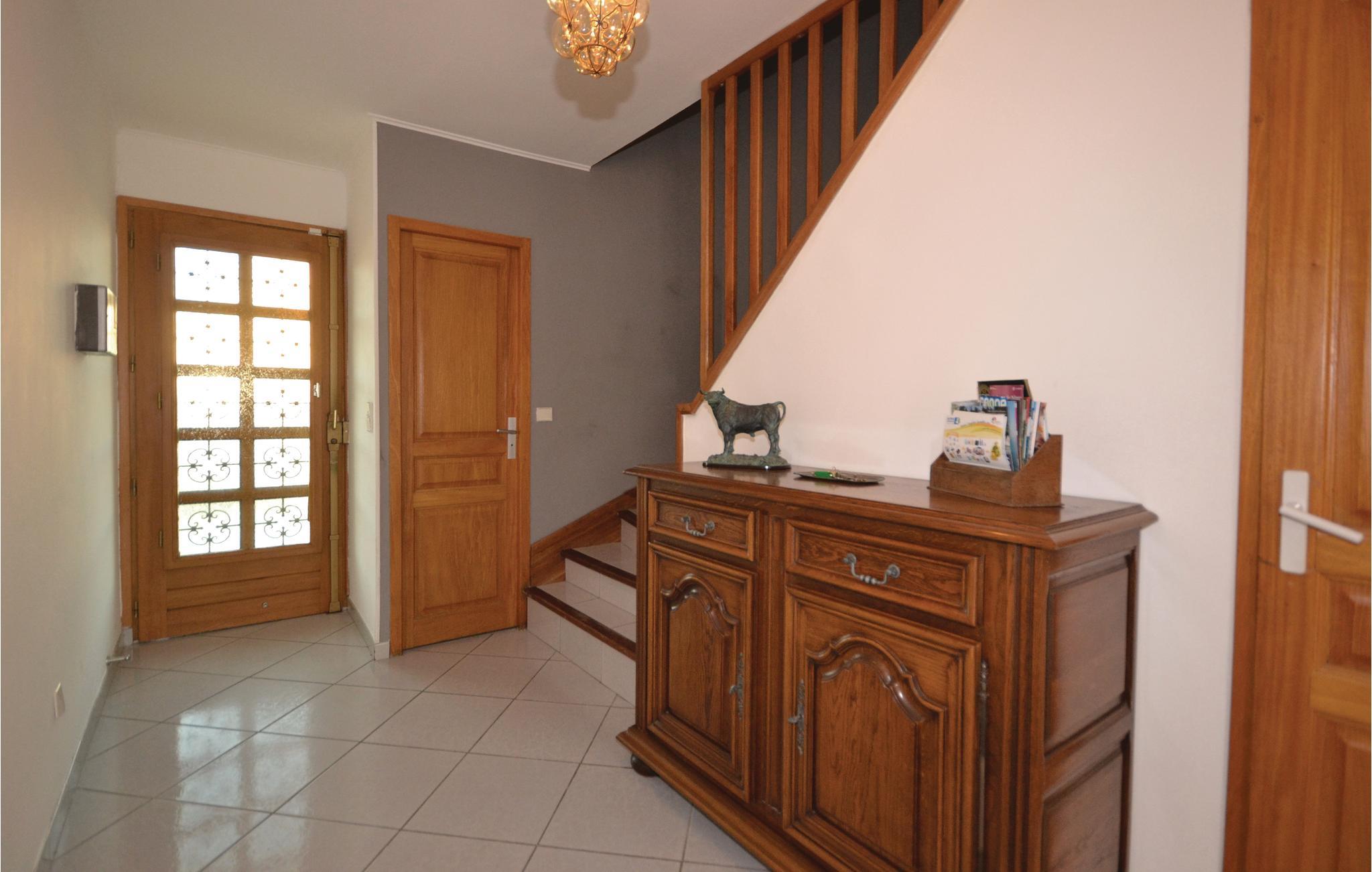 Velkommen til dette smukt beliggende hus, beliggende på en dejlig grund. Komfortable værelser og attraktive møbler skaber en hyggelig atmosfære. Uanset om I leder efter træning eller et familiespil pool, er der masser at underholde jer med. Efter dejlige feriedage kan I glæde jer til afslappende aftener på sofaen ved pejsen og nyde kvalitetstid sammen.