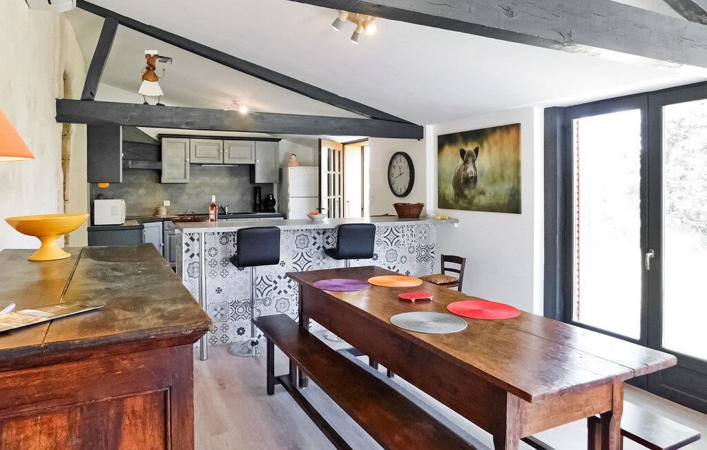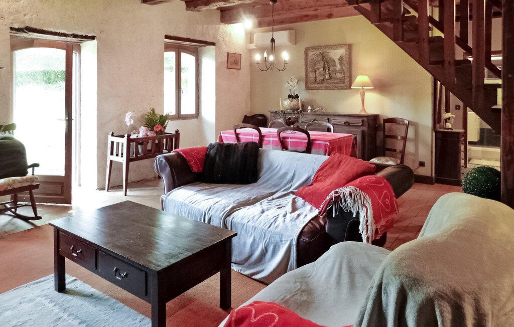 Dette dejlige Dordogne-landskabshus ligger på en 60 hektar stor ejendom og har en privat opvarmet pool med en fantastisk udsigt over landskabet. Det indre rum omfatter en stueetage med køkken, spiseplads, stue og et soveværelse med brusebad. Ovenpå deler to soveværelser et brusebad. Gå på opdagelse udenfor ved at gå rundt på den ekspansive grund, før du vender tilbage til huset og nyder en forfriskende svømmetur i den private opvarmede pool (10m x 5m), omgivet af en brolagt terrasse og liggestole. Huset ligger på landet, i gåafstand til landsbyen Nadaillac. De første butikker ligger omkring 8 km væk, i landsbyen Saint-Julien-de-Lampon.