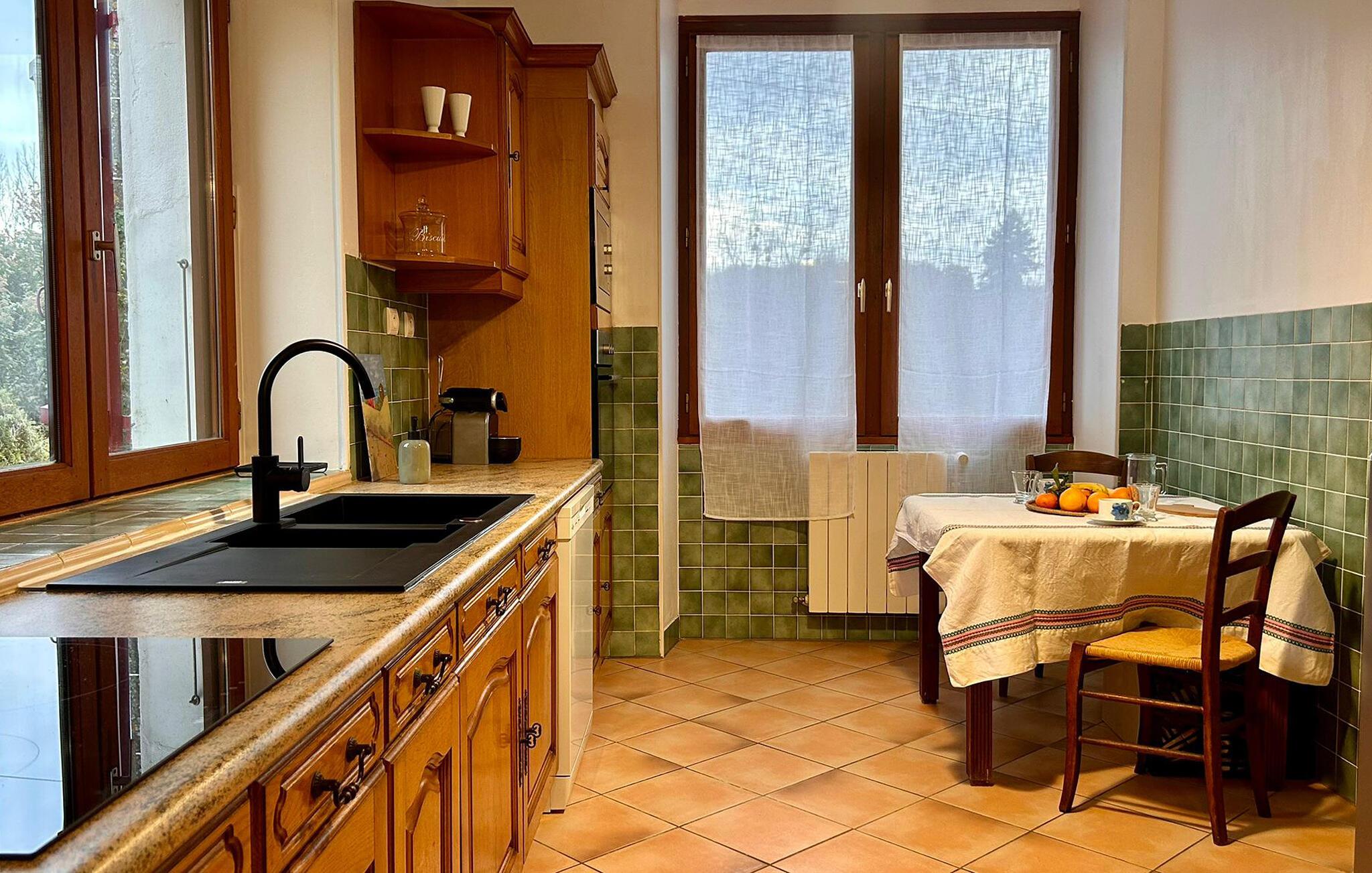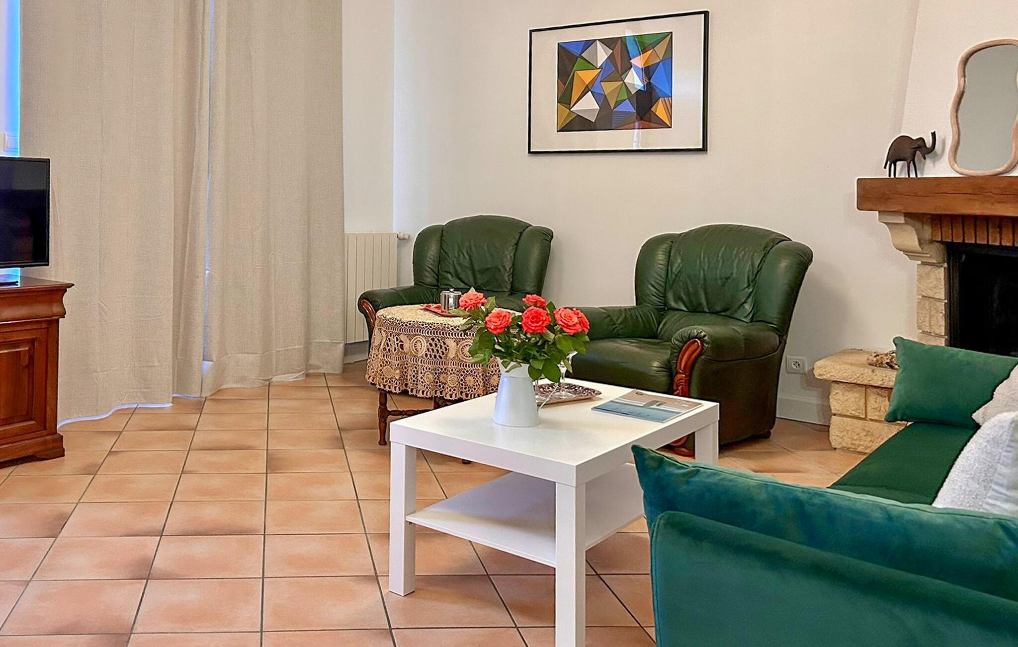 Inde i huset venter en traditionel sydfransk atmosfære med varme terrakottafliser, træbjælker og rustikke møbler. Opholdsstuen med pejs lægger op til hyggelige aftener, mens I kan lave mad sammen i det tilstødende køkken og nyde udsigten over de grønne omgivelser. Lyt til jeres yndlingsmusik og skænk jer et glas vin. Her kombineres landlig charme og hygge for at skabe et sted, hvor I hurtigt vil føle jer hjemme.