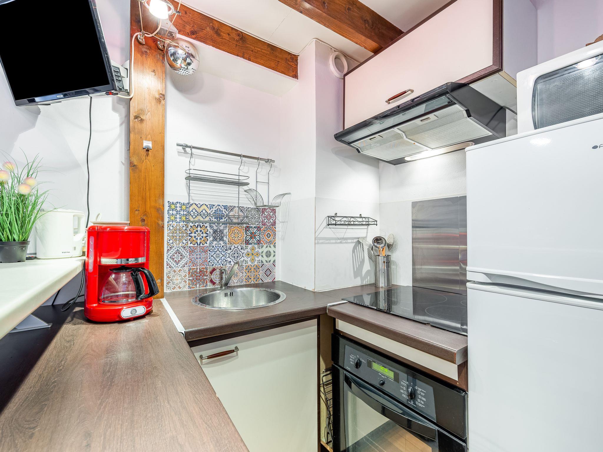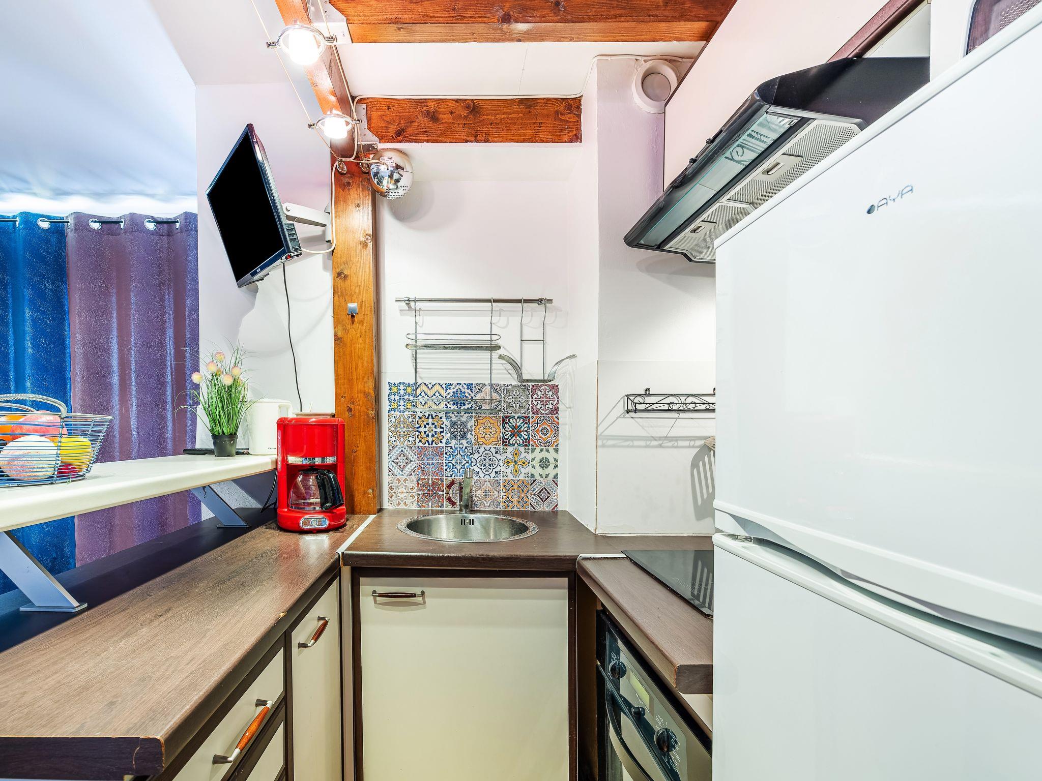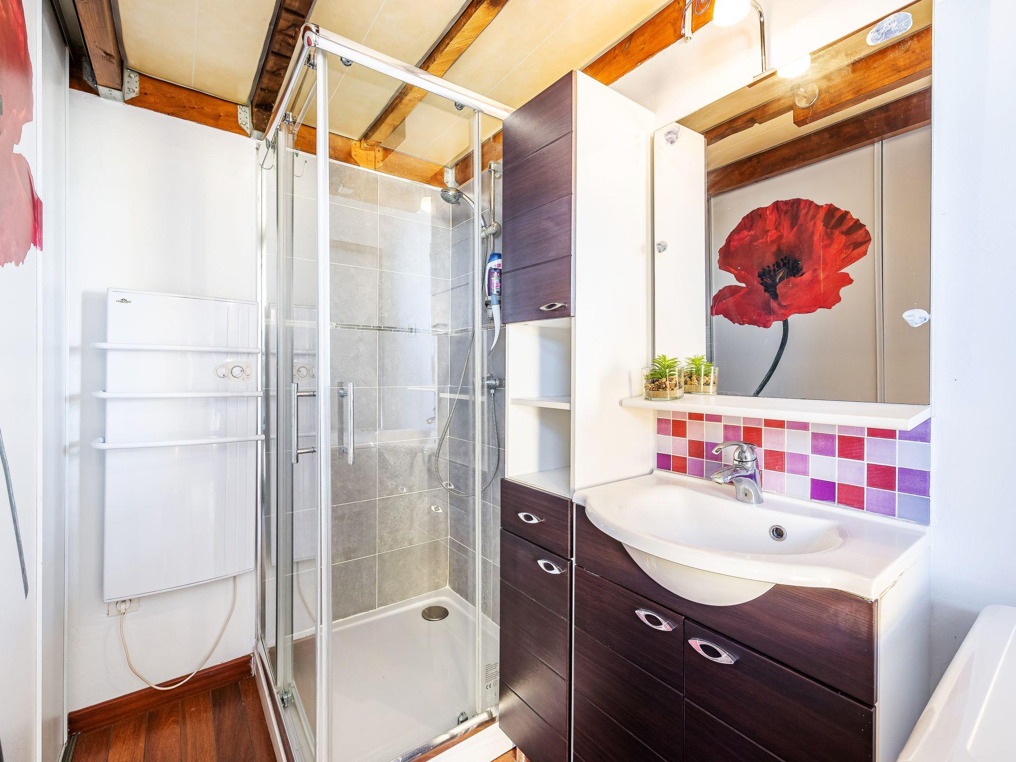 1-room studio 27 m2 on 2 levels on 3rd floor. Comfortable and beautiful furnishings: living/dining room with 1 double sofabed (140 cm, length 190 cm), TV (flat screen). Exit to the balcony. Open kitchen (oven, 3 induction hot plates, microwave, freezer). Shower, sep. WC. Electric heating. Upper floor: (steep stair) gallery with sloping ceilings, ceiling height 90 - 150 cm with rooflight with 1 french bed (140 cm, length 190 cm). Balcony 4 m2. Balcony furniture. Beautiful view of the sea. Facilities: washing machine. Internet (WiFi, extra). Parking space n 60. Please note: smoke alarm. Instead of an enclosed bedroom, some sleeping areas are located in an open-plan area (gallery, alcove, etc.). Offer by a private individual according to Art. 155, IV of CGI.