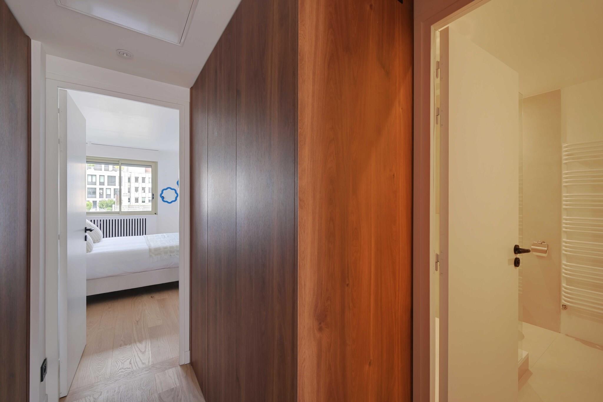På 6. etage: (Stue(Fjernsyn, sofahjørne), åbent køkken(spisebord, kakkelovn, kogeplade, elkedel, brødrister, kaffemaskine, ovn, mikrobølgeovn, opvaskemaskine , køleskab, , , Wine glasses), soveværelse(Queen Bed), badeværelse(bruser, toilet, føntørrer, , , )) , , , , , Førstehjælp, Legeområde, køleskab, tørretumbler, vaskemaskine, balkon eller terrasse, varme, klimaanlæg, strygejern, føntørrer, Håndklæder/sengelinned (inkl.), , , Carbon monoxide detector, Cleaning Disinfection, Downtown, Enhanced cleaning practices, High touch surfaces disinfected, Long term stays allowed, Path to entrance lit at night, Room-darkening shades, Town