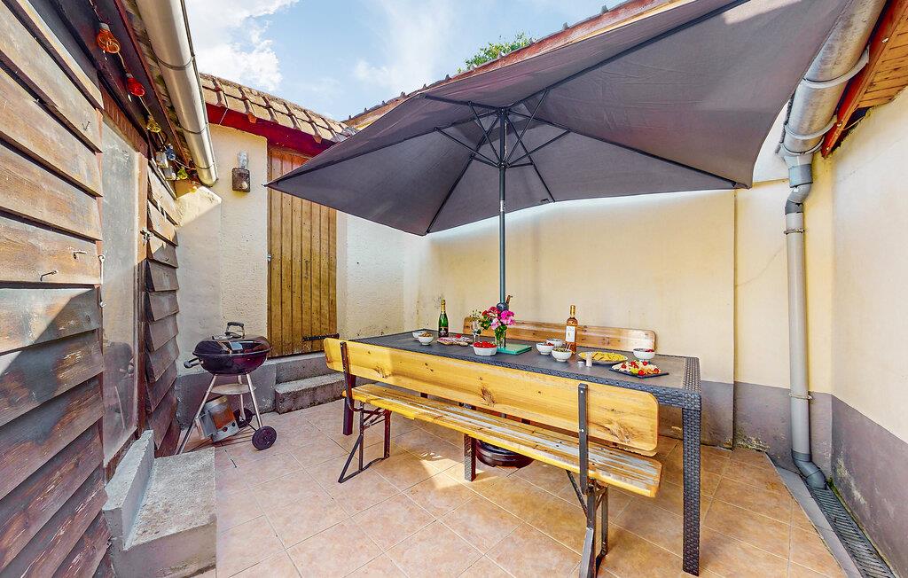 Nyd ferien i dette charmerende feriehus, som er noget særligt med sin hyggelige atmosfære og indbydende gårdhave. Det smagfulde interiør byder på masser af komfort, farver og bindingsværk og lægger op til at slappe af. Takket være det rummelige interiørdesign føles jeres ophold behageligt og privat. Den optimale beliggenhed betyder, at I kun er en behagelig køretur væk fra de smukke strande, samtidig med at I kan nyde feriehusets landlige stemning og ro.