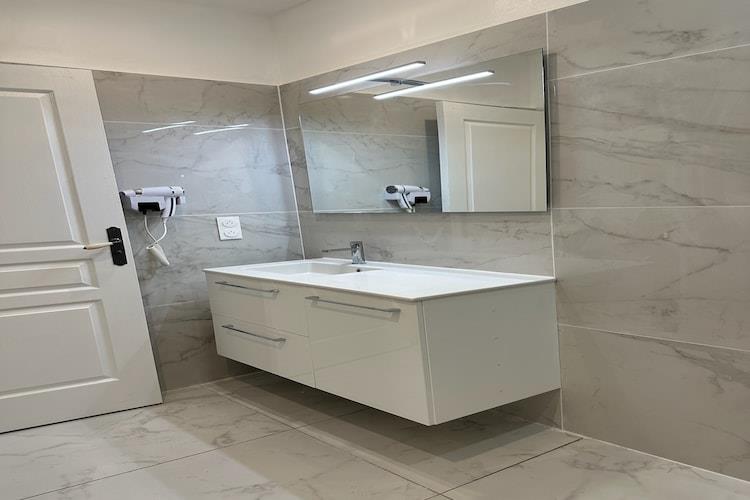 Indgang (klimaanlæg, elevator), sofastue(Fjernsyn, klimaanlæg, barnestol), Køkken(komfur(glaskeramisk), ovn, mikrobølgeovn, opvaskemaskine , køle-fryseskab, tørretumbler, vaskemaskine), Stue/soveværelse(dobbeltsovesofa, balkon, barneseng), soveværelse(king size-seng, Fjernsyn, balkon, varme), soveværelse(dobbeltseng eller 2 enkeltsenge Senge, klimaanlæg), badeværelse(badekar med bruser, håndvask, toilet)
