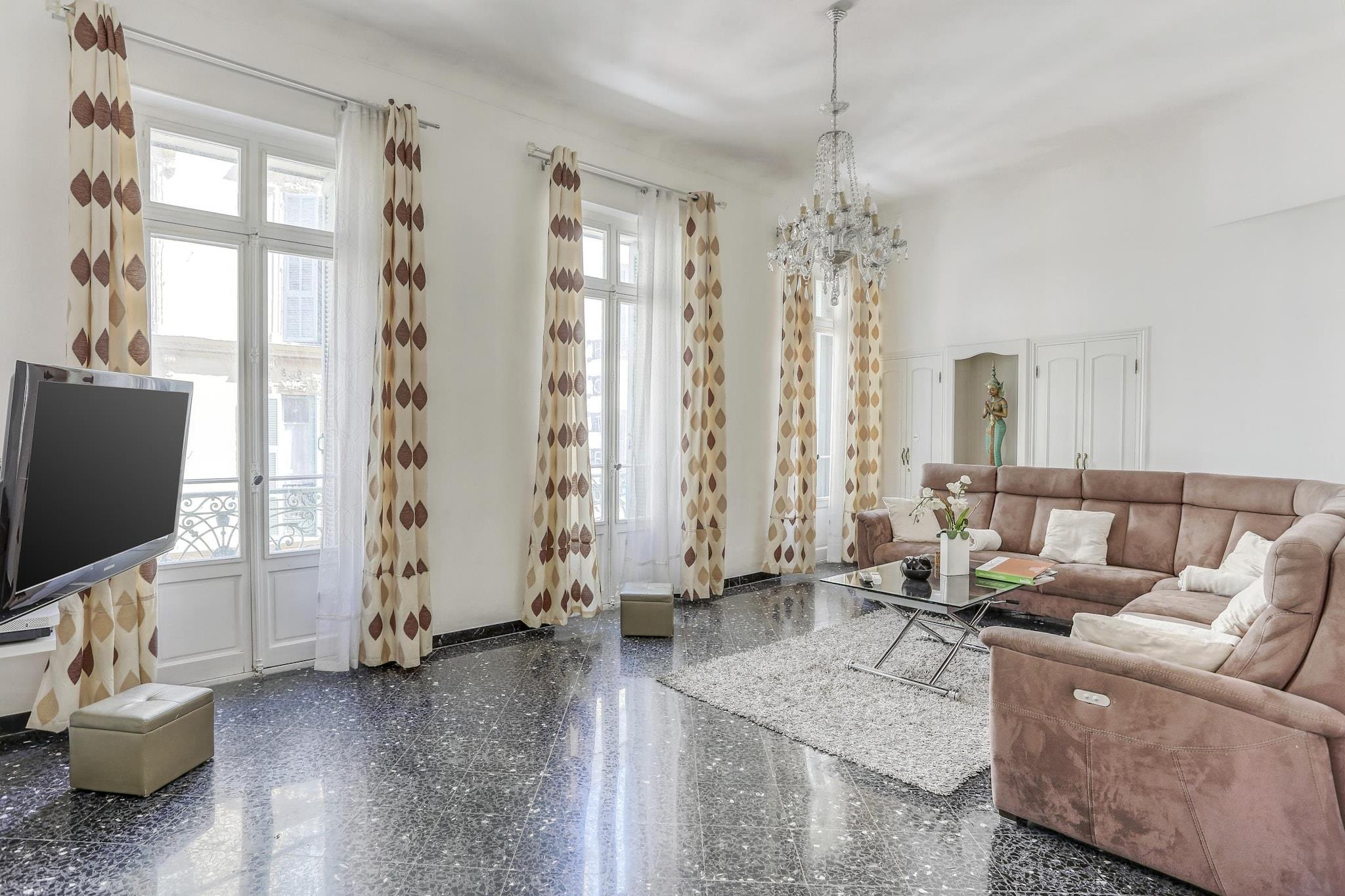 Rummelig lejlighed med aircondition i gåafstand fra stranden i Nice. Lejligheden er beliggende i centrum af Nice, omgivet af en række attraktioner. Vieux Nice er den gamle bydel og også det kæmpende hjerte af denne badeby. Smukke kirker, smalle gader med butikker og restauranter, pladser med springvand og terrasser, vil du finde alt her. I lejligheden, som ligger på anden sal i en elegant bygning, med en rummelig stue med sofa (sovesofa til 2 personer) og flad. Der er 2 soveværelser og et badeværelse. Ideelt set dette sted at nyde stranden og kultur. En dag Italien: Du er så med tog.