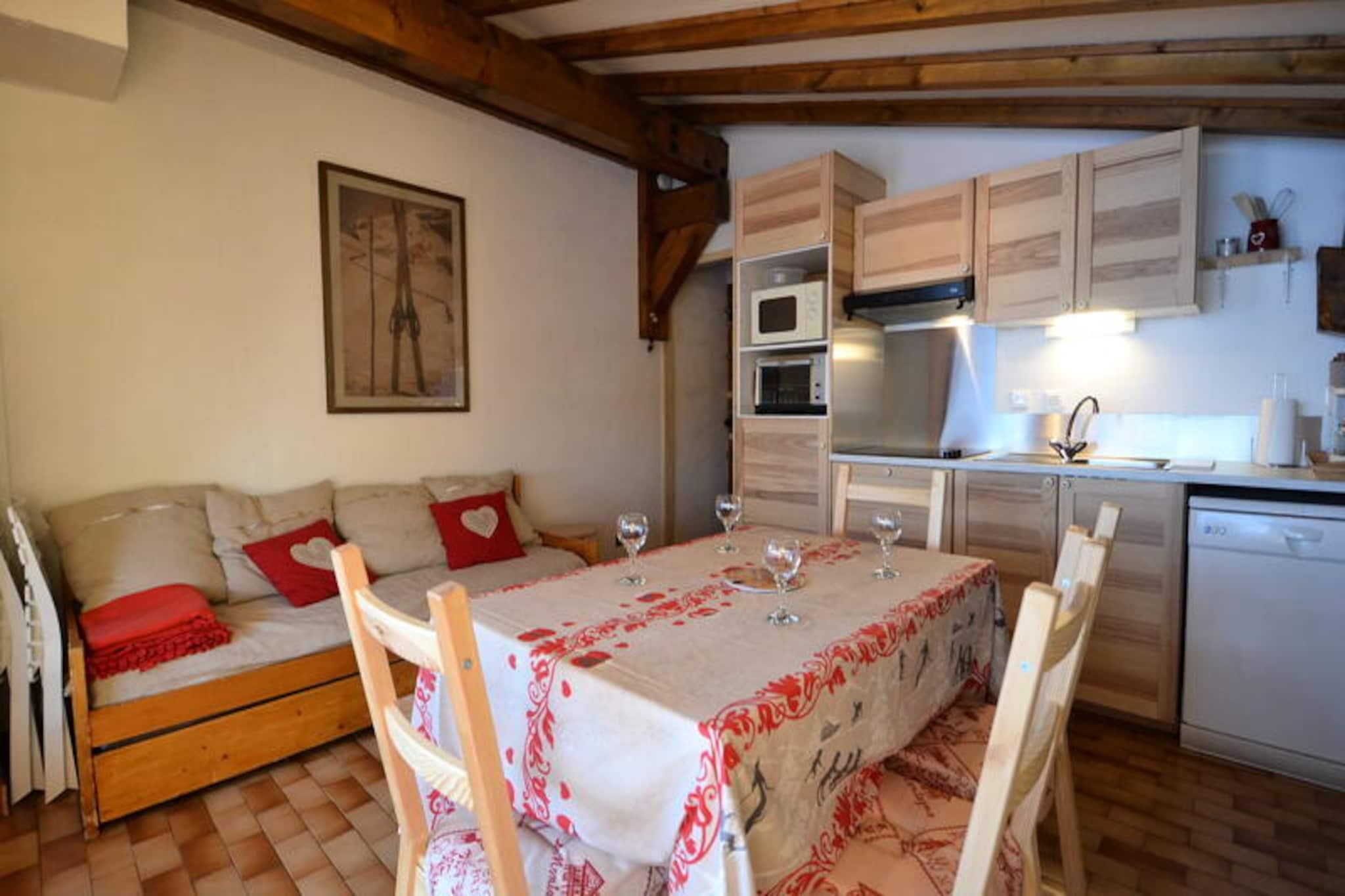 I de franske alpers fredfyldte omfavnelse tilbyder denne charmerende toværelseslejlighed i La Béguette-residensen et hyggeligt tilflugtssted for op til fem gæster. Med sin sydvendte balkon med udsigt over de uberørte pister i skiområdet Espace Diamant er denne ejendom et paradis for sneentusiaster, der søger både eventyr og afslapning. Den nærliggende autentiske landsby Notre Dame de Bellecombe, kun 3,5 km væk, tilføjer et strejf af Savoyard-charme til din alpine ferie. Om vinteren kan du nyde bekvemmeligheden af ??frisk brød og en snackbar på stedet, hvilket gør dine morgener ubesværede, inden du begiver dig ud på pisterne. Lejlighedens varme interiør har synlige bjælker, der udstråler rustik charme. Stuen, der er udstyret med et fladskærms-tv og et åbent køkken, er perfekt til at samles efter en dag på ski. Køkkenet er fuldt udstyret med moderne bekvemmeligheder, herunder keramiske kogeplader, en miniovn, et køleskab, en mikrobølgeovn og en opvaskemaskine. Sovearrangementerne er omhyggeligt designet med et hyggeligt dobbeltværelse, en alkove med køjesenge og en stue med en sovesofa og udtræksseng, hvilket sikrer komfort for alle gæster. Yderligere bekvemmeligheder inkluderer et skirum, privat udendørs parkering og Wi-Fi med Orange TV. Kæledyr er velkomne, hvilket gør det til et perfekt valg for familier. Ud over lejligheden venter skiområdet Espace Diamant med 192 km pister, der forbinder seks maleriske landsbyer. Fra begyndere til erfarne skiløbere tilbyder denne region noget for enhver smag. Om sommeren forvandles landskabet til et paradis for vandrere og mountainbikere med stier, der fører til en betagende udsigt over Mont Blanc. Mont Rond-stoleliften, der ligger kun en kort afstand væk, giver nem adgang til alpine udsigter. For en forandring af tempoet tilbyder den nærliggende Flumet-sø og fritidscenter, kun 7 km væk, en forfriskende flugt for familier. Uanset om du er tiltrukket af spændingen ved vintersport, roen i alpine somre eller charmen ved en autentisk Savoyard-landsby, er denne lejlighed på La Béguette-residensen din port til uforglemmelige bjergeventyr.