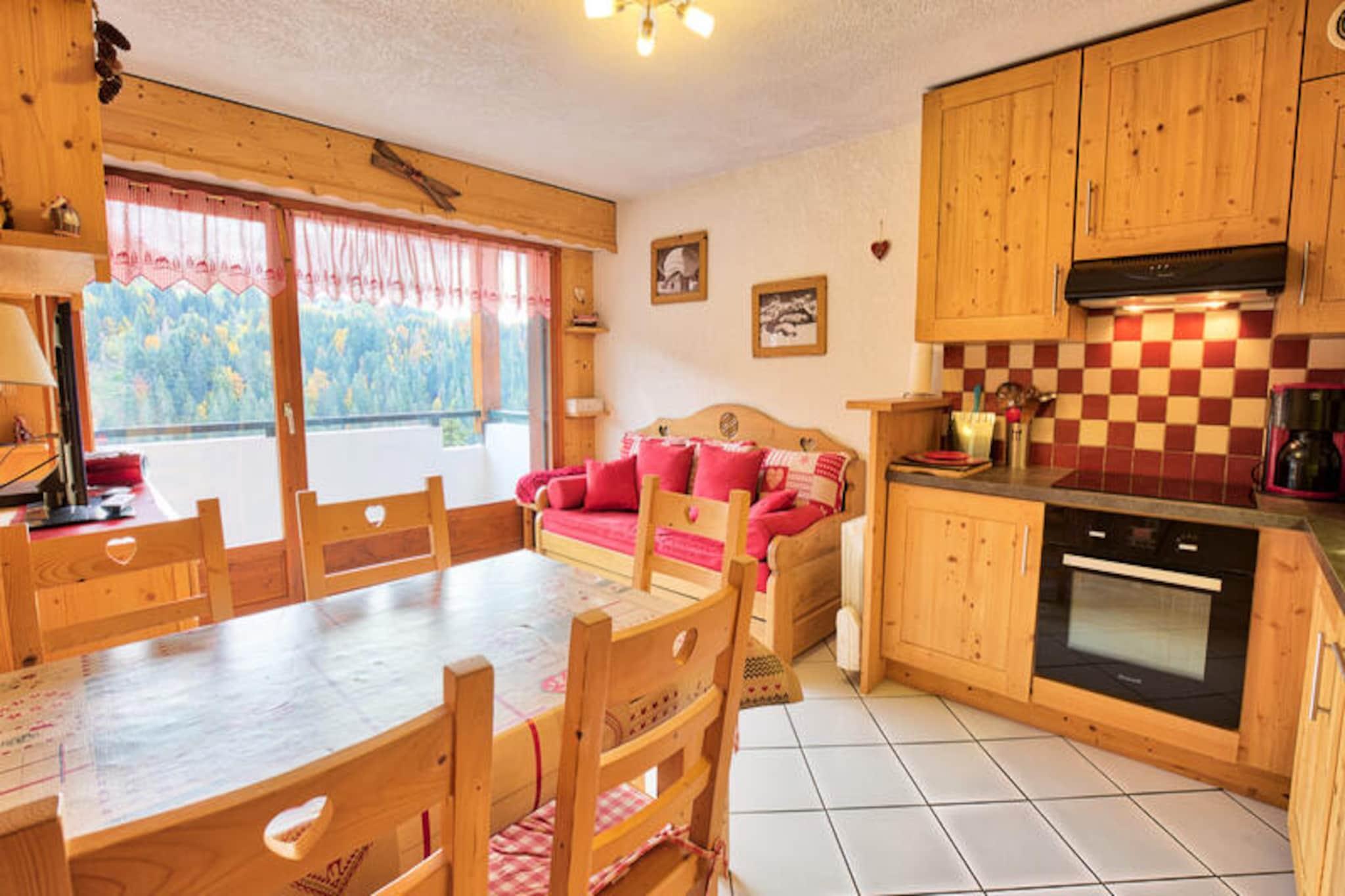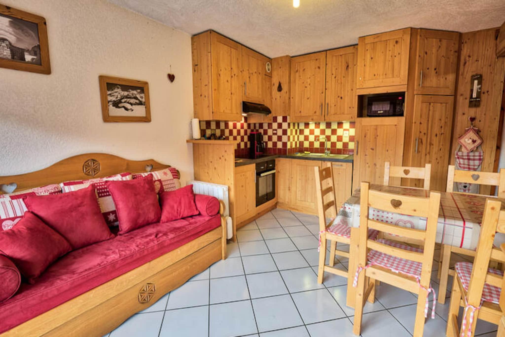 I hjertet af de fortryllende franske alper tilbyder denne charmerende lejlighed i Les Balcons du Charvin et idyllisk tilflugtssted for bjergelskere. Beliggende i den maleriske landsby Notre Dame de Bellecombe kombinerer denne bolig roen i alpelivet med nem adgang til eventyr. Fra din sydvendte balkon kan du nyde den betagende udsigt over Mont Charvin og den fredfyldte dal nedenfor, en perfekt kulisse for din morgenkaffe eller aftenafslapning. Landsbyens autentiske savoyard-charme og venlige atmosfære sætter tonen for et uforglemmeligt ophold. Den 42 m² store lejlighed er designet til at rumme op til otte gæster og kan prale af en varm indretning i bjergstil og faciliteter af høj kvalitet. Stuen har et fladskærms-tv, dvd-afspiller og en komfortabel sovesofa, mens det åbne køkken er fuldt udstyret med keramisk kogeplade, ovn, mikrobølgeovn, opvaskemaskine og endda en vaskemaskine/tørretumbler for ekstra bekvemmelighed. Sovepladserne omfatter to hyggelige soveværelser og en sovealkove, hvilket sikrer komfort og privatliv for familier eller vennegrupper. Et moderne badeværelse med bruser og et separat toilet fuldender planløsningen, mens den private overdækkede parkeringsplads og skiboks gør dit ophold problemfrit. Kæledyr er også velkomne, så ingen familiemedlemmer lades i stikken. Denne lejlighed ligger kun 600 meter fra skiområdet Espace Diamant og skiskolen og er en indgangsport til 192 km sammenhængende pister, der strækker sig over seks maleriske resorts. Om vinteren stopper en skibus kun 100 meter væk, hvilket gør det nemt at komme til pisterne. Om sommeren forvandler området til et paradis for vandrere og mountainbikere, med stier, der starter lige uden for døren. Den nærliggende Mont Rond-stolelift tilbyder panoramaudsigt over Mont Blanc, mens Flumet-søen, kun 4 km væk, er perfekt til familieudflugter. Til dagsture ligger ikoniske destinationer som Megève, Chamonix og Annecy mindre end en times kørsel væk og tilbyder kulturelle, gastronomiske og sportslige oplevelser. Uanset om du søger spændende alpine eventyr eller fredelige øjeblikke omgivet af natur, er denne lejlighed din perfekte base. Book dit ophold og skab minder, der vil vare hele livet.