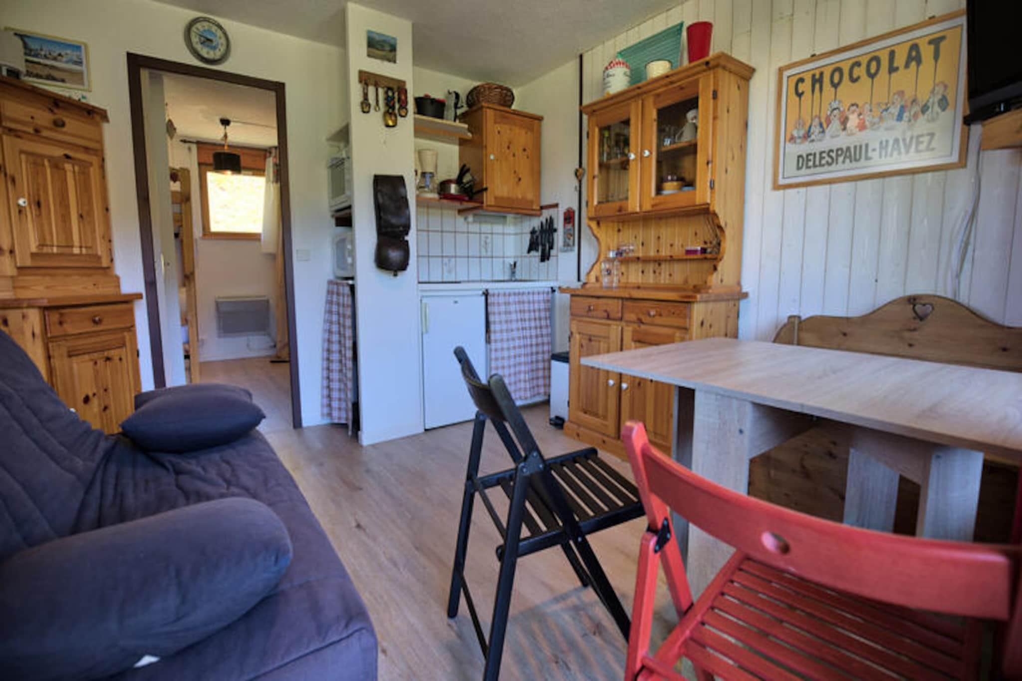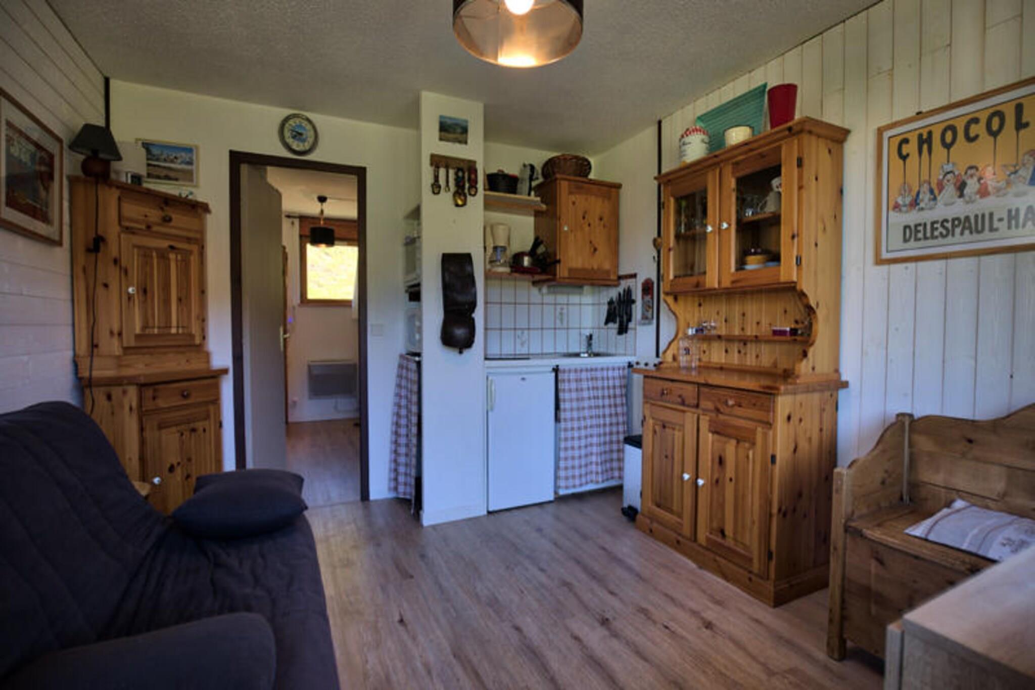 Midt i den fredfyldte alpine skønhed i Notre Dame de Bellecombe tilbyder dette charmerende studie et dejligt tilflugtssted for op til fire gæster. Forestil dig at vågne op til den betagende udsigt over Mont Charvin og dalen fra din sydvestvendte terrasse, mens du soler dig i det varme sollys, der pryder dette fredelige hjørne af Alperne. Uanset om du søger et vintereventyrland eller en sommerflugt, lover denne ejendom en uforglemmelig oplevelse omgivet af naturens pragt. \n\nIndenfor er studiet omhyggeligt designet til at kombinere komfort og praktisk anvendelighed. Stuen har en hyggelig sovesofa og et tv til afslappende aftener, mens alkoven har køjesenge, der er perfekte til familier eller venner. Det åbne køkken er udstyret med moderne bekvemmeligheder, herunder en miniovn, mikrobølgeovn, køleskab og opvaskemaskine, hvilket sikrer, at du har alt, hvad du behøver for at tilberede måltider efter en dag med eventyr. Badeværelset har bruser og vaskemaskine, med et separat toilet for ekstra bekvemmelighed. Et privat skirum og overdækket parkeringsplads bidrager til dit opholds bekvemmelighed. \n\nOm vinteren tilbyder den gratis skibus, der ligger kun 300 meter væk, hurtig adgang til skiområdet Espace Diamant med dets 192 km pister, der henvender sig til alle niveauer. Den nærliggende Mont Rond og landsbyens centrum ligger kun 2 km væk, hvilket gør det nemt at udforske charmen ved Notre Dame de Bellecombe og de omkringliggende landsbyer. Sommeren byder på uendelige muligheder for vandreture og mountainbiking, med stier, der fører til panoramaudsigt over Mont Blanc. Den nærliggende Flumet-sø, kun 6 km væk, tilføjer et forfriskende præg til dine alpine eventyr. \n\nMed sin indretning i bjergstil, fremragende soleksponering og nærhed til ikoniske destinationer som Megève, Chamonix og Annecy er dette studie den perfekte base for at udforske Alperne. Uanset om du er her for at stå på ski, vandre eller blot nyde roen, tilbyder denne ejendom et varmt og indbydende paradis til din alpine ferie.