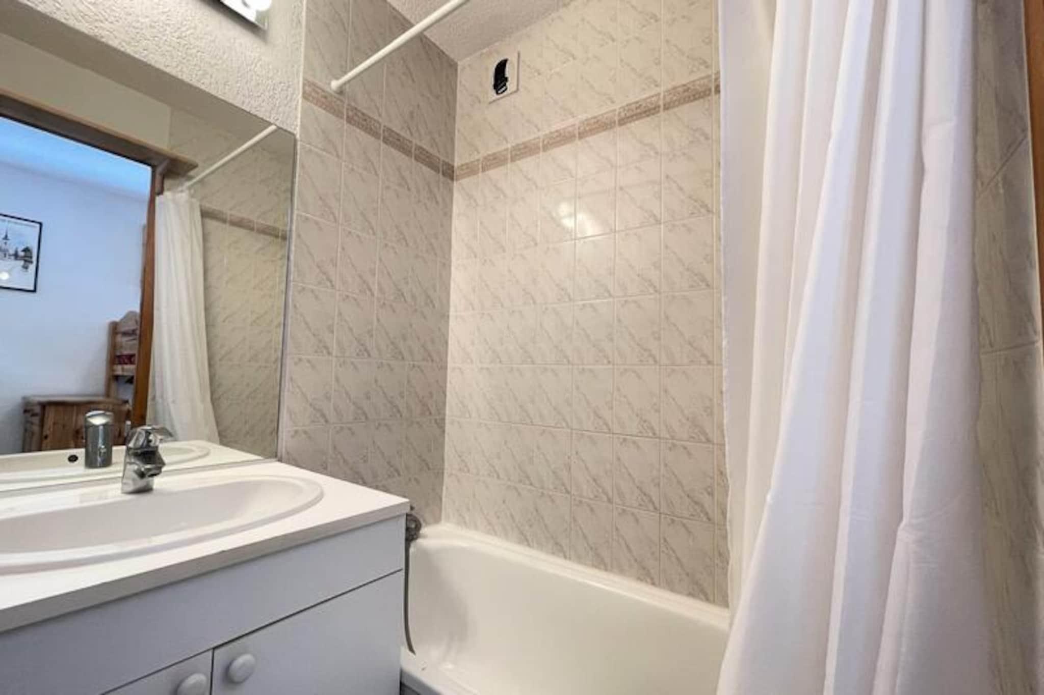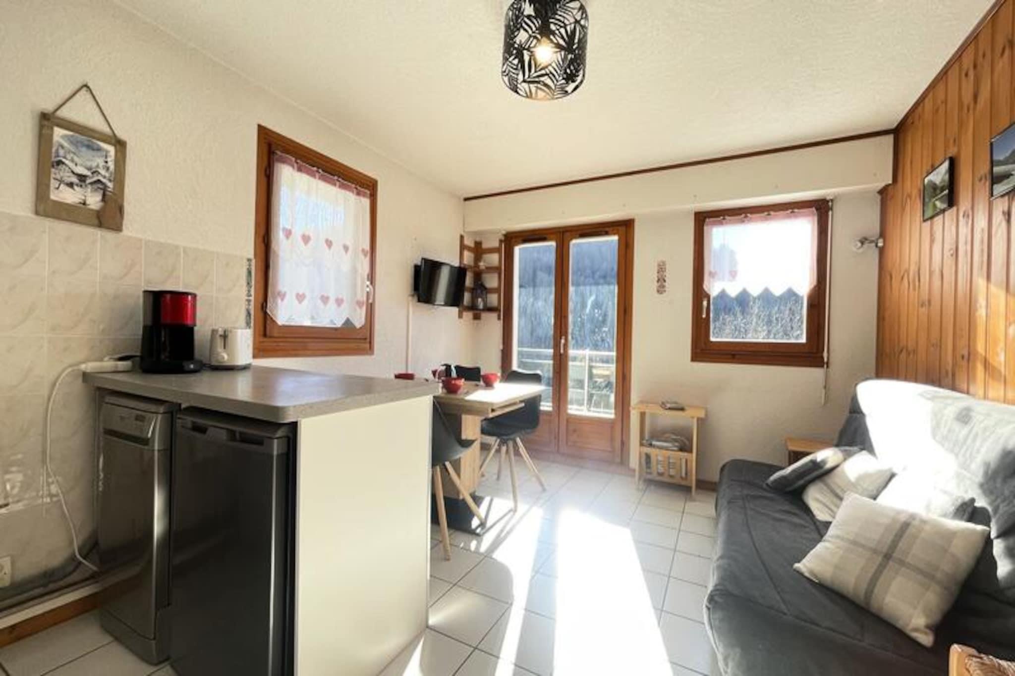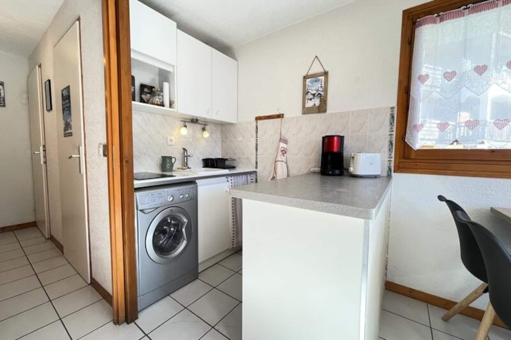 I den fortryllende landsby Notre Dame de Bellecombe, hvor charmen ved de franske alper vækkes til live, tilbyder denne hyggelige lejlighed i stueetagen et roligt tilflugtssted med en betagende udsigt over Mont Charvin og den omkringliggende dal. Forestil dig at vågne op til den friske alpeluft, træde ud på din sydvendte balkon og nyde bjergenes rolige skønhed. Uanset om du er her for de snedækkede pister eller de frodige sommerstier, er denne lejlighed din port til uforglemmelige eventyr. Den 35 m² store lejlighed er designet til komfort og funktionalitet og har plads til op til fire gæster. Det åbne køkken og opholdsstue er udstyret med moderne bekvemmeligheder, herunder keramisk kogeplade, kombineret mikrobølgeovn/ovn, køleskab/fryser, opvaskemaskine og endda en vaskemaskine. Slap af i den hyggelige stue med et fladskærms-tv, eller slap af i soveværelset med en dobbeltseng, en alkove med to enkeltkøjesenge og en sovesofa i opholdsstuen. Badeværelset har et badekar, og der er et separat toilet for ekstra bekvemmelighed. Der er også et skiskab til dit vinterudstyr. Beliggende kun 400 meter fra butikker og restauranter og 600 meter fra skiområdet Espace Diamant, er alt hvad du behøver inden for gåafstand. Skibussen stopper kun 100 meter væk, hvilket gør det nemt at komme til de 192 km sammenhængende pister, der strækker sig over seks charmerende alpine resorts. Om sommeren kan du udforske de nærliggende vandre- og mountainbike-ruter, eller tage Mont Rond-stoleliften for at nyde panoramaudsigten over Mont Blanc. For familiesjov ligger Flumet-søen kun 4 km væk, der tilbyder en forfriskende tilflugtssted. Uanset om du søger spændende skidage, fredelige vandreture eller blot et hyggeligt alpint tilflugtssted, lover denne lejlighed i Notre Dame de Bellecombe et mindeværdigt ophold i hjertet af de franske alper.