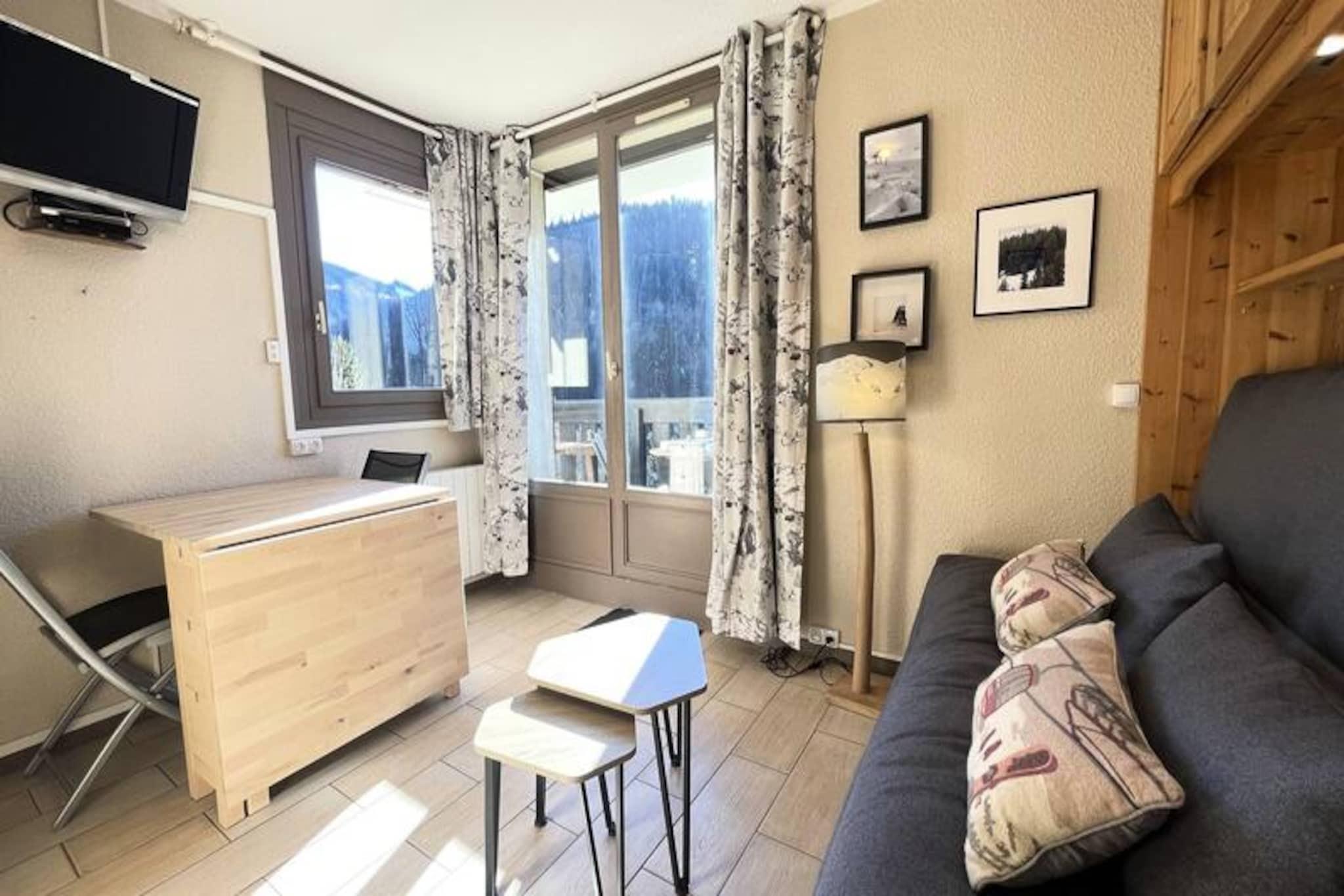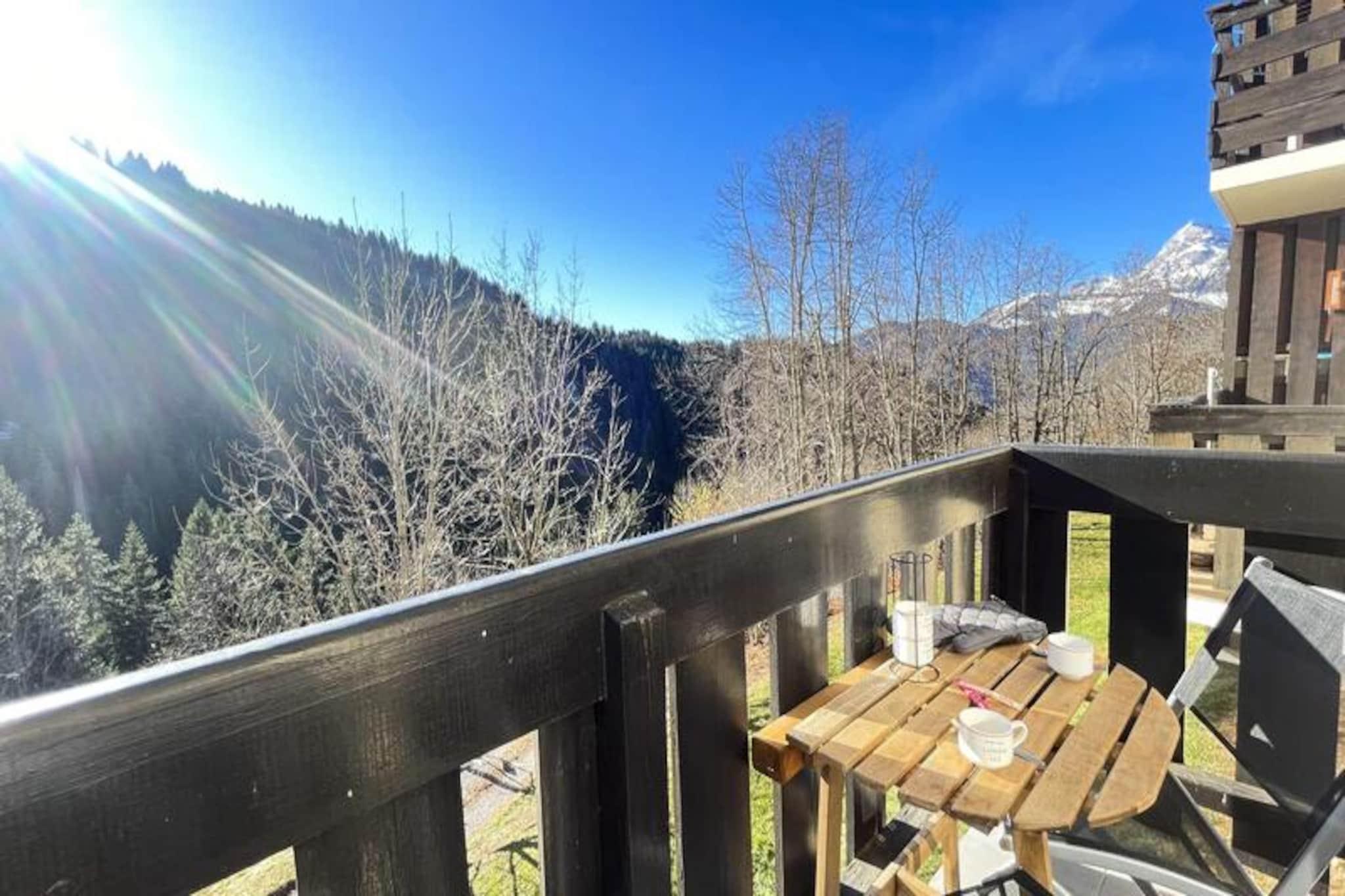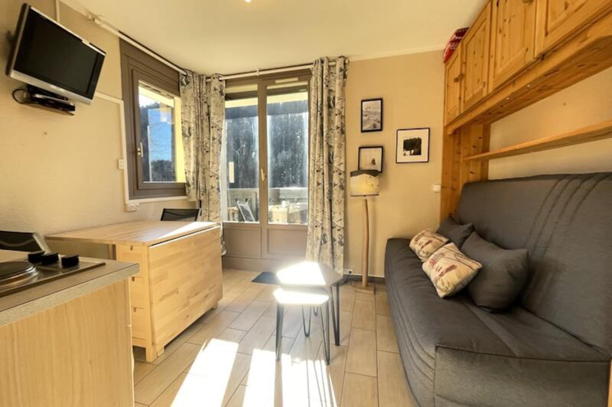 Midt i de franske alpers betagende skønhed tilbyder dette charmerende studie i Les Adrelles-residensen et roligt tilflugtssted i den maleriske landsby Notre Dame de Bellecombe. Med udsigt over Mont Charvin og dalen er denne hyggelige indkvartering perfekt til par eller små familier, der søger en rolig bjergferie. Kun 400 meter fra lokale butikker og faciliteter og 600 meter fra Espace Diamant-skiløjperne finder du dig selv fordybet i hjertet af alpint eventyr og Savoyard-charme. \n\nIndenfor er studiet omhyggeligt designet til komfort og bekvemmelighed. Stuen har et tv og en dobbelt sovesofa, mens alkoven har køjesenge, hvilket gør den ideel til op til fire gæster. Det åbne køkken er udstyret med moderne apparater, herunder mikrobølgeovn, ovn og Dolce Gusto-kaffemaskine, så du kan tilberede solide måltider efter en dag med udforskning. En solrig balkon inviterer dig til at slappe af og nyde den fantastiske udsigt over bjergene, mens skiboksen og den private udendørs parkering gør dit ophold praktisk.\n\nNotre Dame de Bellecombe er en perle i Val d'Arly-bjergkæden og tilbyder direkte adgang til skiområdet Espace Diamant med 192 km pister, der forbinder seks charmerende landsbyresorts. Om sommeren forvandles regionen til et paradis for vandrere og mountainbikere med stier, der fører til betagende udsigter over Mont Blanc. Den nærliggende Flumet-sø, kun 4 km væk, giver muligheder for svømning og familiesjov.\n\nUanset om du står på ski om vinteren eller udforsker alpine løjper om sommeren, er dette studie din port til uforglemmelige øjeblikke i de franske alper. Dens fredelige beliggenhed kombineret med nærhed til store destinationer som Megève og Annecy gør det til et enestående valg til din næste ferie.