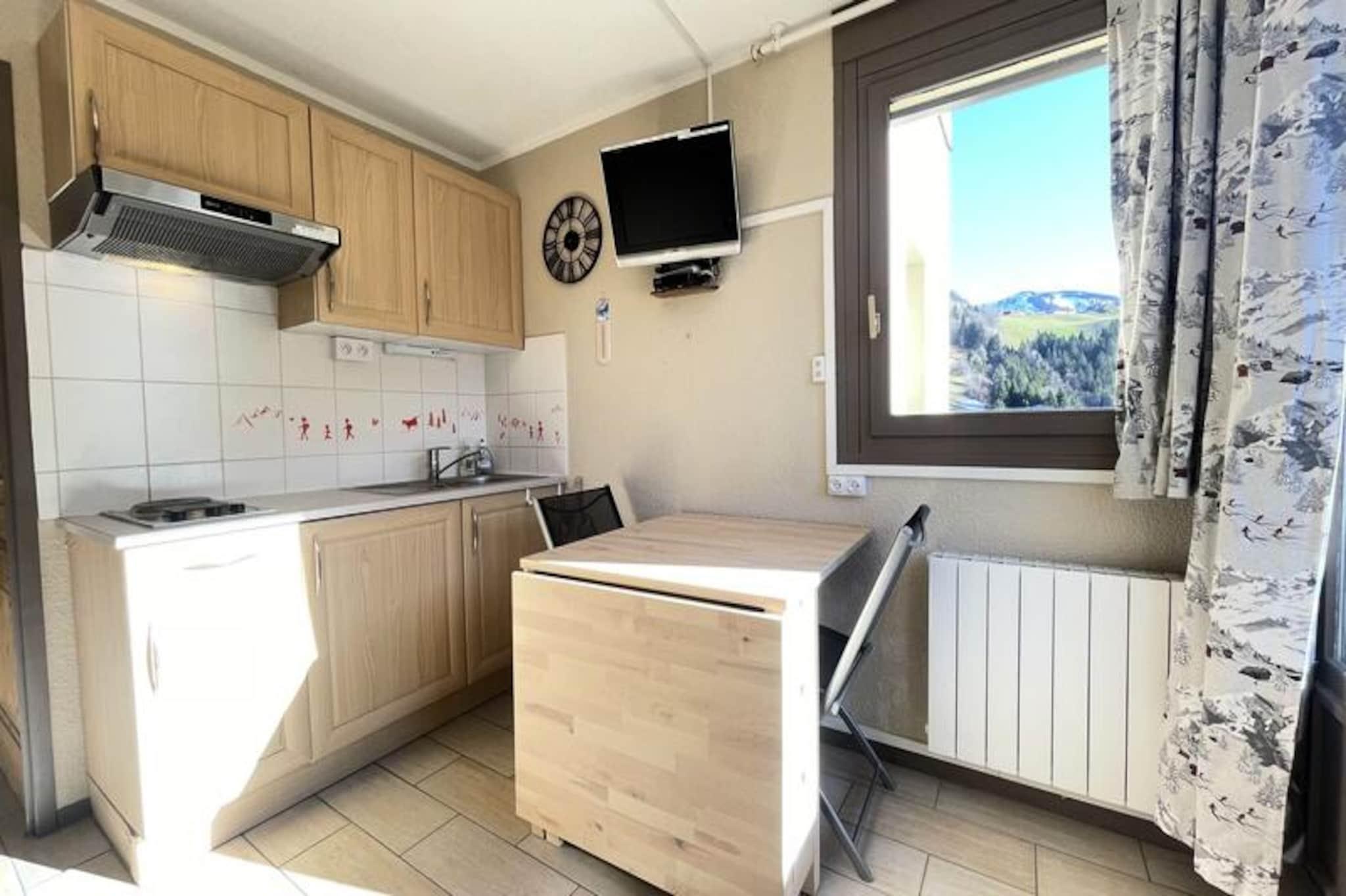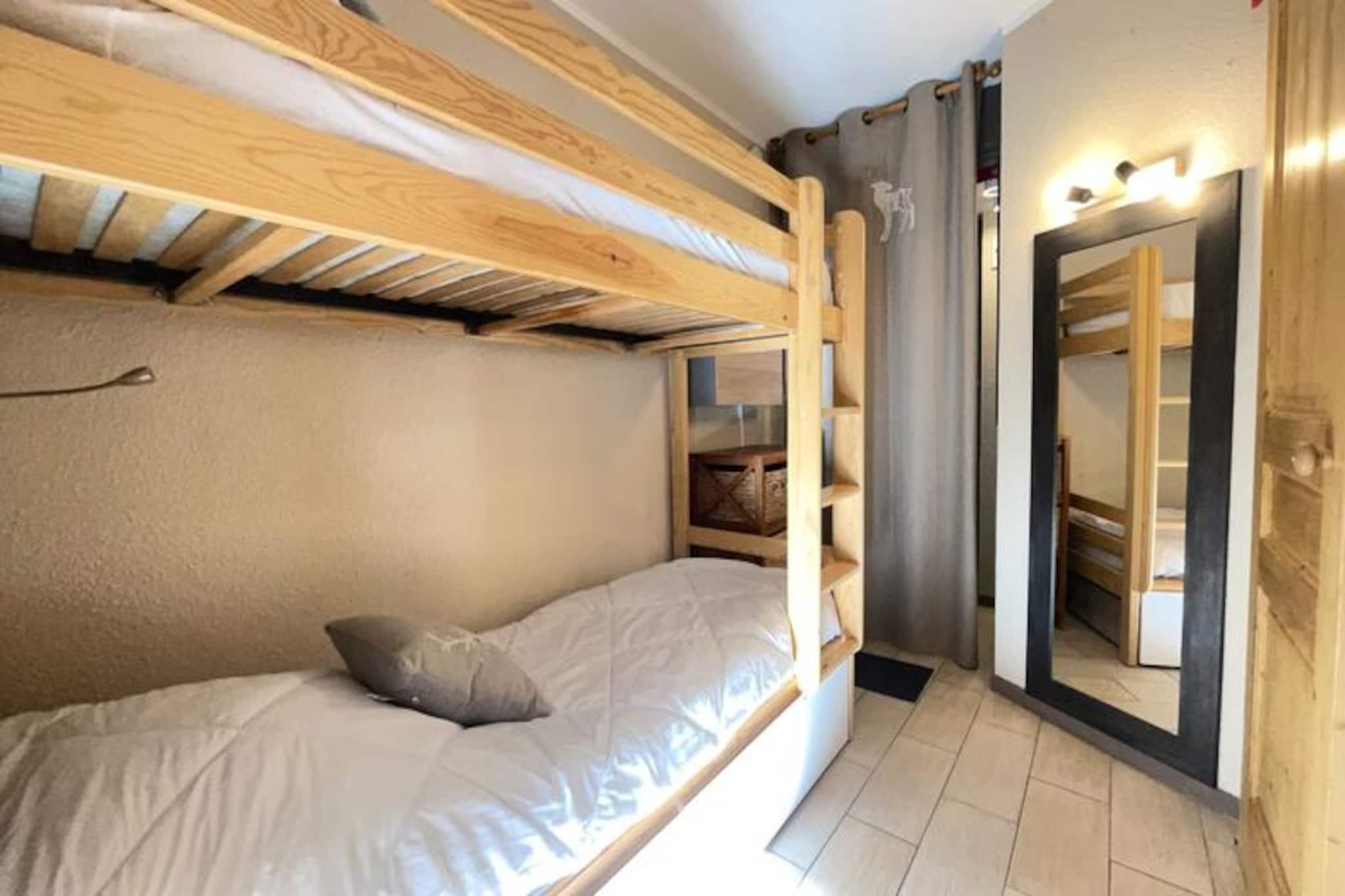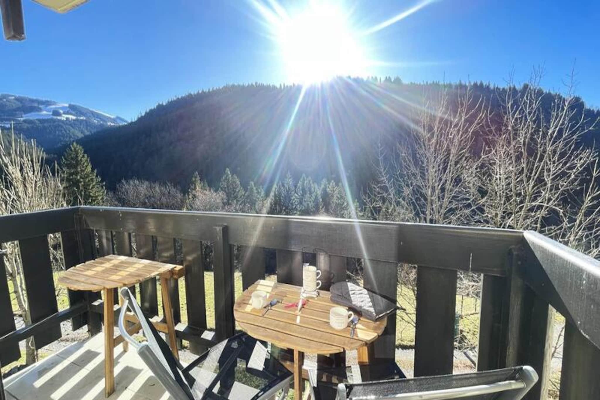 Midt i de franske alpers betagende skønhed tilbyder dette charmerende studie i Les Adrelles-residensen et roligt tilflugtssted i den maleriske landsby Notre Dame de Bellecombe. Med udsigt over Mont Charvin og dalen er denne hyggelige indkvartering perfekt til par eller små familier, der søger en rolig bjergferie. Kun 400 meter fra lokale butikker og faciliteter og 600 meter fra Espace Diamant-skiløjperne finder du dig selv fordybet i hjertet af alpint eventyr og Savoyard-charme. \n\nIndenfor er studiet omhyggeligt designet til komfort og bekvemmelighed. Stuen har et tv og en dobbelt sovesofa, mens alkoven har køjesenge, hvilket gør den ideel til op til fire gæster. Det åbne køkken er udstyret med moderne apparater, herunder mikrobølgeovn, ovn og Dolce Gusto-kaffemaskine, så du kan tilberede solide måltider efter en dag med udforskning. En solrig balkon inviterer dig til at slappe af og nyde den fantastiske udsigt over bjergene, mens skiboksen og den private udendørs parkering gør dit ophold praktisk.\n\nNotre Dame de Bellecombe er en perle i Val d'Arly-bjergkæden og tilbyder direkte adgang til skiområdet Espace Diamant med 192 km pister, der forbinder seks charmerende landsbyresorts. Om sommeren forvandles regionen til et paradis for vandrere og mountainbikere med stier, der fører til betagende udsigter over Mont Blanc. Den nærliggende Flumet-sø, kun 4 km væk, giver muligheder for svømning og familiesjov.\n\nUanset om du står på ski om vinteren eller udforsker alpine løjper om sommeren, er dette studie din port til uforglemmelige øjeblikke i de franske alper. Dens fredelige beliggenhed kombineret med nærhed til store destinationer som Megève og Annecy gør det til et enestående valg til din næste ferie.