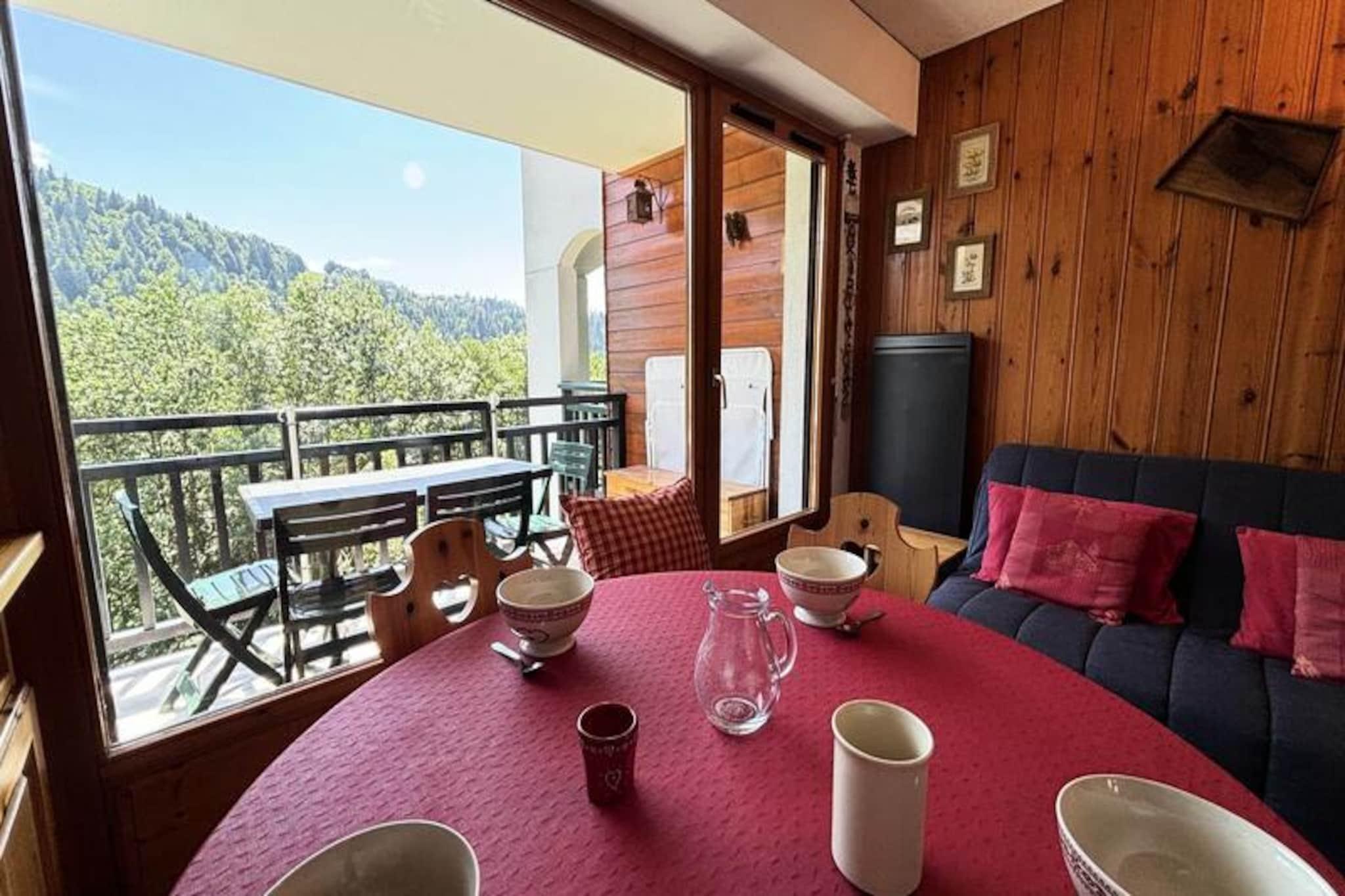 I hjertet af de franske alper, hvor charmen ved Notre Dame de Bellecombe møder storheden ved Mont Charvin, tilbyder denne indbydende lejlighed i stueetagen en rolig oase for både familier og par. Forestil dig at vågne op til dalens solbeskinnede panorama, nippe til kaffe på din sydvendte balkon og indånde den friske alpeluft, mens dagen udfolder sig. Her blandes ro problemfrit med eventyr og skaber de perfekte rammer for en uforglemmelig bjergferie. \n\nDenne funktionelle lejlighed på 26 m² er omhyggeligt designet for at sikre komfort og bekvemmelighed. Stuen, komplet med fladskærms-tv, åbner ind i et veludstyret køkken med induktionskogeplader, miniovn, mikrobølgeovn og køleskab. Sovepladserne inkluderer et hyggeligt soveværelse med en dobbeltseng, en alkove med enkeltkøjesenge og en sovesofa i stuen, hvilket gør den ideel til op til fem gæster. Badeværelset kan prale af et moderne brusebad og vaskemaskine, mens et separat toilet bidrager til det praktiske. Med dyner, et skiskab og privat overdækket parkering er hver eneste detalje tænkt over for at forbedre dit ophold. \n\nBeliggende kun 400 meter fra butikker og aktiviteter og 600 meter fra skisportsstedet Espace Diamant, placerer denne lejlighed dig i hjertet af alpine eventyr. En skibus stopper bekvemt 100 meter væk og tilbyder nem adgang til 192 km pister, der forbinder seks maleriske landsbyer. Om sommeren lokker vandrestier og mountainbike-ruter, mens Mont Rond-stoleliften åbner en betagende udsigt over Mont Blanc. For familiesjov ligger Flumet-søen kun 4 km væk. \n\nUanset om du udforsker nærliggende destinationer som Megève, Chamonix og Annecy, eller blot nyder den autentiske Savoyard-atmosfære i Notre Dame de Bellecombe, er denne lejlighed din port til det bedste af Alperne. Book nu for en ferie fyldt med natur, eventyr og afslapning.