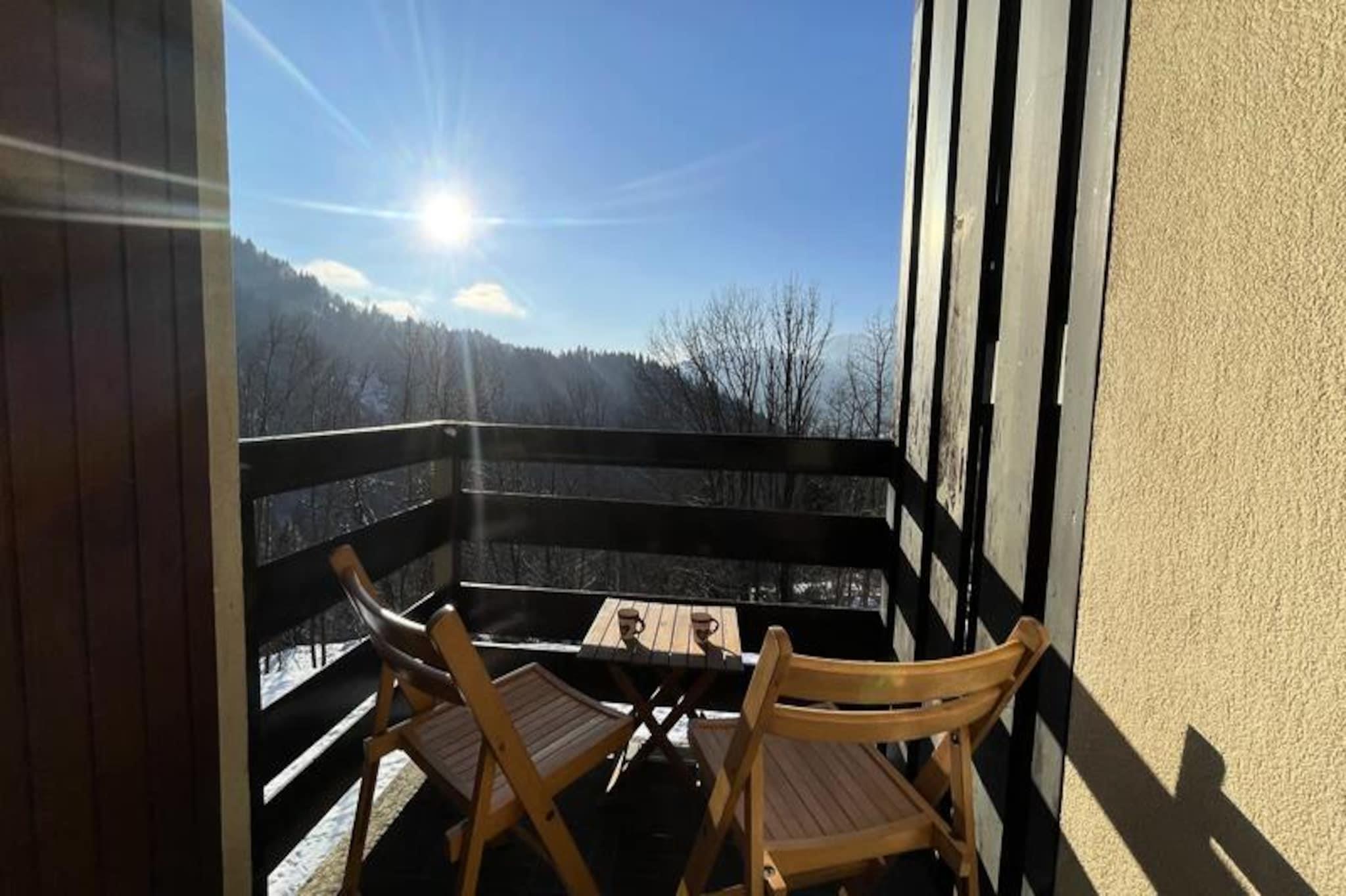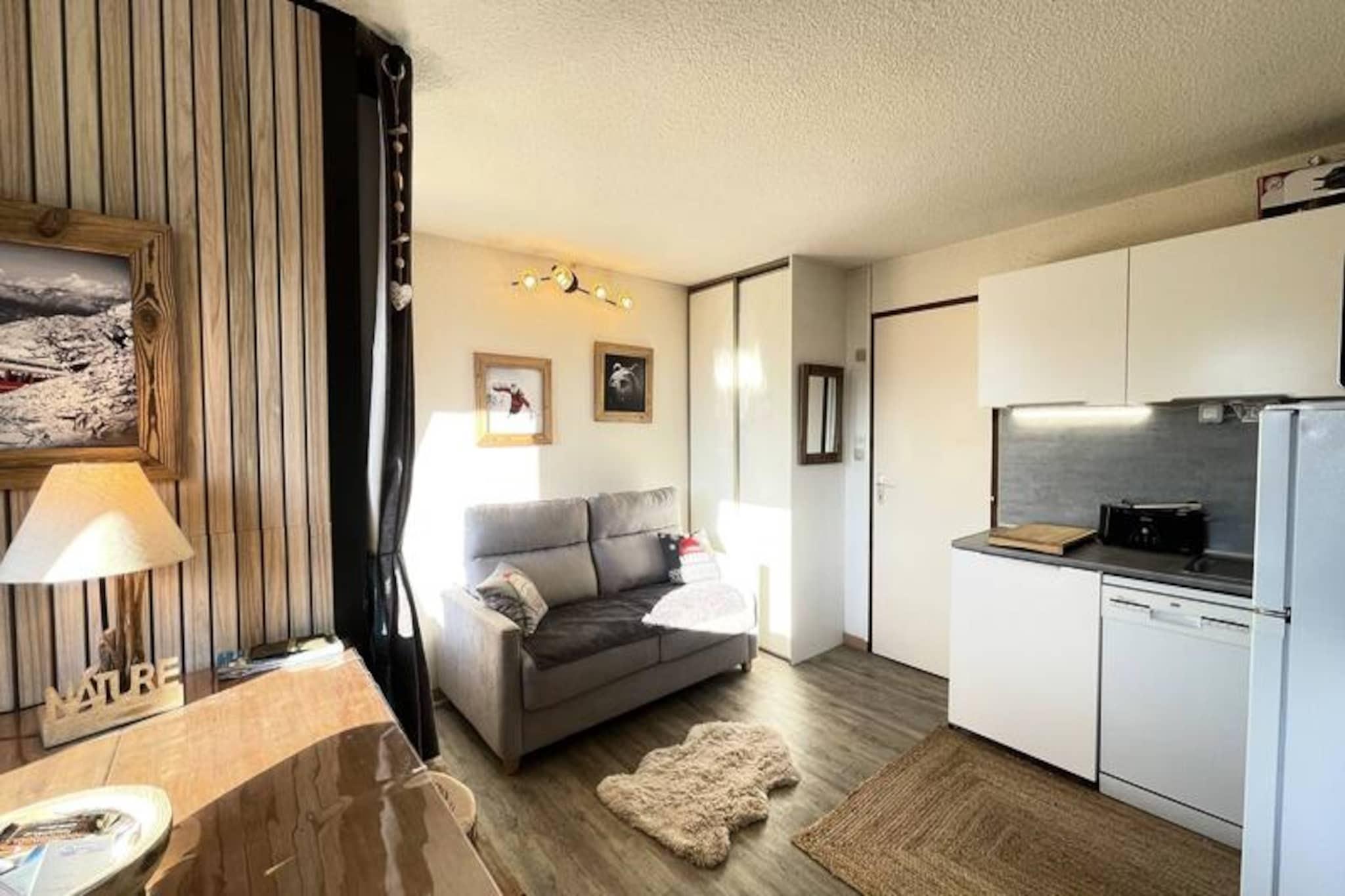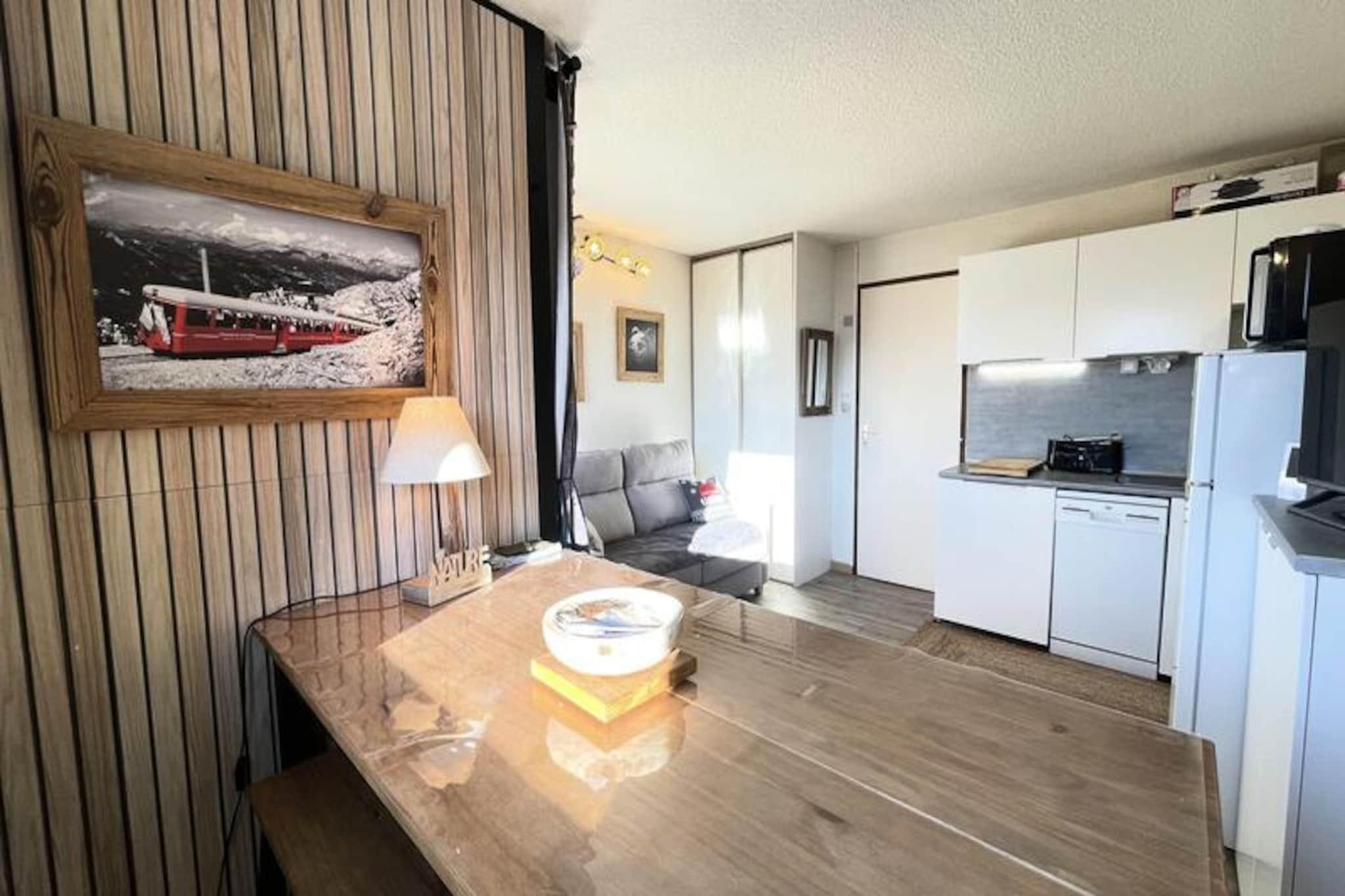 Vågn op til den fredfyldte skønhed ved Mont Charvin og den omkringliggende dal fra dette charmerende studie i Les Adrelles-residensen. Beliggende i hjertet af den maleriske Savoyard-landsby Notre-Dame-de-Bellecombe, tilbyder dette hyggelige tilflugtssted en perfekt blanding af ro og bekvemmelighed. Uanset om du planlægger en romantisk ferie eller en familieferie, tilbyder dette studie et varmt og indbydende rum til at skabe varige minder. Studiet har en lys stue med fjernsyn, et åbent køkken udstyret med køleskab, opvaskemaskine, mikrobølgeovn og induktionskogeplade, samt et soveområde med en dobbelt sovesofa og enkeltkøjesenge. Badeværelset har et badekar, og der er et separat toilet for ekstra komfort. Gå ud på den solrige balkon for at nyde den betagende udsigt over Mont Charvin, et perfekt sted at nyde din morgenkaffe eller slappe af efter en dag med eventyr. Yderligere faciliteter inkluderer et skirum, privat udendørs parkering og fredelige omgivelser, der sikrer afslappende nætter. Bare 400 meter fra lokale butikker og 600 meter fra Espace Diamant-skiløjperne er beliggenheden ideel til både vinter- og sommeraktiviteter. En gratis shuttlebus, der stopper kun 100 meter væk, forbinder dig med det nærliggende Crest-Voland og andre charmerende alpelandsbyer. Om sommeren kan du udforske de frodige vandrestier, mountainbikeruter og Mont Rond-stoleliften, som tilbyder en fantastisk udsigt over Mont Blanc. For en forfriskende dukkert ligger Flumet-søen kun 4 kilometer væk. Med sin autentiske charme, moderne faciliteter og nærhed til store alpine destinationer som Megève, Chamonix og Annecy er dette studie en sand perle. Uanset om du står på ski, vandrer eller blot nyder den alpine atmosfære, er dette den perfekte base for din bjergferie.