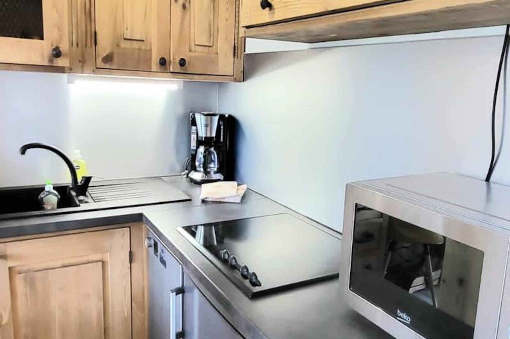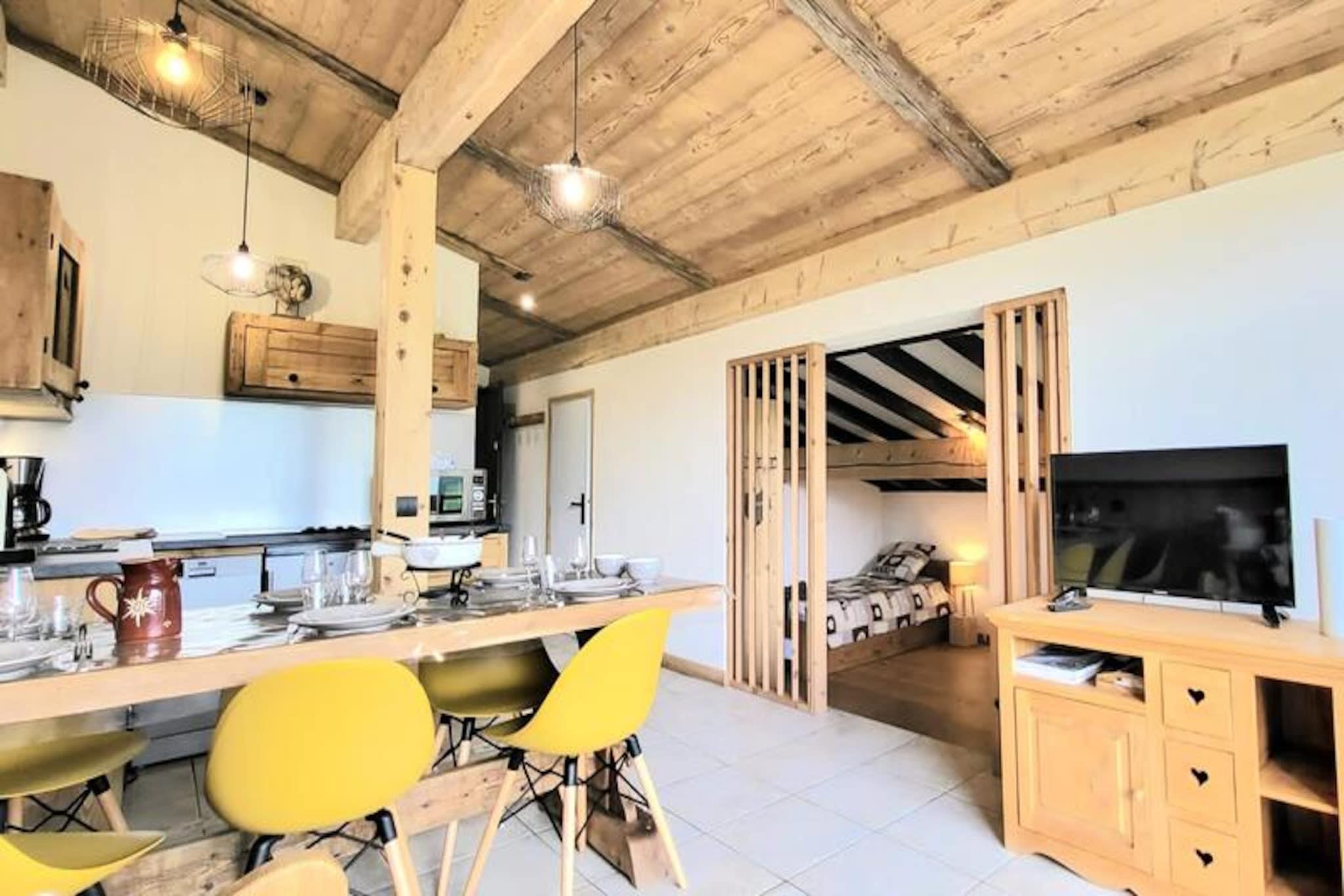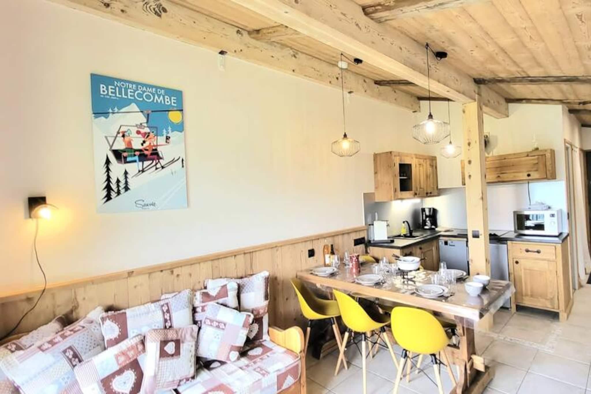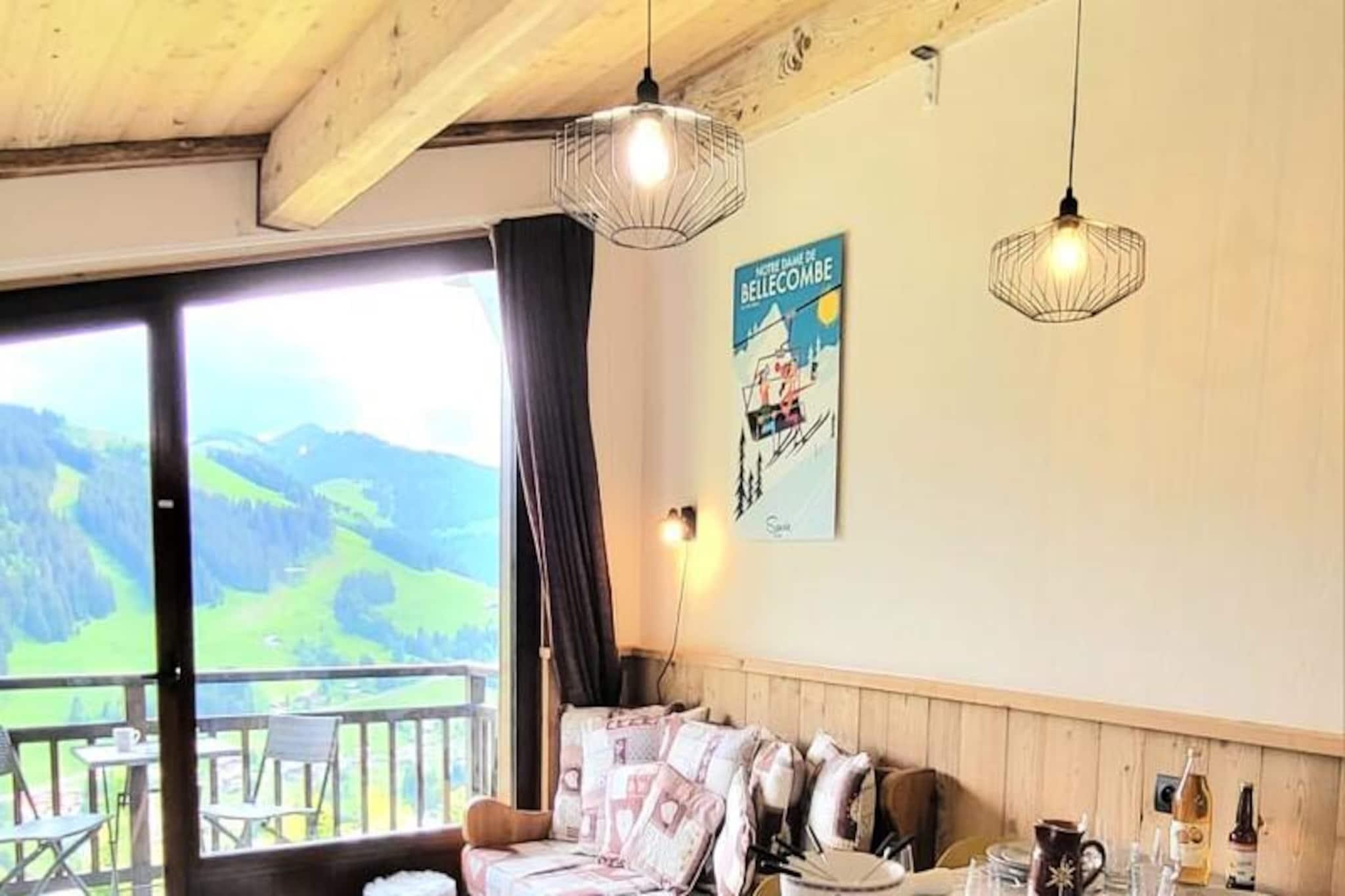 I den fredfyldte landsby Le Lachat, hvor solen pryder pisterne hele dagen lang, tilbyder denne charmerende lejlighed en perfekt alpin ferie. Beliggende ved foden af ??Lachat-forbindelsespisten, byder den på ægte ski-in/ski-out-adgang til det vidtstrakte Espace Diamant skiområde med sine 192 km sammenhængende pister, der svæver sig gennem maleriske landsbyer som Notre Dame de Bellecombe, Flumet og Les Saisies. Fra din private balkon kan du nyde den betagende udsigt over Mont Rond-massivet og dalen nedenfor – et panorama, der forandrer sig med årstiderne. Indenfor er den 50 m² store lejlighed omhyggeligt designet til at rumme op til seks gæster. Den åbne opholdsstue har en hyggelig stue med fladskærms-tv og et fuldt udstyret køkken med keramisk kogeplade, mikrobølgeovn, køleskab og opvaskemaskine. To indbydende soveværelser tilbyder fleksible sovemuligheder, herunder en dobbeltseng, to enkeltsenge og en udtræksseng, hvilket sikrer komfort for familier eller grupper. Det moderne badeværelse med bruser og separat toilet bidrager til bekvemmeligheden, mens et skirum og fri udendørs parkering fuldender de praktiske faciliteter. Ud over lejligheden er beliggenheden et paradis for friluftsentusiaster. Om vinteren tilbyder skiområdet Espace Diamant pister for alle niveauer, mens sommeren bringer vandre- og mountainbike-stier lige til døren. Mont Rond-stoleliften, der er åben to gange om ugen, giver adgang til panoramaudsigt over Mont Blanc, og den nærliggende Flumet-sø tilbyder et roligt tilflugtssted til svømning og picnics. Essentielle butikker, herunder et minimarked og et pizzeria, ligger kun 200 meter væk, og det charmerende landsbycentrum Notre Dame de Bellecombe ligger en kort køretur væk. Uanset om du søger spændende vintereventyr eller fredelige sommerferier, kombinerer denne lejlighed komfort, bekvemmelighed og en uovertruffen beliggenhed. Oplev magien i de franske alper med hver solopgang og solnedgang fra din solrige balkon.