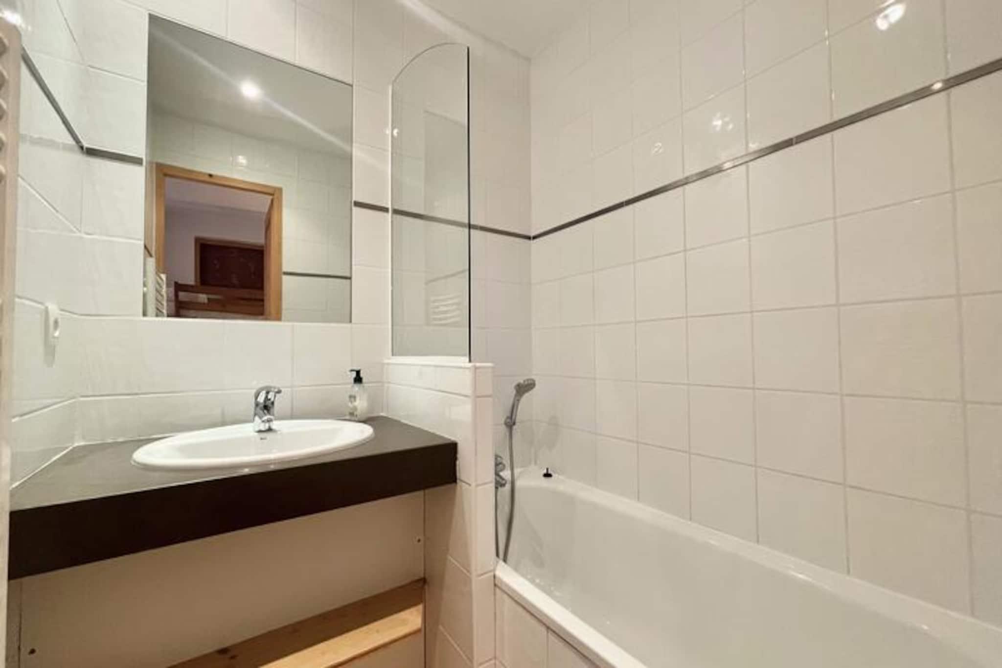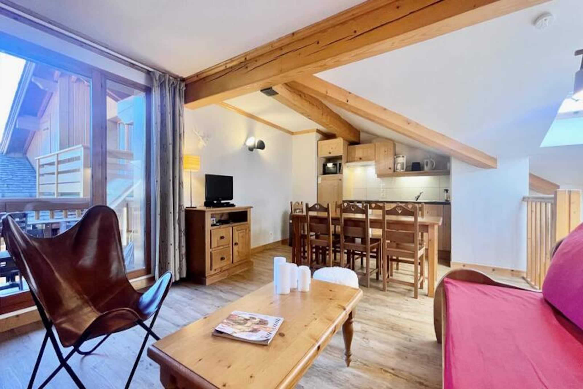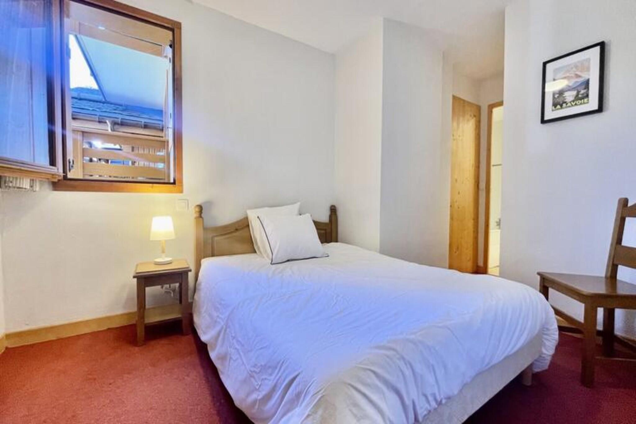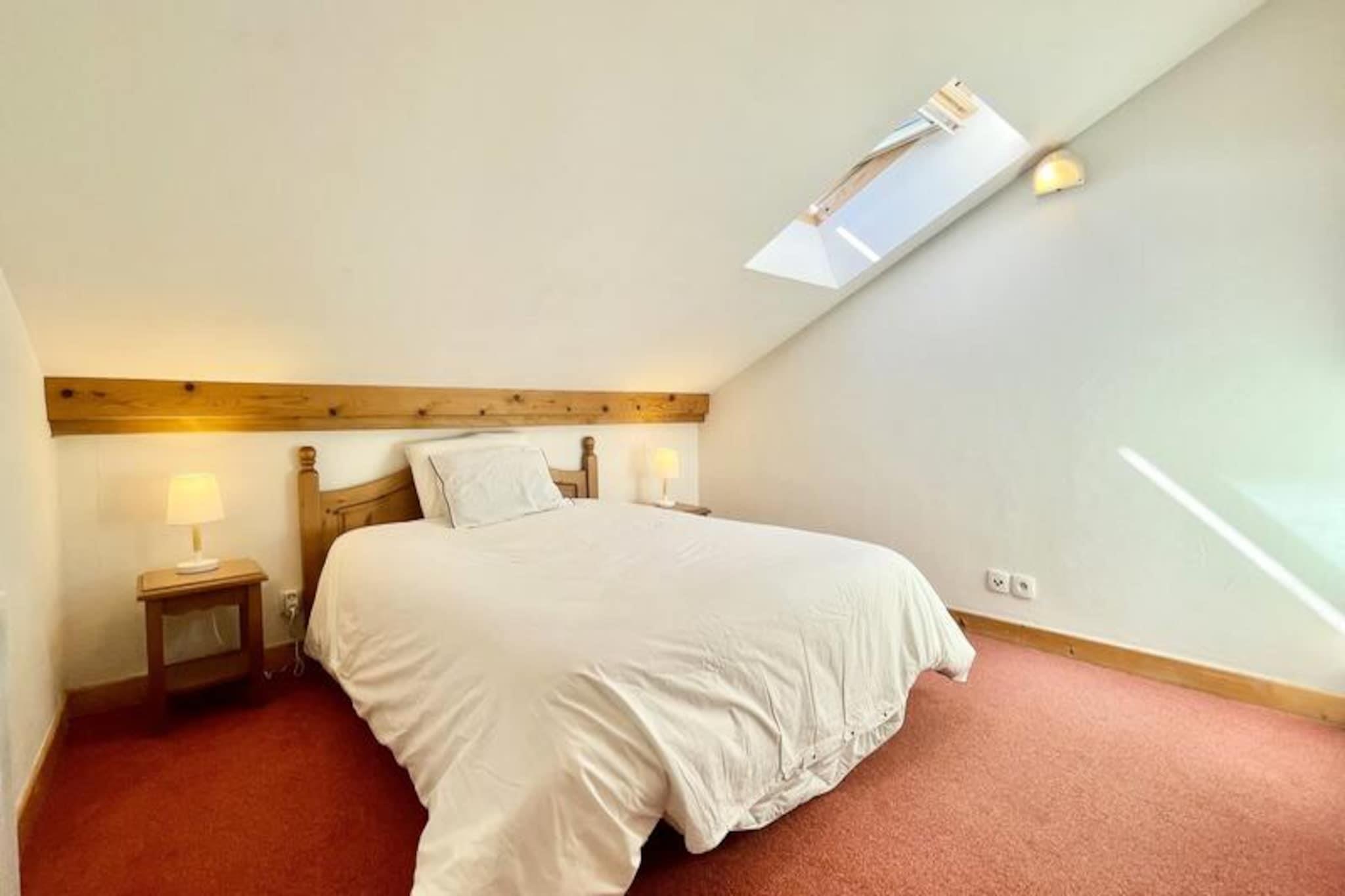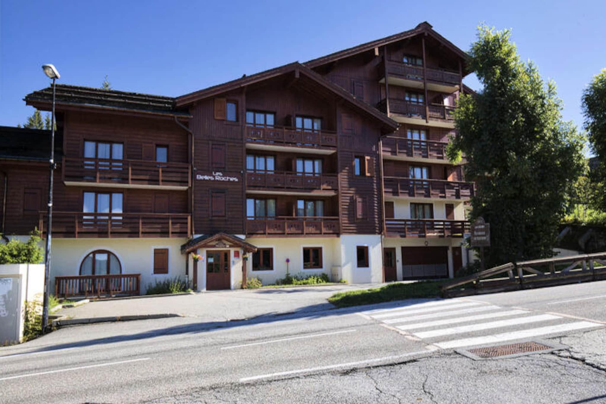 I hjertet af den maleriske landsby Notre Dame de Bellecombe tilbyder denne charmerende duplexlejlighed et roligt tilflugtssted omgivet af den majestætiske Aravis-bjergkæde. Perfekt beliggende i Les Belles Roches-residensen, kun få skridt fra lokale butikker, aktiviteter og det berømte skiområde Espace Diamant, der kan prale af 192 km sammenhængende pister på tværs af seks fortryllende resorts. Uanset om du er her for vintereventyr eller sommerferier, inviterer denne ejendom dig til at opleve den autentiske charme i de franske alper. \n\nLejligheden er designet til op til seks gæster og kombinerer moderne komfort med alpin elegance. På første sal finder du en indbydende entré, et soveværelse med eget badeværelse, dobbeltseng og gæstetoilet. Øverste etage har en hyggelig stue med fladskærms-tv og et åbent køkken udstyret med keramisk kogeplade, kombineret mikrobølgeovn, opvaskemaskine og køleskab. Yderligere sovepladser inkluderer et andet dobbeltværelse, en alkove med køjesenge og et andet badeværelse med separat toilet. Gæsterne kan også drage fordel af et skiskab, privat overdækket parkering og gratis WiFi. For ekstra afslapning kan du nyde gratis adgang til den indendørs swimmingpool, hvor en sauna kan fås som ekstraudstyr. \n\nUd over boligen tilbyder landsbyen aktiviteter året rundt. Om vinteren vil skientusiaster sætte pris på nærheden til pisterne og skiskolen, mens sommergæster kan udforske naturskønne vandrestier, mountainbikeruter og det nærliggende fritidscenter ved Flumet-søen, kun 4 km væk. Mont Rond-stoleliften, der er åben to gange om ugen, tilbyder en betagende panoramaudsigt over Mont Blanc. Familier vil elske de nærliggende tennisbaner og legepladsen, der ligger kun 200 meter væk. \n\nUanset om du søger alpine spændinger eller rolige øjeblikke, er denne lejlighed den perfekte base for at skabe uforglemmelige minder i hjertet af de franske alper. Med sin blanding af komfort, bekvemmelighed og fantastiske omgivelser lover den en ferieoplevelse som ingen anden.