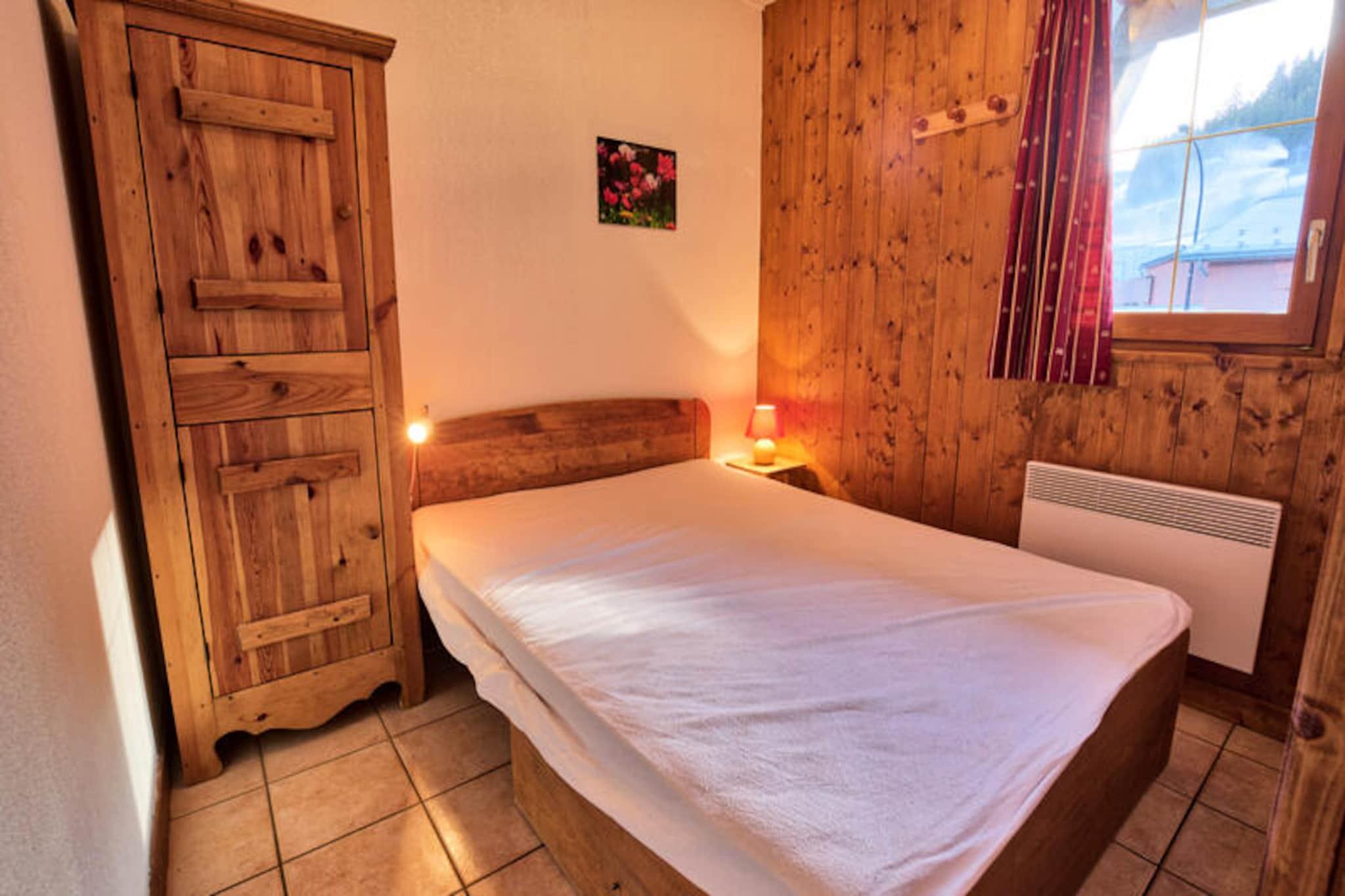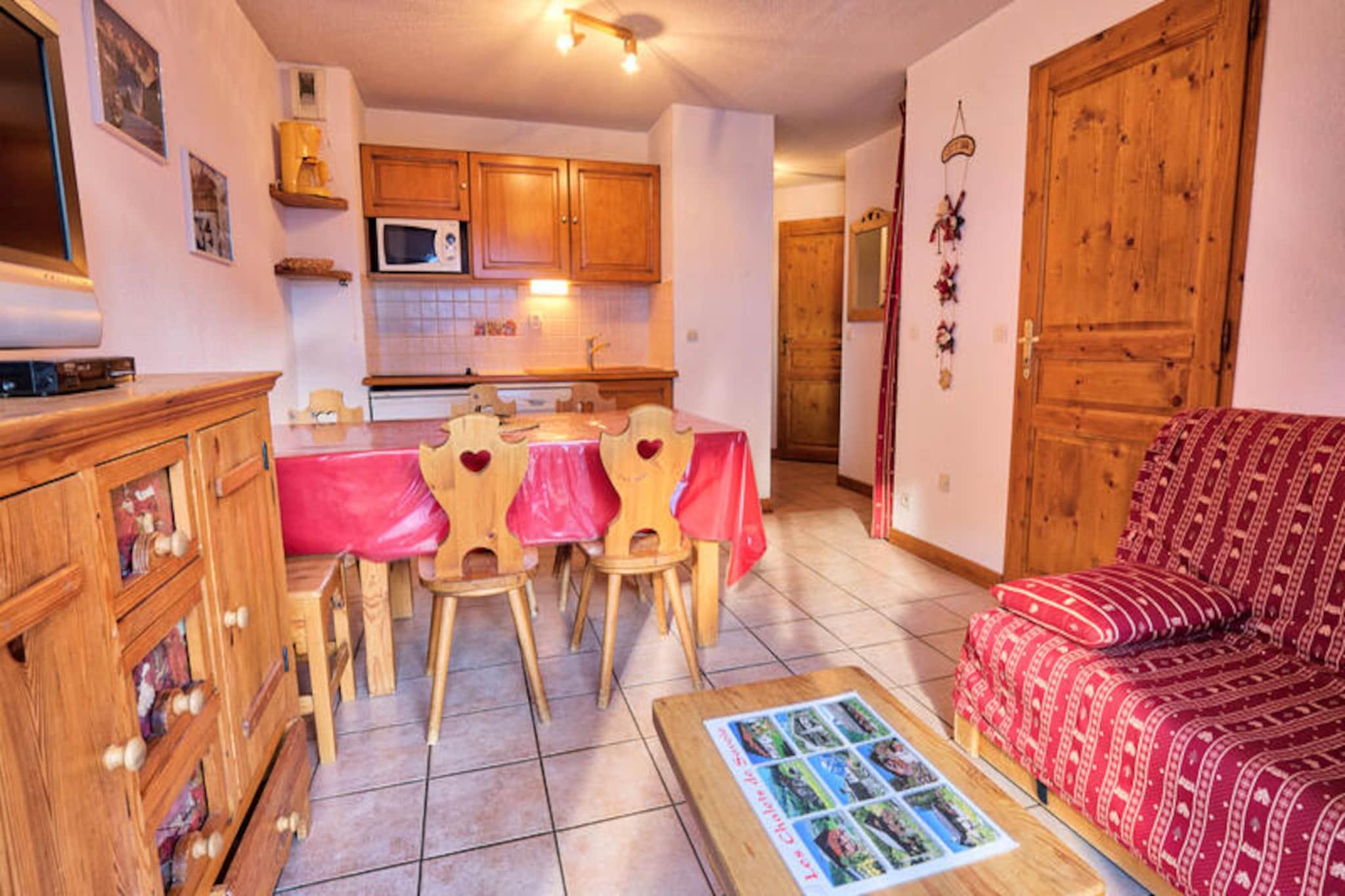 Midt i det betagende alpine landskab i Notre Dame de Bellecombe tilbyder denne charmerende lejlighed i Les Oursons-residensen et hyggeligt tilflugtssted for familier og venner, der søger eventyr og afslapning. Med sin førsteklasses beliggenhed ved foden af ??pisterne i skiområdet Espace Diamant kan du nyde problemfri adgang til 192 km pister, der forbinder seks maleriske landsbyresorts. Uanset om du snor dig gennem frisk puddersne eller tager dine første skridt på ski, lover den venlige atmosfære og det varierede terræn uforglemmelige øjeblikke for alle niveauer. Den sydvendte balkon tilbyder en fantastisk udsigt over Mont Rond-snefronten og inviterer dig til at nyde bjergenes fredfyldte skønhed. \n\nDenne omhyggeligt designede lejlighed på 38 m² har komfortabel plads til op til seks gæster. Indretningen har et soveværelse med dobbeltseng, en alkove med køjesenge og en sovesofa i stuen, hvilket sikrer fleksibilitet for familier eller grupper. Det åbne køkken er udstyret med moderne faciliteter, herunder keramisk kogeplade, køleskab, mikrobølgeovn og opvaskemaskine, hvilket gør madlavning til en leg. Efter en dag på pisterne kan du slappe af i den indbydende opholdsstue med et fjernsyn eller benytte den inkluderede Wi-Fi til at dele dine eventyr. Yderligere bekvemmeligheder såsom et skirum og privat udendørs parkering forbedrer dit ophold. \n\nUd over skiløb forvandles regionen til et paradis for friluftsentusiaster om sommeren. Udforsk naturskønne vandrestier, spændende mountainbikeruter, eller tag Mont Rond-stoleliften for panoramaudsigt over Mont Blanc. For familievenlige udflugter ligger Flumet-søen og fritidscentret kun en kort køretur væk. Ladestationer til elbiler i Val d'Arly-landsbyerne gør det endnu nemmere at udforske området. \n\nUanset om du søger vinterspænding eller sommerro, er denne lejlighed i bjergstil den perfekte base for at skabe dyrebare minder i hjertet af Alperne.