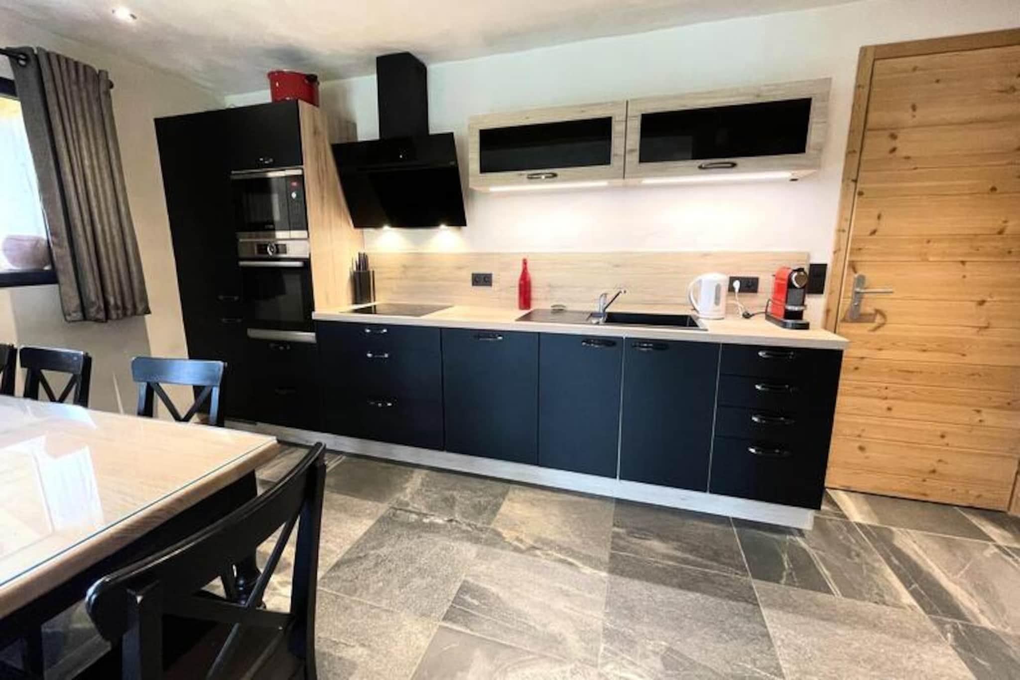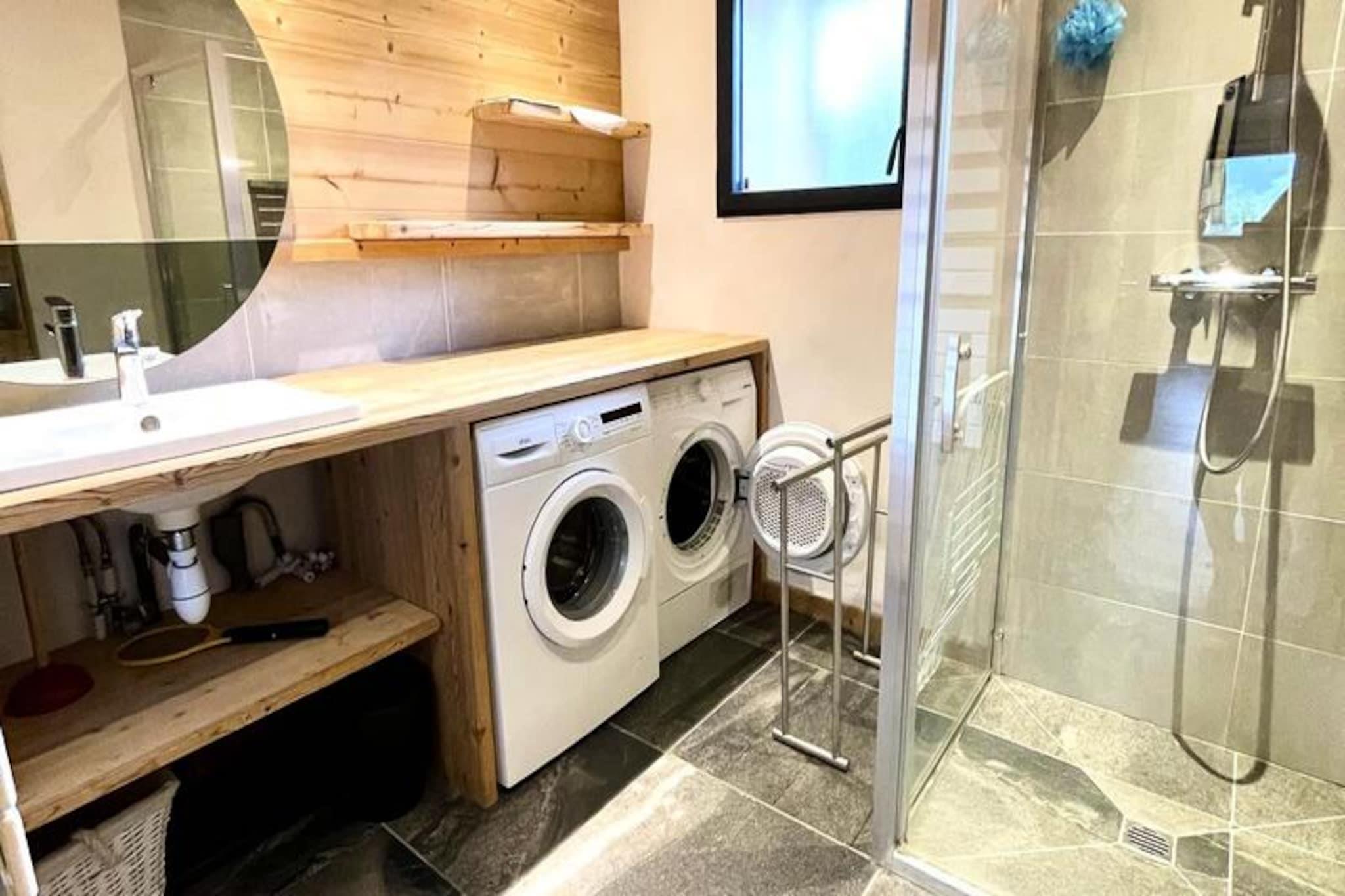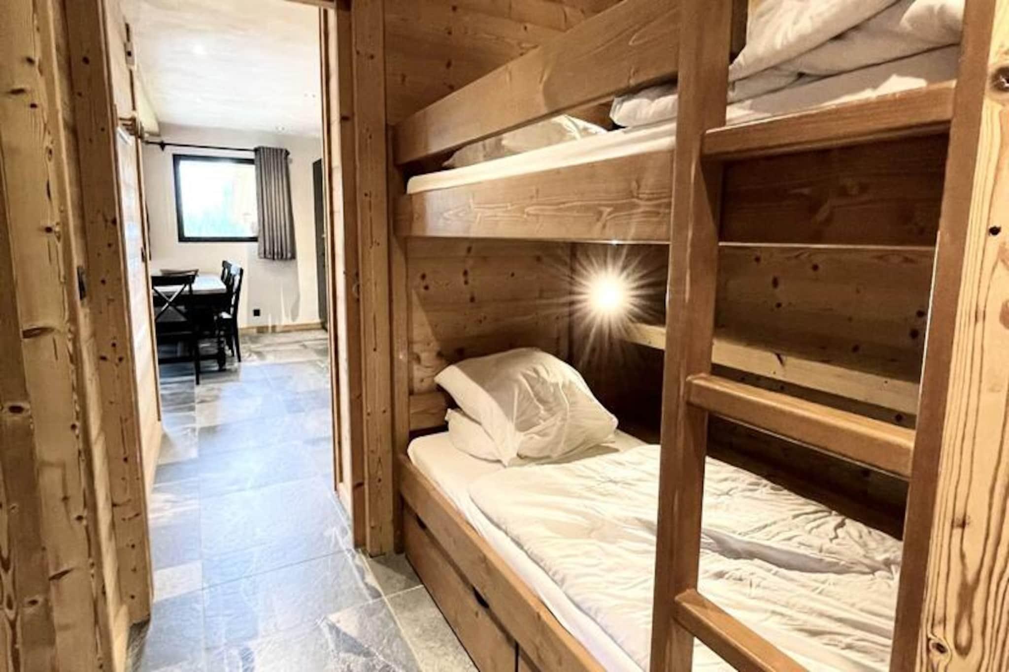 Hvor alpin charme møder betagende udsigter, tilbyder denne hyggelige chaletlejlighed i Le Cheloup et idyllisk tilflugtssted til din næste bjergferie. Beliggende i den rolige landsby Notre Dame de Bellecombe, kan den prale af panoramaudsigt over Mont Charvin og dalen, med solskin, der pryder den store sydvestvendte terrasse. Uanset om du søger vintereventyr eller sommerro, inviterer denne ejendom dig til at fordybe dig i de franske alpers skønhed. Den 70 m² store lejlighed, der ligger i haveplan i Chalet La Ferme du Cheloup, har komfortabel plads til op til seks gæster. Dens gennemtænkte planløsning omfatter en rummelig stue med fjernsyn, et åbent køkken udstyret med moderne apparater og hyggelige sovepladser: et soveværelse med eget badeværelse, dobbeltseng og privat bruser, et andet soveværelse med dobbeltseng, en sovealkove med køjesenge og en udtrækssovesofa i stuen. Et separat badeværelse med vaskemaskine/tørretumbler og en stor terrasse gør dette hjem både praktisk og indbydende. Om vinteren giver den gratis skibus, der ligger kun 20 meter væk, hurtig adgang til skiområdet Espace Diamant, med 192 km pister, der forbinder seks charmerende skisportssteder. Den nærliggende Mont Rond-stolelift og skiskole sikrer en problemfri oplevelse for skiløbere på alle niveauer. Om sommeren kan du udforske naturskønne vandrestier, mountainbikeruter eller nyde en forfriskende dag ved Flumet-søen, kun 6 km væk. For familier er chaletens legeplads en dejlig bonus. Med sin fantastiske udsigt, moderne komfort og førsteklasses beliggenhed er denne lejlighed perfekt til at skabe uforglemmelige minder med dine kære. Uanset om du nyder et måltid på den solbeskinnede terrasse eller begiver dig ud på alpine eventyr, er dette din port til bjergenes magi.
