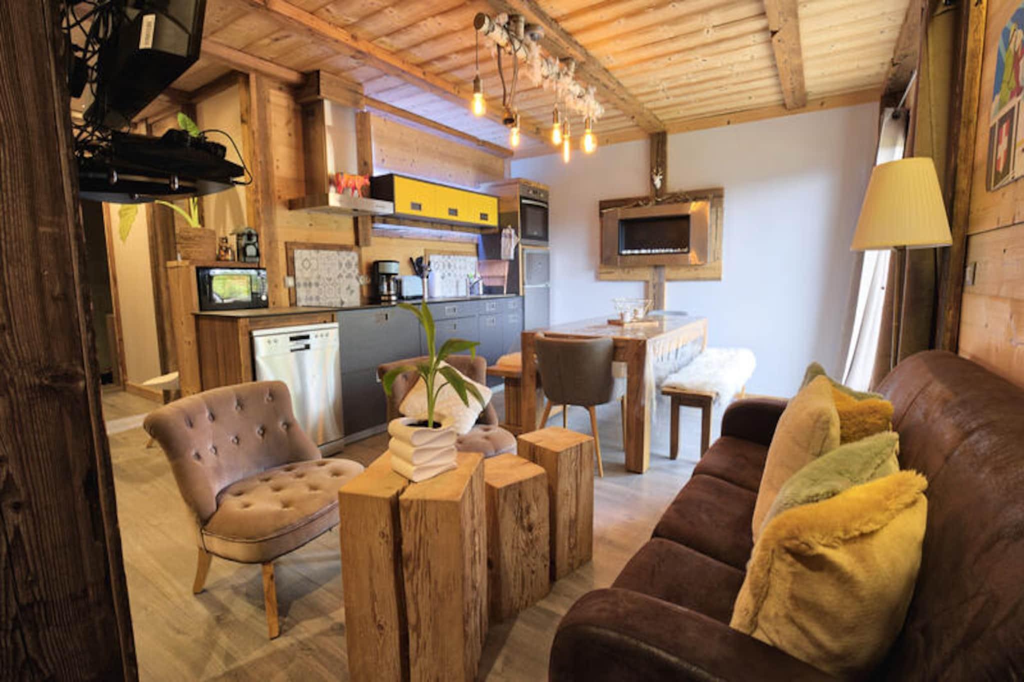 Midt i de franske alpers betagende landskaber inviterer Chalet La Chèle dig til at opleve den perfekte blanding af moderne komfort og alpin charme. Kun 100 meter fra Boulangère-skiliften tilbyder denne hytte problemfri ski-in/ski-out-adgang til det berømte skiområde Espace Diamant, der kan prale af 192 kilometer sammenhængende pister på tværs af seks maleriske landsbyresorts. Uanset om du er en ivrig skiløber eller blot søger en rolig bjergflugt, imødekommer denne beliggenhed ethvert ønske. Om sommeren forvandles hytten til en port til frodige stier og panoramaudsigt over Mont Blanc, hvor Mont Rond-stoleliften giver nem adgang til uforglemmelige udsigter. \n\nLejligheden er på 78 kvadratmeter og er omhyggeligt designet til grupper på seks til otte gæster. Dens haveplan har en rummelig sydvestvendt terrasse med havemøbler, hvor du kan nyde udsigten over Mont Charvin, Mont Bisanne og Aravis-bjergkæden. Indenfor kan hytten prale af et fuldt udstyret åbent køkken, en hyggelig ethanolpejs og moderne bekvemmeligheder såsom fladskærms-tv og PlayStation. Sovepladserne inkluderer et soveværelse med dobbeltseng til eget badeværelse, to ekstra soveværelser med dobbeltsenge, et værelse med to enkeltsenge og et køjesengsværelse, hvilket sikrer komfort for alle. To badeværelser, inklusive et dobbeltbrusebad, og to separate toiletter gør opholdet endnu mere behageligt.\n\nBeliggende i den solrige landsby Les Frasses, Notre Dame de Bellecombe, er chaleten ideelt placeret til at udforske regionen. Om vinteren kan du nyde nem adgang til skiløjperne og nærliggende landsbyer som Flumet og Les Saisies. Om sommeren kan du udforske vandrestier, mountainbikeruter og fritidscentret ved Flumet-søen, kun 9 kilometer væk. Chaleten tilbyder også praktiske faciliteter såsom et skirum, parkering og babyudstyr efter anmodning.\n\nMed møbler af høj kvalitet, smagfuld indretning og enestående service lover Chalet La Chèle et uforglemmeligt alpint tilflugtssted. Uanset om du jagter pudrede pister eller rolige sommerstier, er dette hyggelige paradis dit perfekte hjem væk fra hjemmet.
