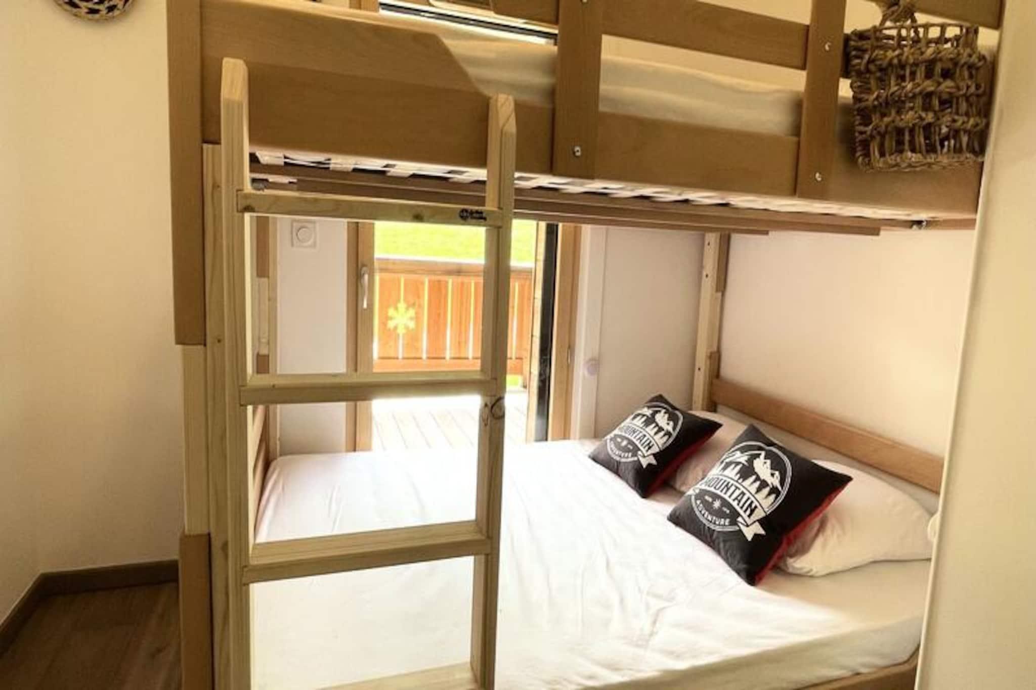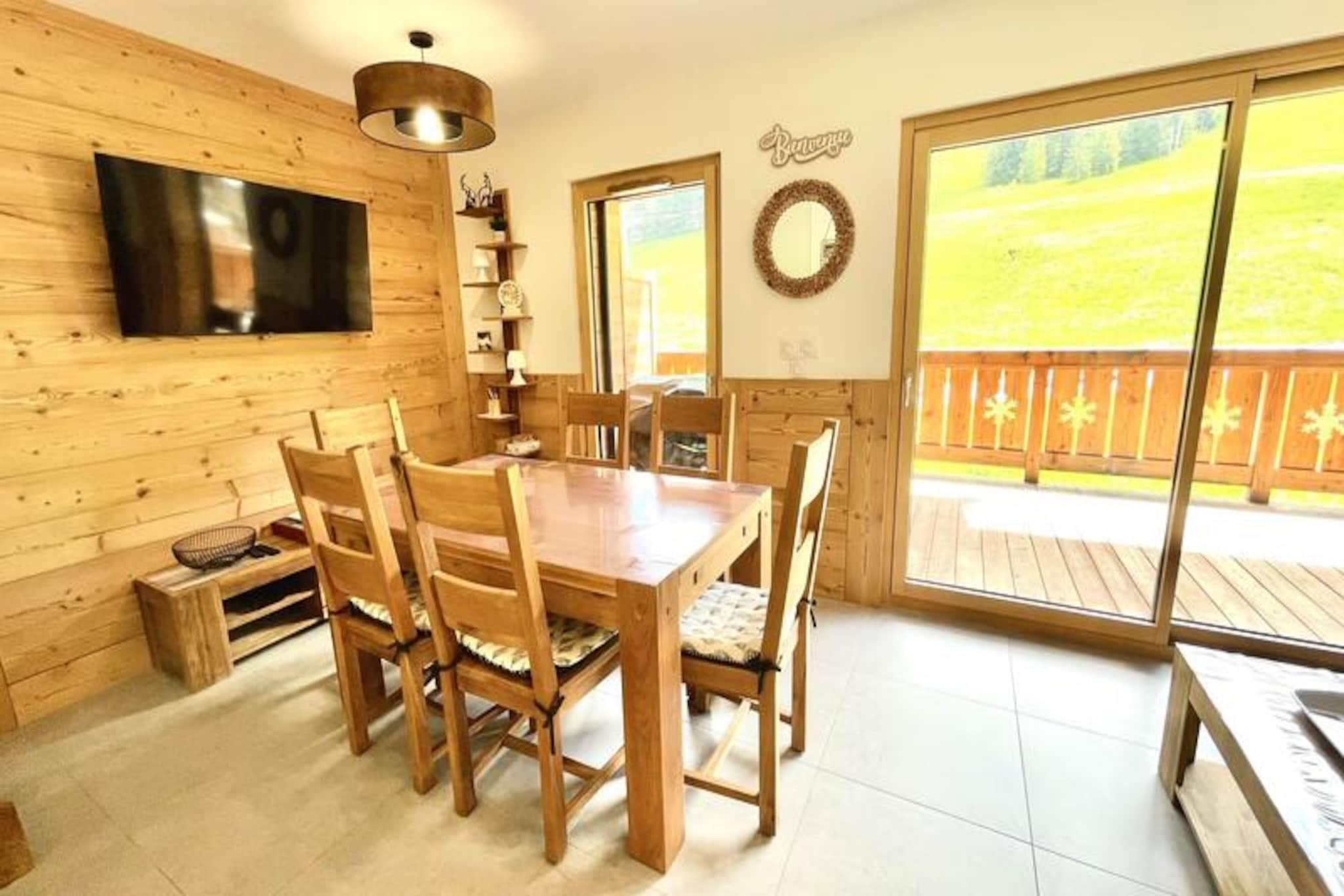 Forestil dig at vågne op til den fredfyldte skønhed i de franske alper, hvor frisk bjergluft og betagende udsigter sætter tonen for din dag. Beliggende i 1350 m højde i Mont Rond-sektoren i Notre-Dame-de-Bellecombe tilbyder denne helt nye duplexlejlighed i Le Cristal-residensen et idyllisk tilflugtssted for familier og små grupper. Med skiløjperne lige uden for døren og Mont Rond-stoleliften kun få skridt væk, er du perfekt placeret til at udforske de 192 km sammenhængende pister i skiområdet Espace Diamant. Uanset om du er en erfaren skiløber eller førstegangsløber, lover den familievenlige atmosfære og solrige beliggenhed uforglemmelige alpine eventyr. Indenfor kombinerer lejligheden moderne komfort med alpin charme. Med et areal på 51 m² har den nemt plads til 4 til 6 gæster. Den åbne opholdsstue har en hyggelig sofa, fladskærms-tv og et fuldt udstyret køkken med alt, hvad du behøver for at tilberede solide måltider efter en dag på pisterne. To sydøstvendte terrasser tilbyder en fantastisk udsigt over de omkringliggende tinder, mens sovepladserne inkluderer et dobbeltværelse med eget tv og et køjesengsværelse med rummelige 140 cm senge. Yderligere faciliteter som Wi-Fi, vaskemaskine/tørretumbler og skiboks sikrer et problemfrit og afslappende ophold. Ud over boligen forandrer regionen sig med årstiderne. Om sommeren er der masser af vandre- og mountainbike-stier, og Mont Rond-stoleliften tilbyder panoramaudsigt over Mont Blanc. I nærheden inviterer Flumet-søen dig til at slappe af med sine fritidsfaciliteter, mens ikoniske destinationer som Megève, Chamonix og Annecy ligger mindre end en times kørsel væk. For ekstra bekvemmelighed ligger Genève Internationale Lufthavn kun 1 time og 20 minutter i bil. Uanset om du søger spændende vintersport eller rolige sommerferier, er denne lejlighed din port til det bedste af Alperne. Med sin førsteklasses beliggenhed, moderne faciliteter og fantastiske omgivelser er det det perfekte valg til din næste bjergferie.