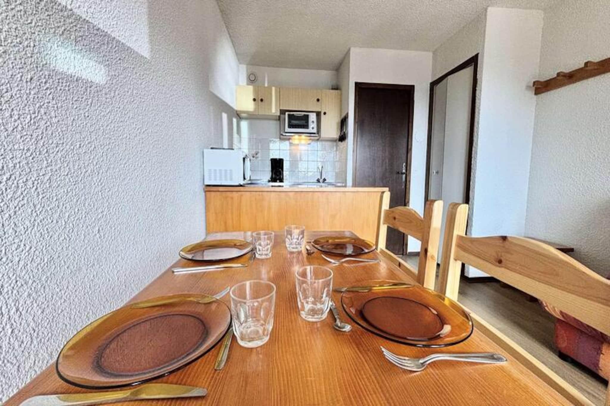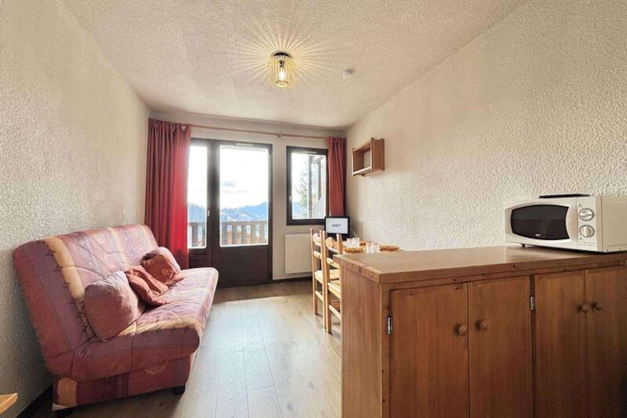 I hjertet af det maleriske Notre-Dame-de-Bellecombe inviterer denne charmerende studiolejlighed dig til at opleve de franske alpers skønhed i enhver sæson. Forestil dig at vågne op til frisk bjergluft og træde ud på din private balkon for at beundre den fredfyldte alpine udsigt. Uanset om du er her for spændingen ved skiløb eller roen ved sommervandreture, tilbyder dette hyggelige tilflugtssted en ideel base for dine eventyr. Beliggende kun 50 meter fra pisterne, vil du være perfekt placeret til at nyde regionens berømte udendørsaktiviteter. \n\nLejligheden, omhyggeligt designet til komfort og praktisk anvendelighed, har en indbydende opholdsstue med en dobbelt sovesofa, et åbent køkken til at tilberede solide måltider og et badeværelse med separat toilet. Entréhallen har to enkeltsenge, hvilket gør den til et godt valg for små familier eller par, der søger en fredelig ferie. Yderligere faciliteter inkluderer en udendørs parkeringsplads og et skiskab, der sikrer bekvemmelighed under hele dit ophold. Bemærk venligst, at sengelinned, håndklæder og slutrengøring er tilgængelige som valgfrie tjenester, så du kan skræddersy din oplevelse til dine behov. Notre-Dame-de-Bellecombe tilbyder en indbegrebet af en alpin landsbys charme, med ESF-skiskolen kun 500 meter væk og landsbyens centrum en kort gåtur på 650 meter. Om vinteren lokker pisterne med uberørt sne, mens sommeren forvandler regionen til et paradis for vandrere og naturelskere. Udforsk nærliggende stier, nyd lokal savoyardsk mad, eller slap blot af i den betagende natur. Uanset om du søger spændende dage på pisterne eller fredelige aftener under en stjerneklar himmel, lover dette dejlige studie en uforglemmelig alpin oplevelse. Lad bjergenes magi inspirere dit næste ferieeventyr.
